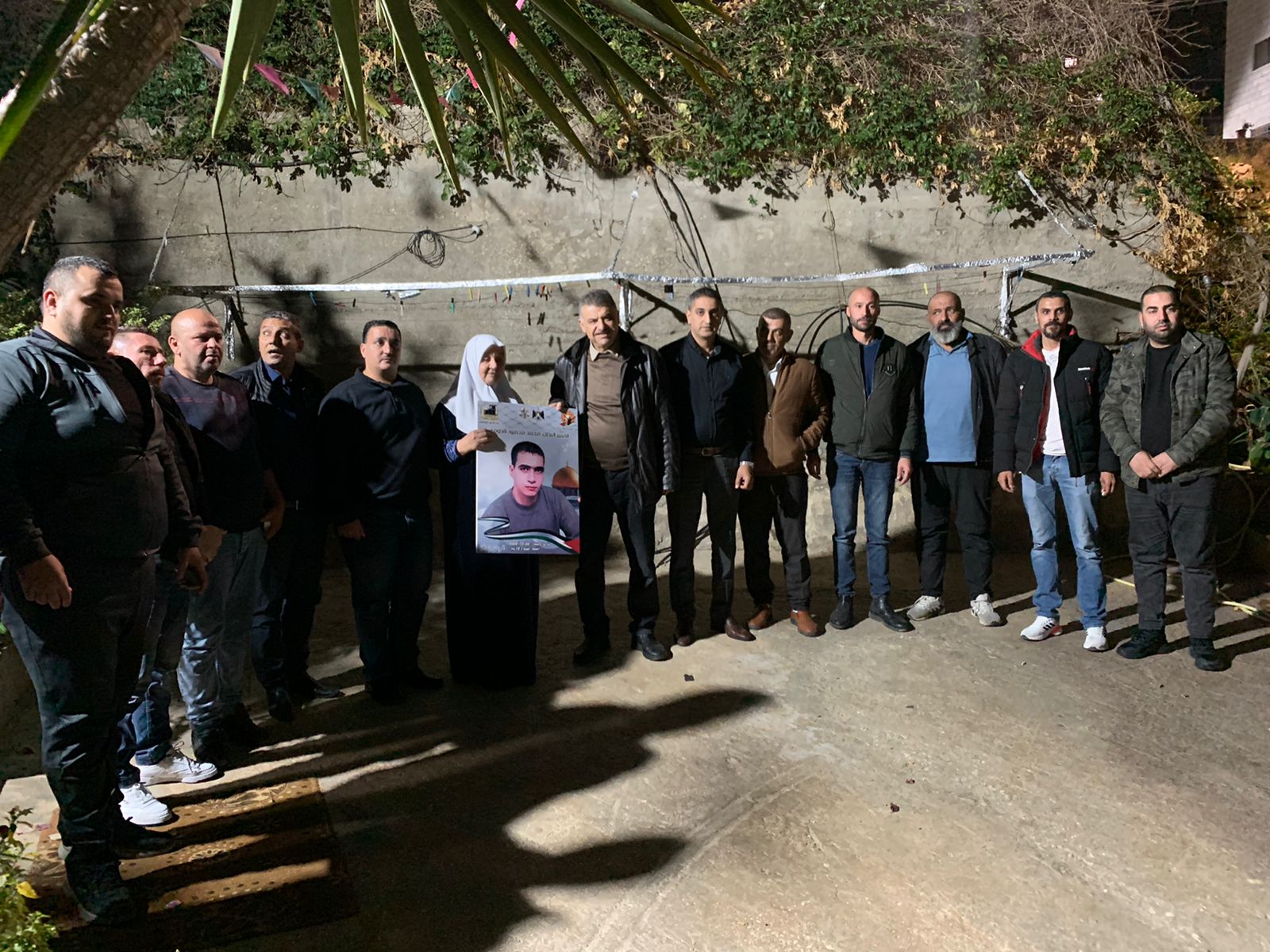 وفد من نادي الاسير وهيئة الاسرى والاسرى المحررين خلال تكريم عائلة الاسيرين محمد ومحمود القدومي من بلدة جيوس ، واللذين دخلا عامهم الواحد والعشرون في سجون الاحتلال .