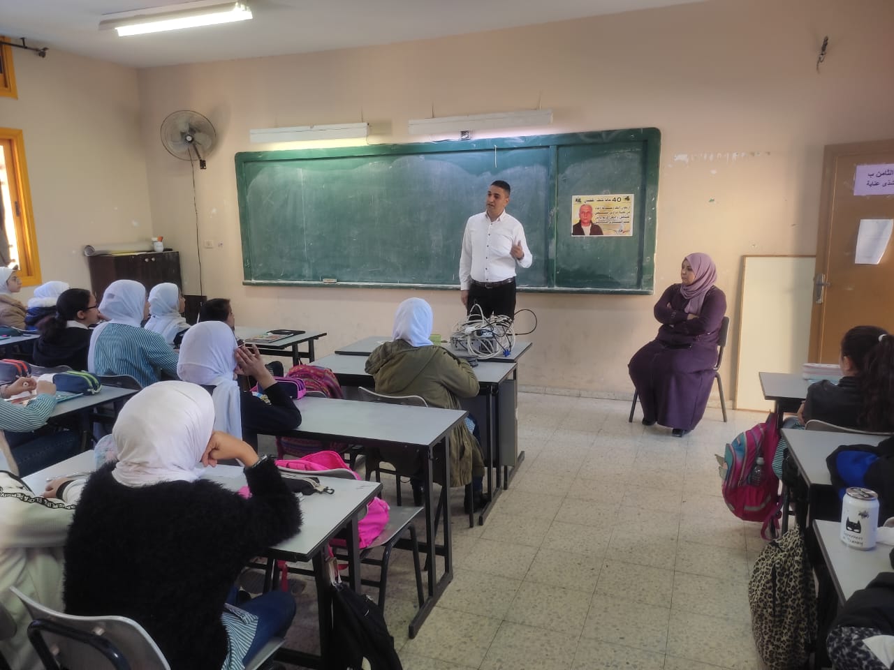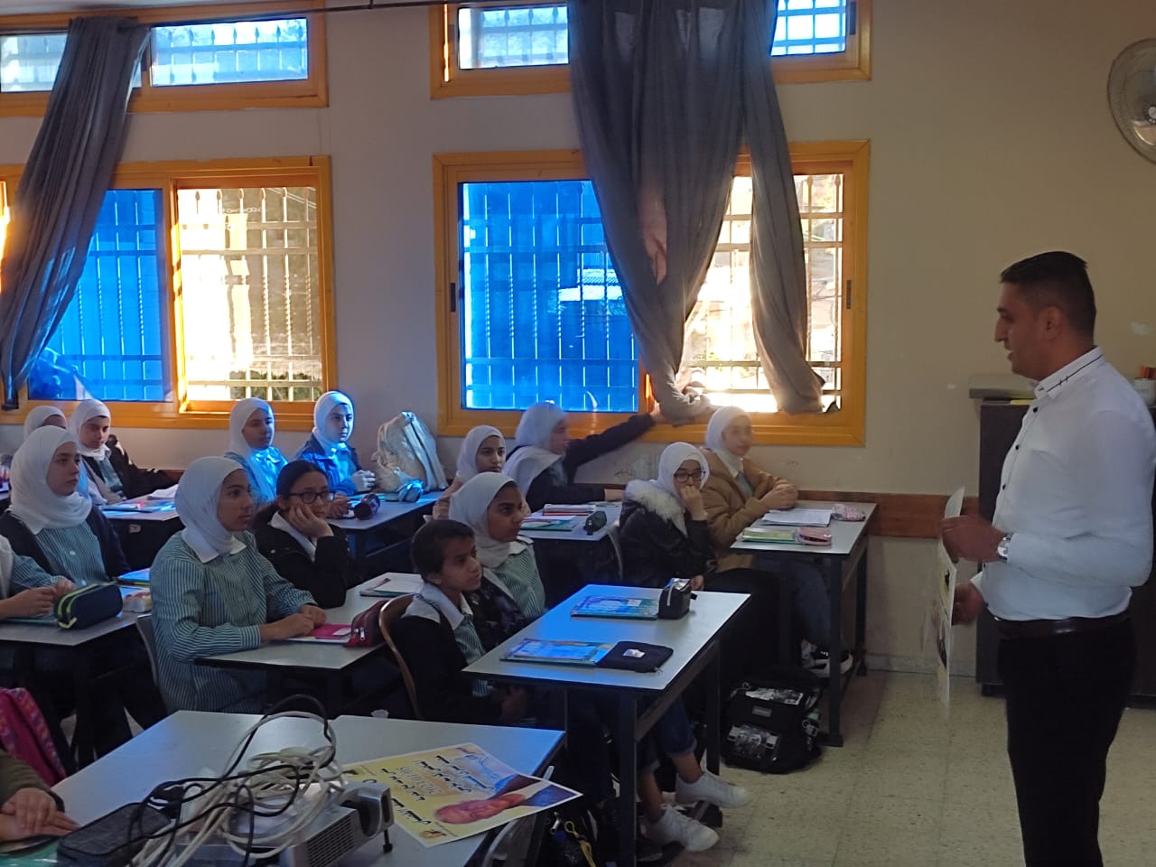 نادي الأسير قلقيلية : محاضرة في مدرسة بنات الخنساء حول حملة اربعون الف رساله .