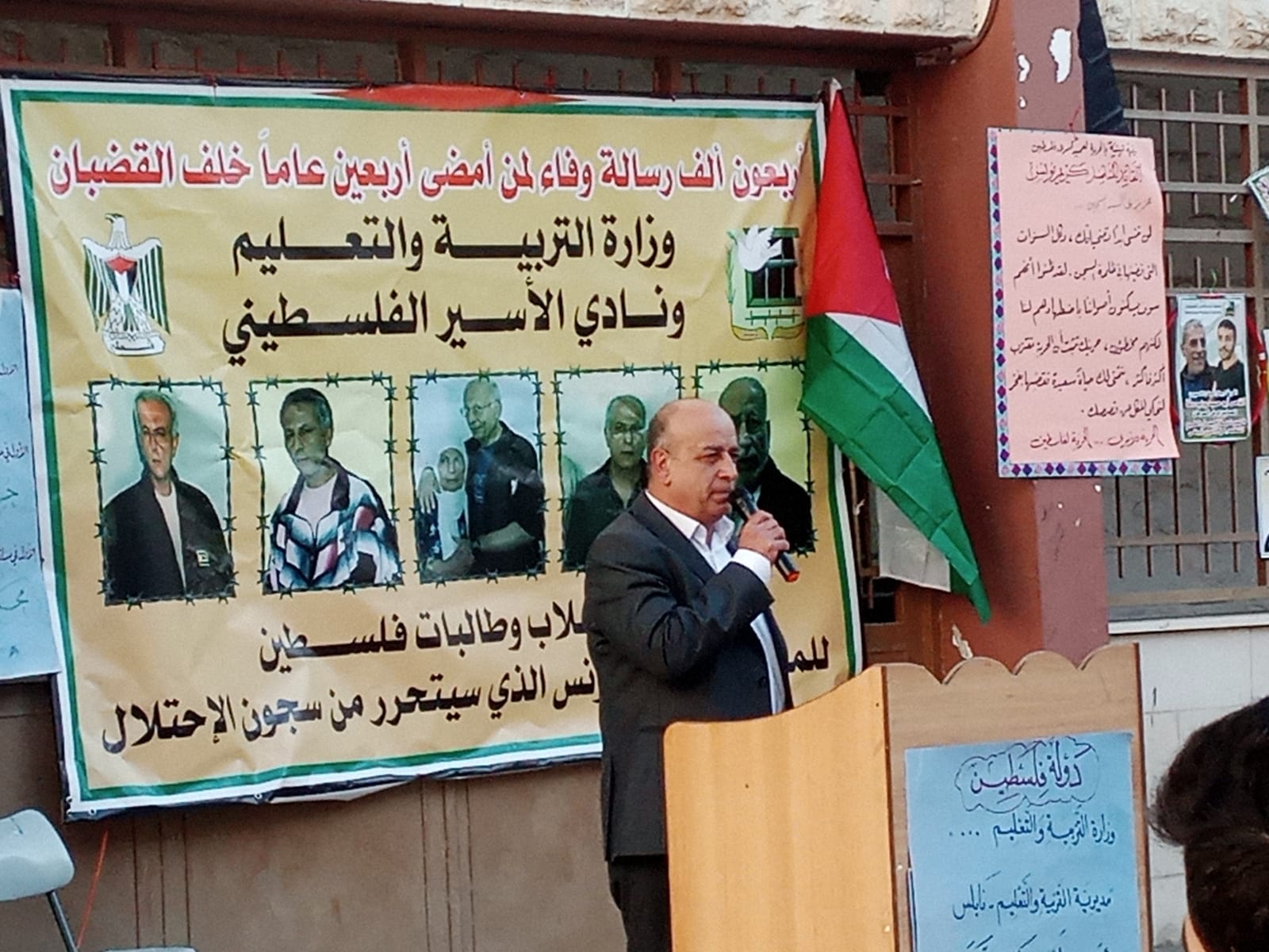 نابلس: بحضور رسمي وشعبي اطلاق حمله 40 ألف رسالة الأسير البطل كريم يونس بمدرسه الملك طلال