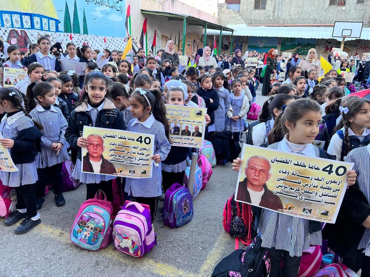 جانب من اطلاق تربية قلقيلية و نادي الأسير الفلسطيني؛ حملة رسائل الوفاء للأسير كريم يونس؛ والذي قضى ٤٠ عاما في الأسر؛ وعلى موعد مع الحرية خلال الأيام القادمة. بحضور مدير التربيه والتعليم ومدير نادي الاسير ومنسقة الشبيبه الفتحاويه ، وذلك في مدرسة بنات الخنساء الأساسية؛ حيث شاركت طالبات المدرسة بكتابة رسائل الوفاء للأسير يونس؛ كما تضمنت الحملة كلمات للتعريف بالأسير يونس؛ وفعاليات تضامنية مع أسرى الحرية في سجون الاحتلال.