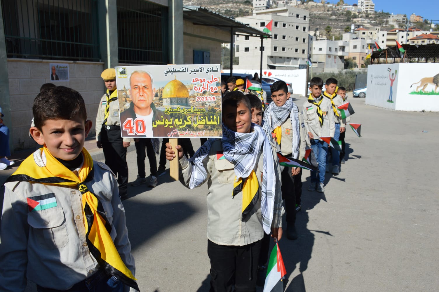 استمرار أحمله أربعون ألف رسالة وبحضور رسمي وشعبي اطلاق حمله 40 ألف رسالة الأسير البطل كريم يونس بمدرسه عمر ابن الخطاب في بلده حواره جنوب نابلس