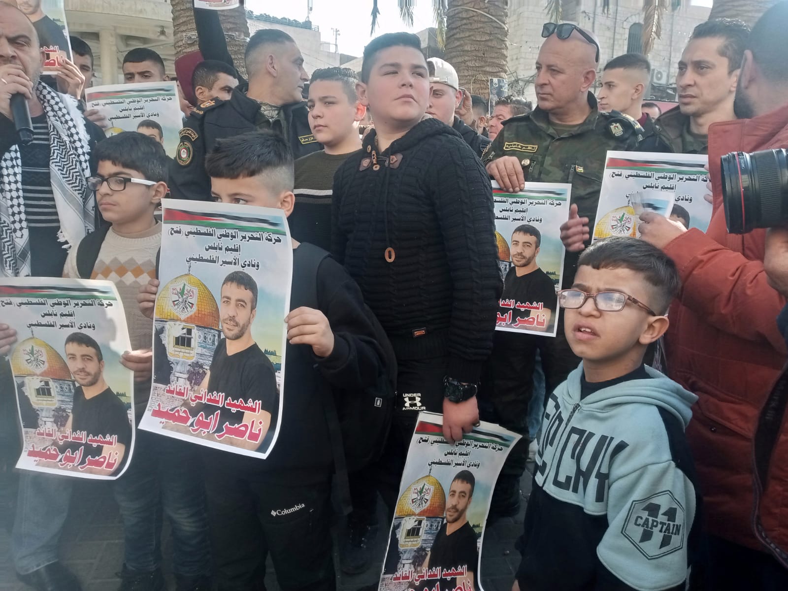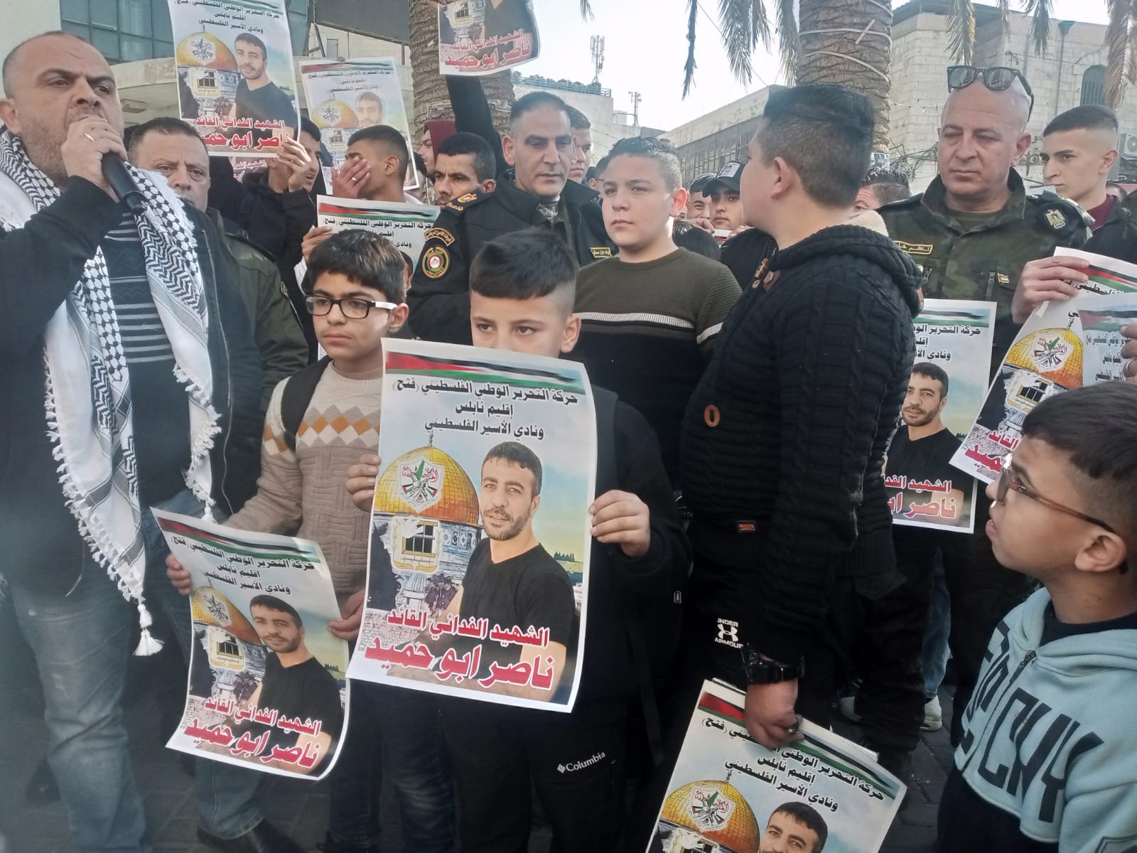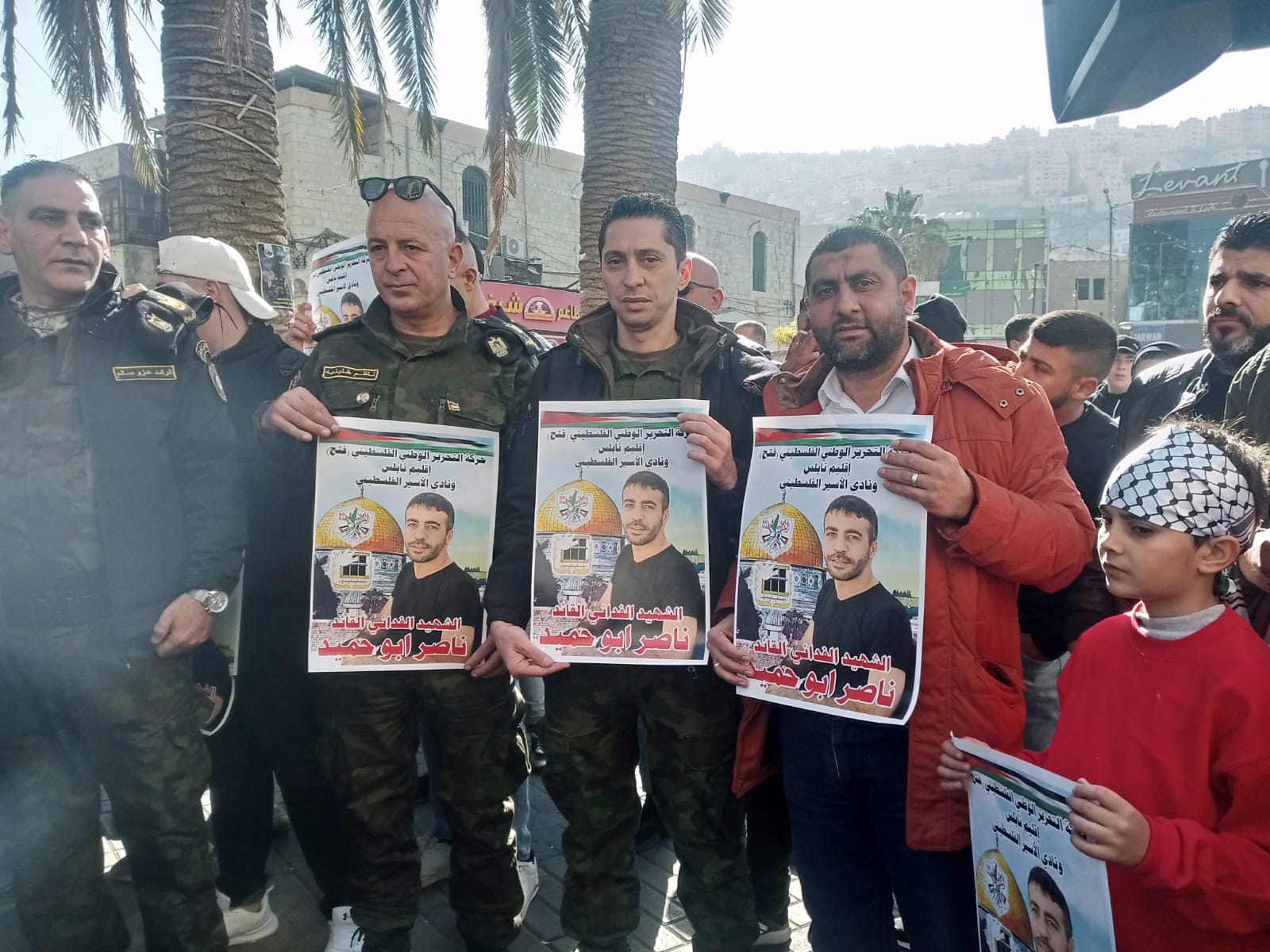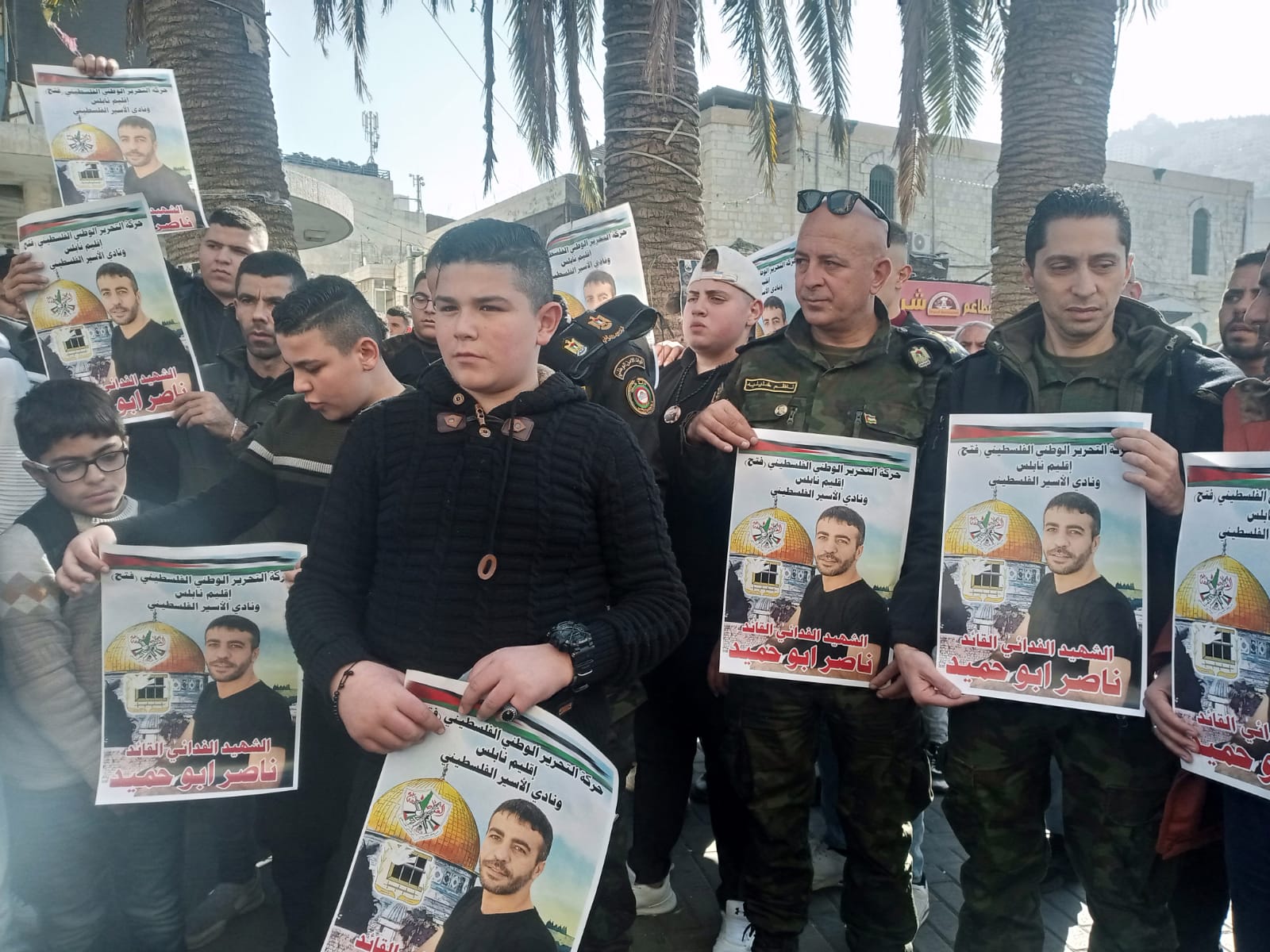 من الوقفه في نابلس استنكار وغضب لاستشهاد القائد الأسير ناصر ابو حميد الرحمه والمغفره لروحه الطاهره