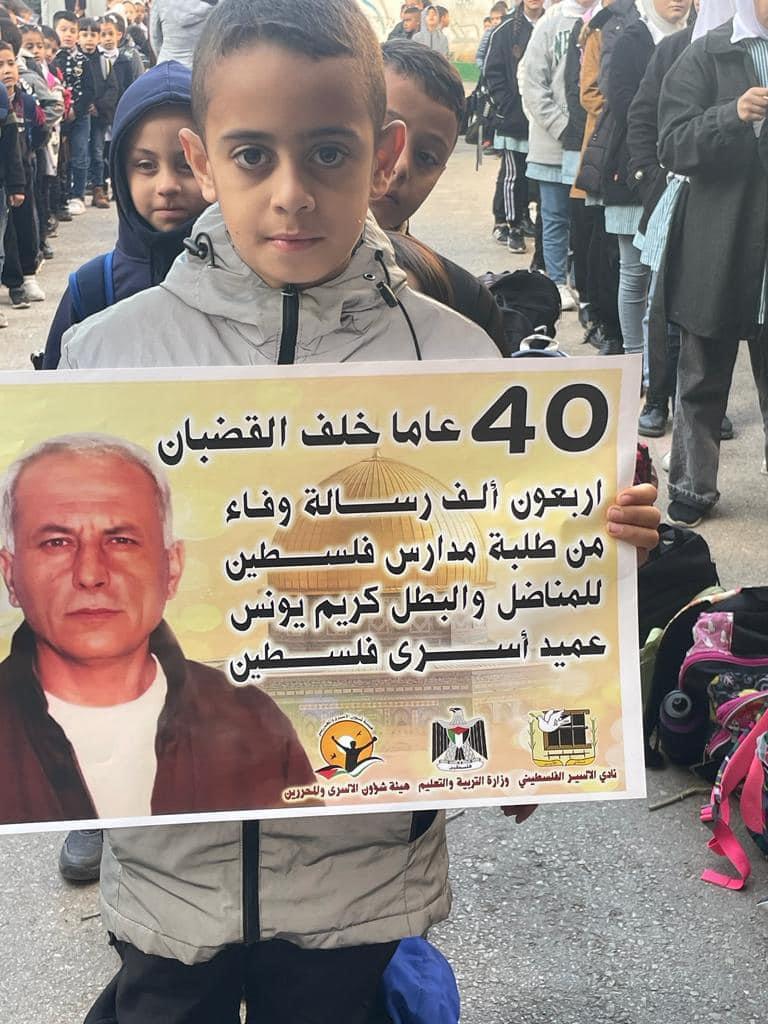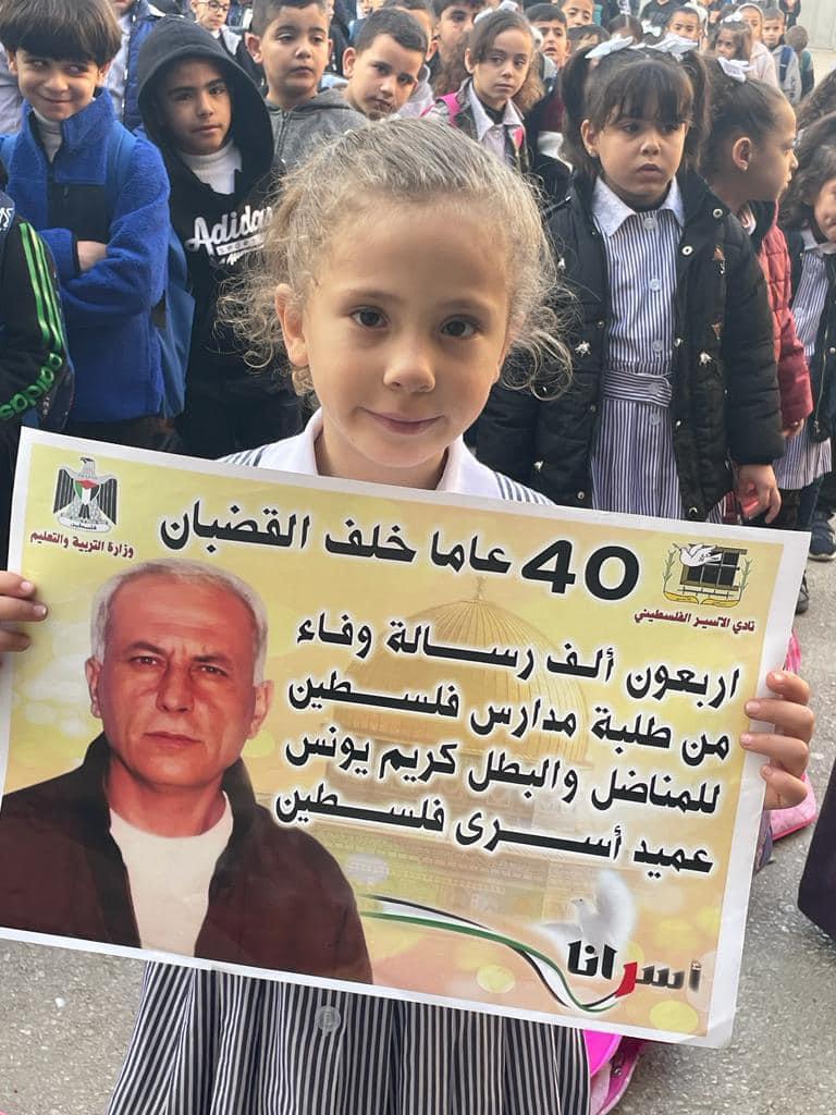 استمراراً لحملة اربعون الف رساله ، تم التعريف بالاخ كريم يونس والاخ الشهيد ناصر خلال الطابور الصباحي في مدرسة بنات يوسف عوده ومن ثم محاضره عن الاسرى بشكل عام .