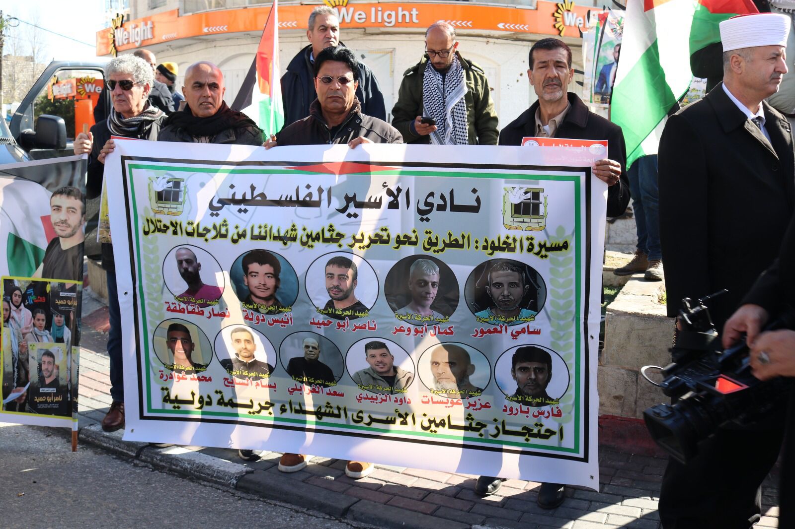 صور من انطلاق"مسيرة الخلود"، من أمام مخيم الأمعري بالبيرة اليوم، انتصارًا لعائلات الشهداء المحتجزة جثامينهم