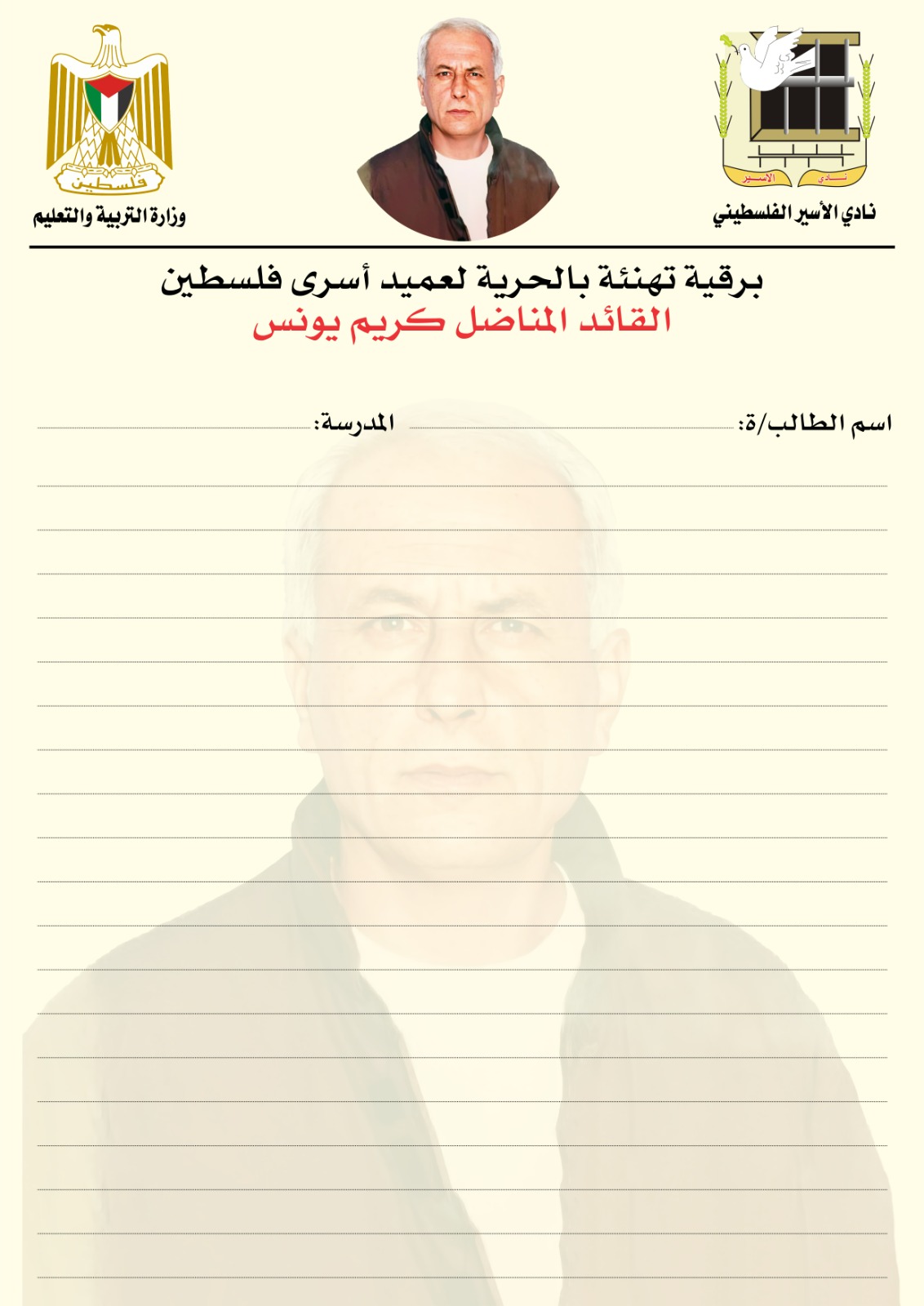 إستمرارا لفعالية وحملة كتابة اربعون الف رساله لعميد أسرى فلسطين كريم يونس نظم نادي الاسير الفلسطيني في مدرسه بنات طمون الثانويه محاضره تعريفيه للاسير كريم يونس المنوي الافراج عنه في 5\1\2023..وتسليط الضوء على معانات الأسرى..