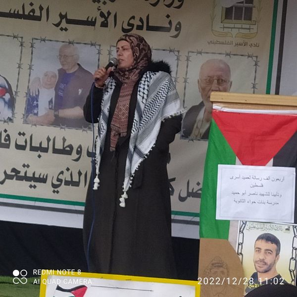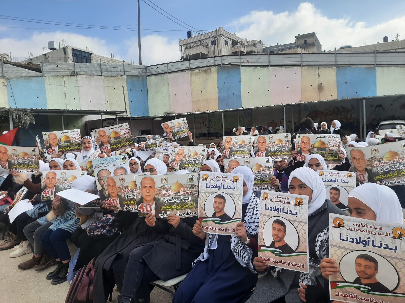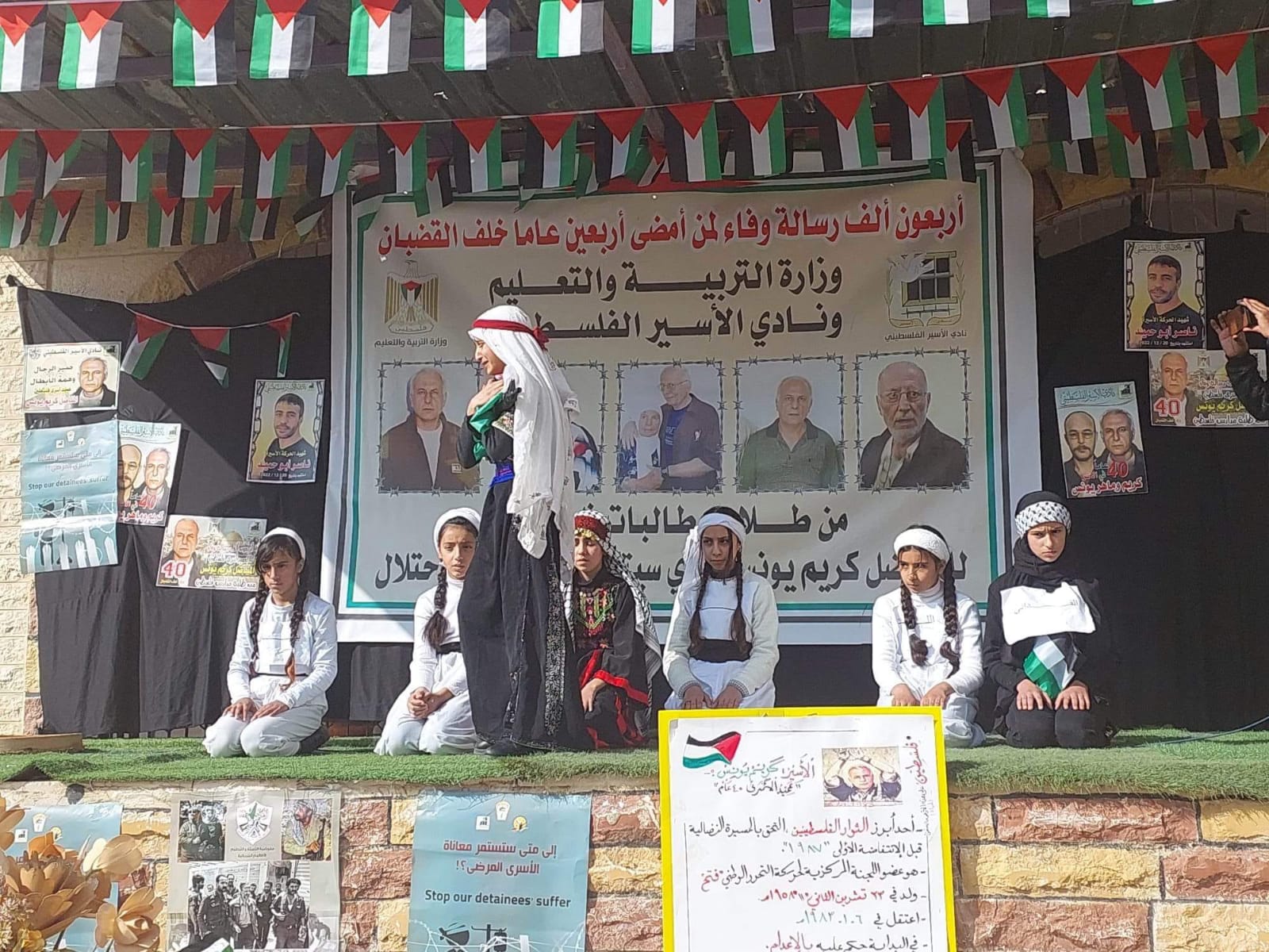 والقت الطالبة شهد محمد ابو زهرة قصيدة مؤثرة عن صمود الاسرى وطالبة اخرى استعرضت تاريخ المناضل الكبير كريم يونس وطالبة اخرى قدمت فقرة غنائية تشيد بصمود الاسرى ...