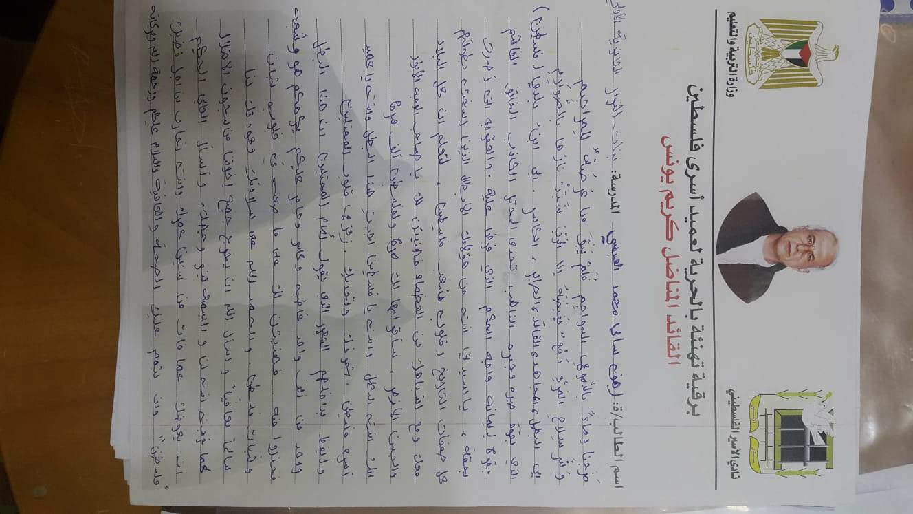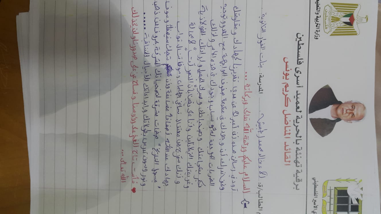 من رسائل الطلبة إلى الأسير كريم يونس