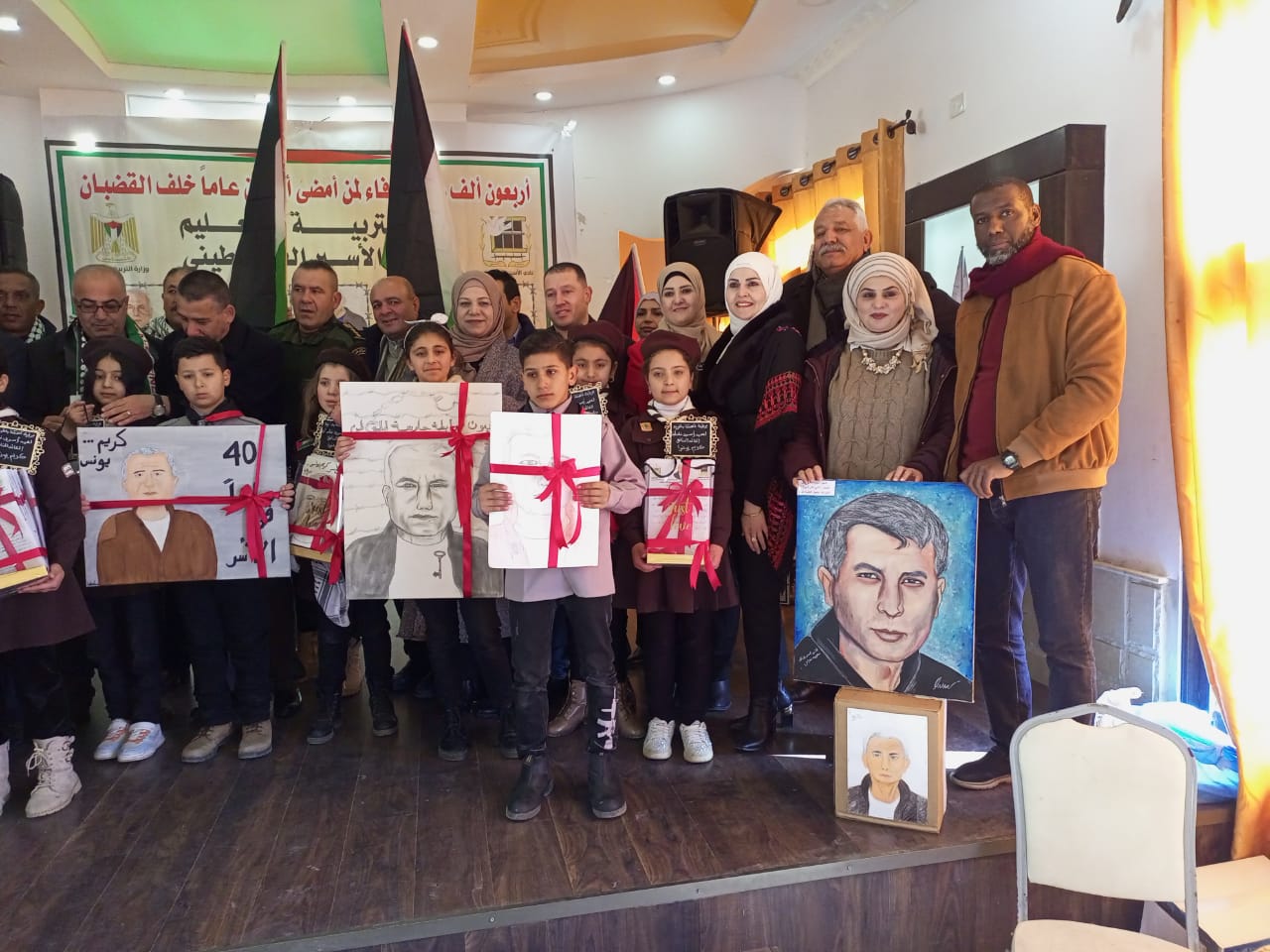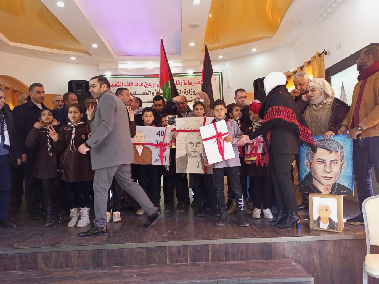 وتخلل الحفل الوطني المميز انزال ثلاث صور ضمن صورة عميد اسرى فلسطين كريم يونس وشهيد الحركة الاسيرة ناصر ابو حميد وأسرى تفوح حيث أشرفت عليها كشافة التربية والتعليم تعبيرا عن تقدريهم لتضحياتهم من اجل فلسطين والقدس ..
