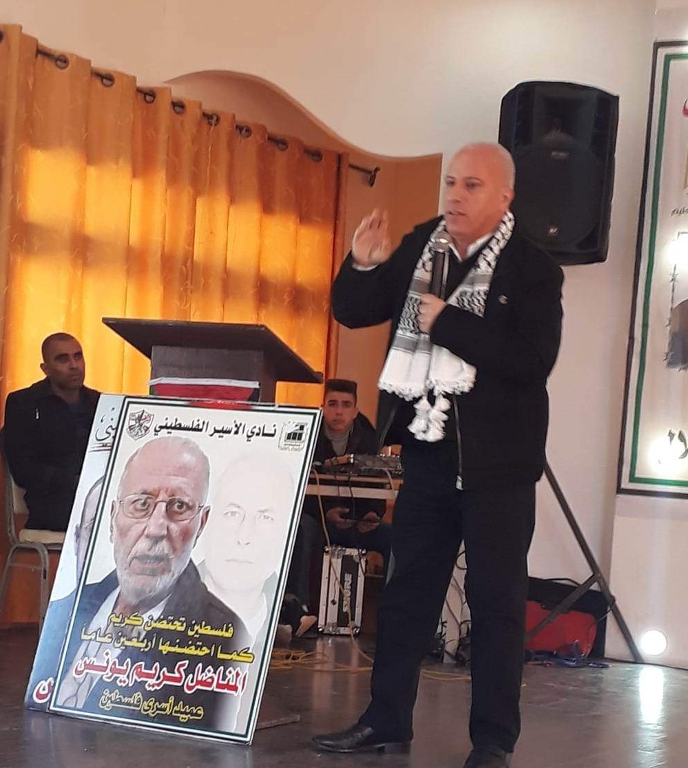 وفي كلمة امجد النجار مدير دائرة الاعلام في نادي الاسير ومنسق حملة اربعون الف برقية تهنئة لعميد اسرى فلسطين كريم يونس موجها التحية لكل من عمل على انجاح فعاليات الوفاء للاسير كريم يونس موضحا ان نادي الأسير الفلسطيني، بالتعاون مع وزارة التربية والتعليم اطلق حملة "40 ألف رسالة وفاء من طلبة فلسطين إلى عميد الأسرى كريم يونس" مع اقتراب موعد حريته بعد 40 عاما من الأسر، في سجون الاحتلال الإسرائيلي.
