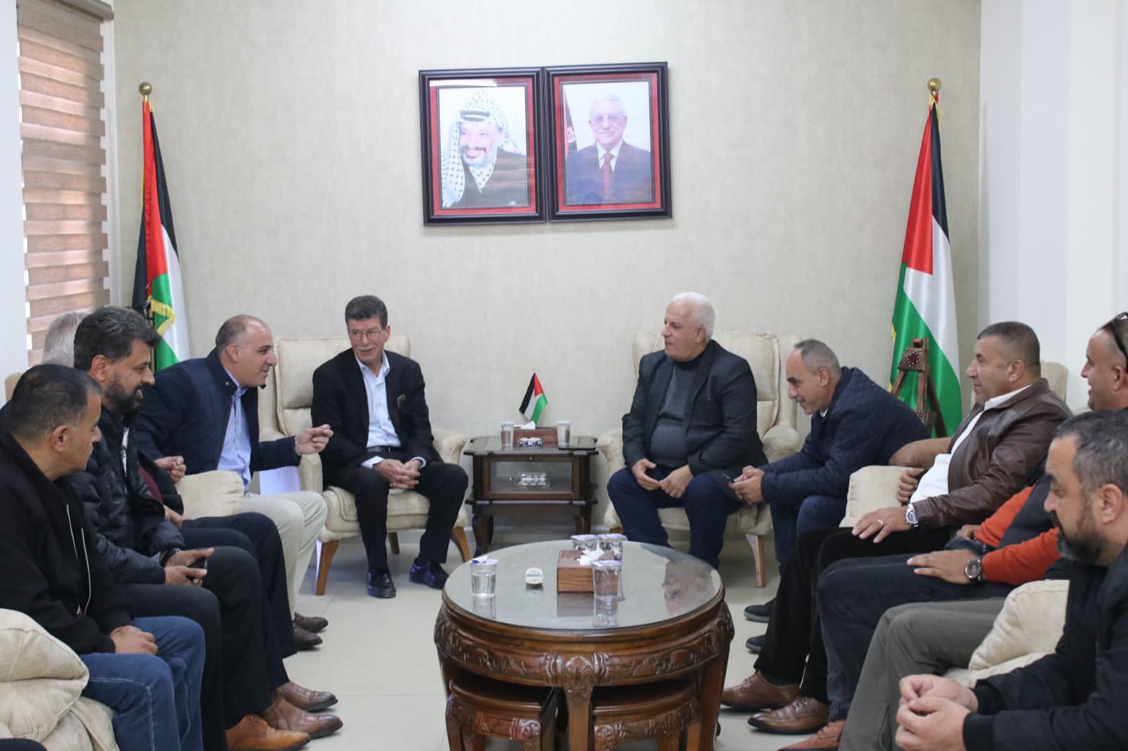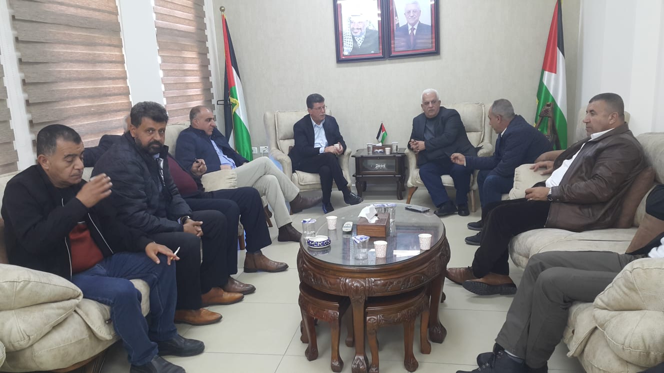 قدورة فارس ووفد من نادي الاسير الفلسطيني والهيئة العليا لمتابعة شؤون الاسرى يلتقون محافظ الخليل اللواء جبريل البكري