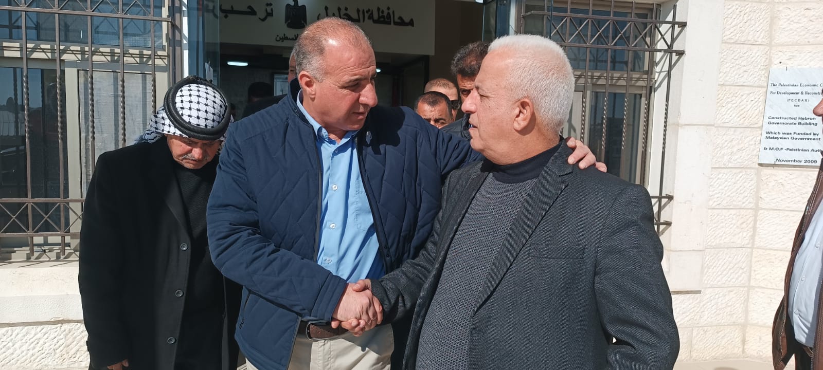 محافظ الخليل اللواء جبرين البكري يستقبل رئيس نادي الأسير الفلسطيني السيد قدورة فارس، ورئيس الهيئة العليا لشؤون الأسرى السيد أمين شومان، وكادر من الأسرى المحررين ( جهاد الشحاتيت وعمار البدوي وفراس مريش ) ، في مكتبه اليوم الثلاثاء. بحضور أمين سر حركة فتح-إقليم شمال الخليل هاني جعارة، وممثلي مجلس إدارة نادي الأسير السيد امجد النجار وعبدالله زغاري وحسام ابو علان ونائب المحافظ خالد دودين وقيس دعنا رئيس الدائرة السياسية في المحافظة .