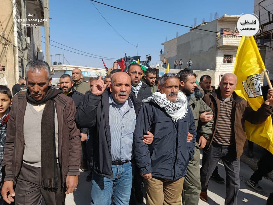 وانطلقت المسيرة من امام مسجد يطا الكبير وسط البلد بعد صلاة الجمعة مباشرة يتقدمها قيادة اقليم حركة فتح اقليم يطا وضواحيها وعلى رأسهم نبيل ابو قبيطة امين السر وامجد النجار مدير نادي الاسير الفلسطيني وكافة فعاليات مدينة يطا من مؤسساتها العامة والخاصة وكوادر الحركة الوطنية الاسيرة وأبناء الشهيد وعائلته وجماهير مدينة يطا ...