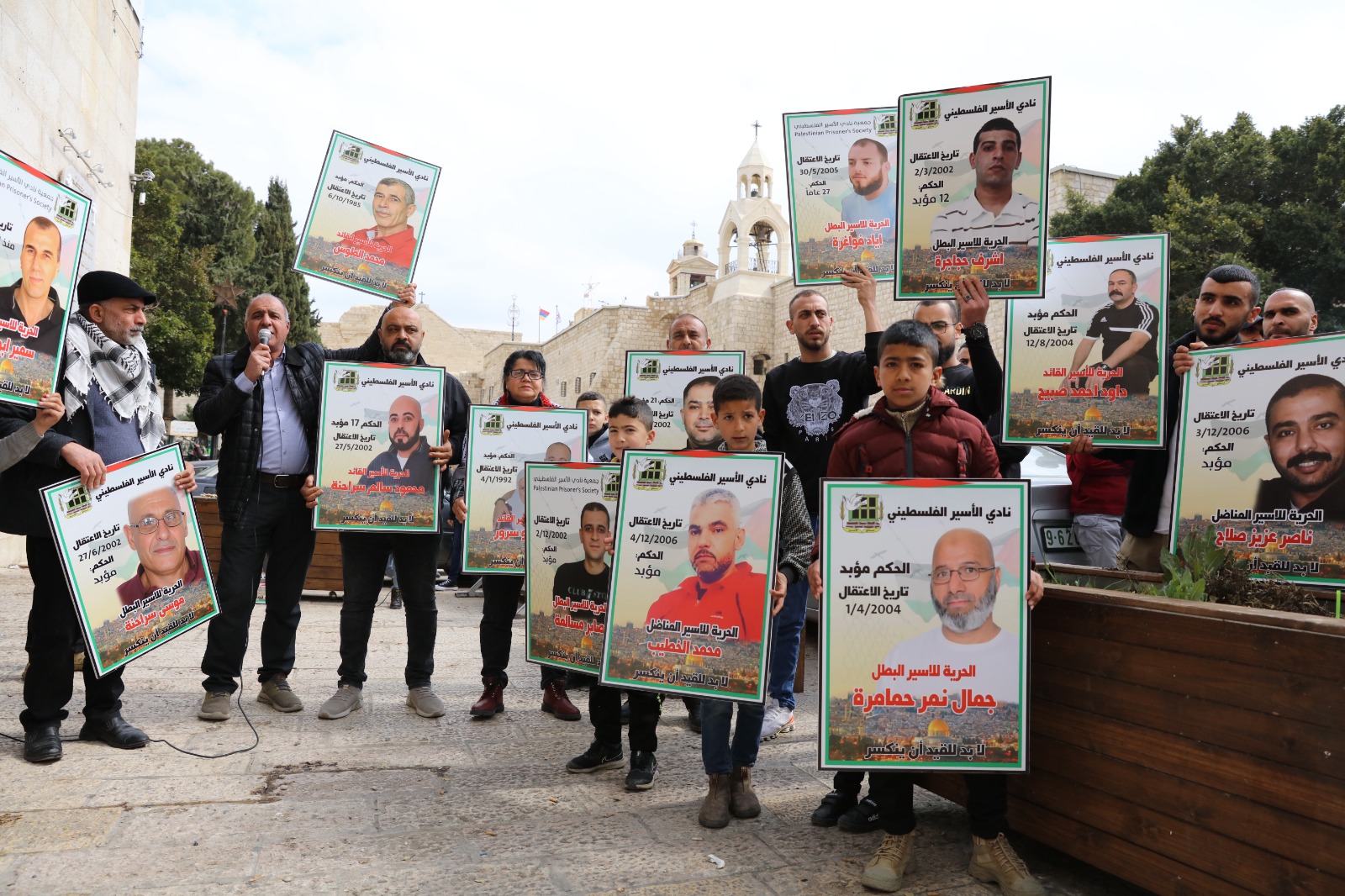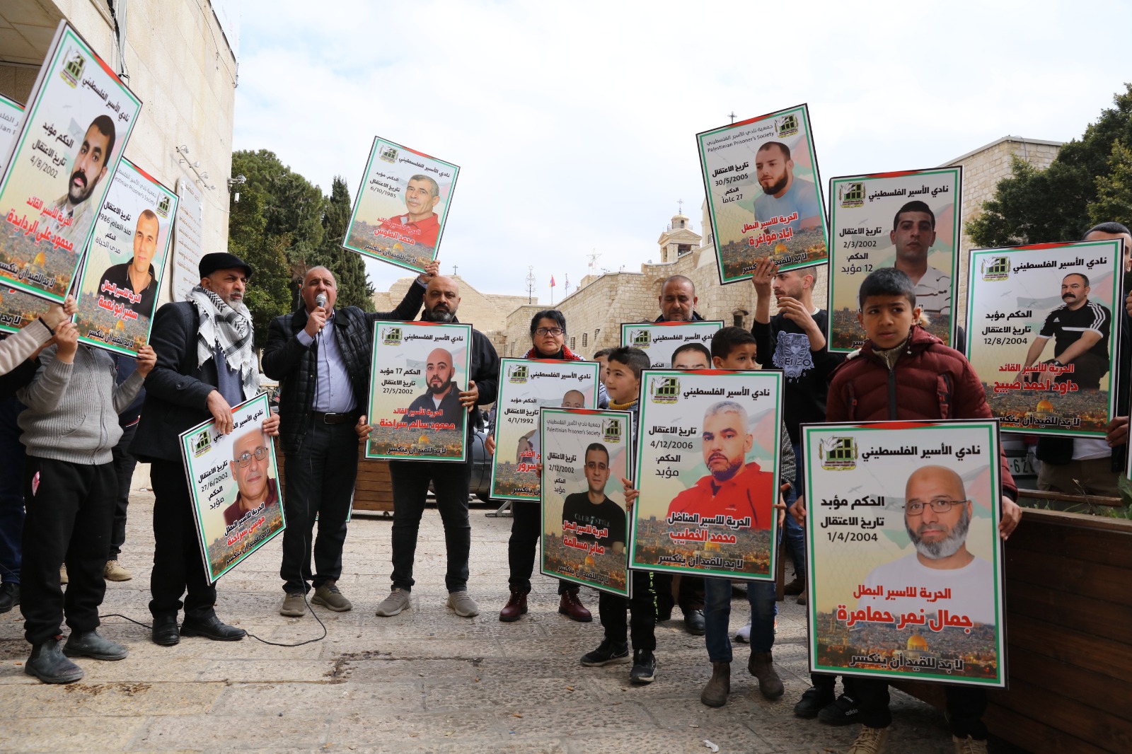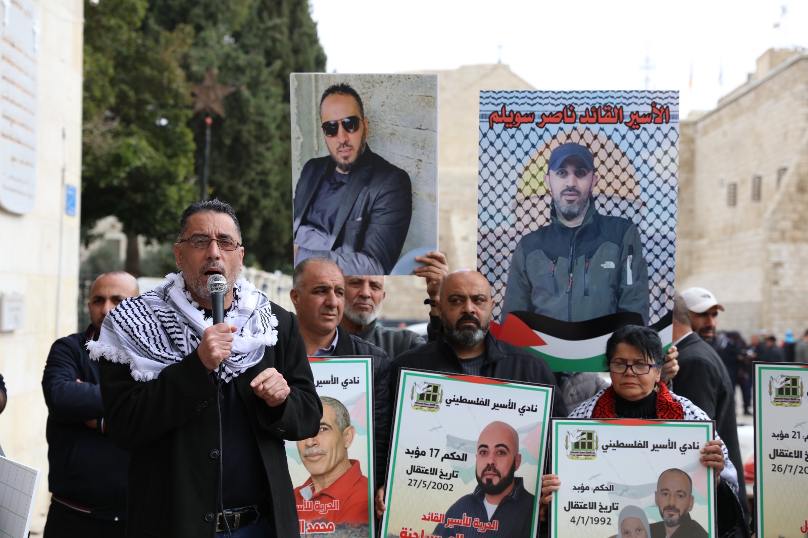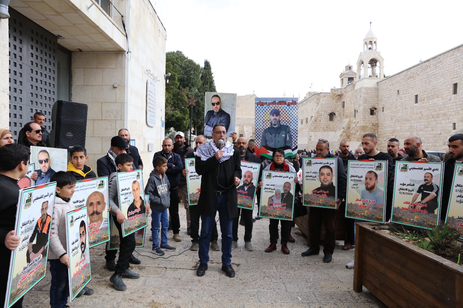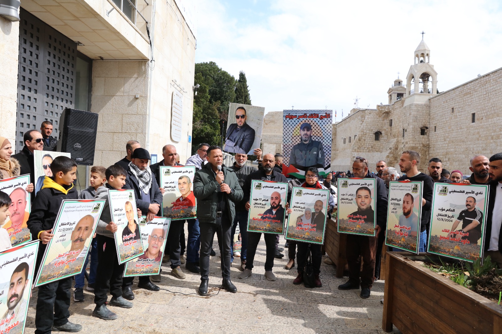 بيت لحم اليوم: من الوقفة الإسنادية للأسـرى في سجـون الاحتـلال، إسناداً لهم في خطواتهم النضالية، ضد إجراءات بن غفير وإدارة سجـون الاحتـلال، من أمام ساحة المهد.