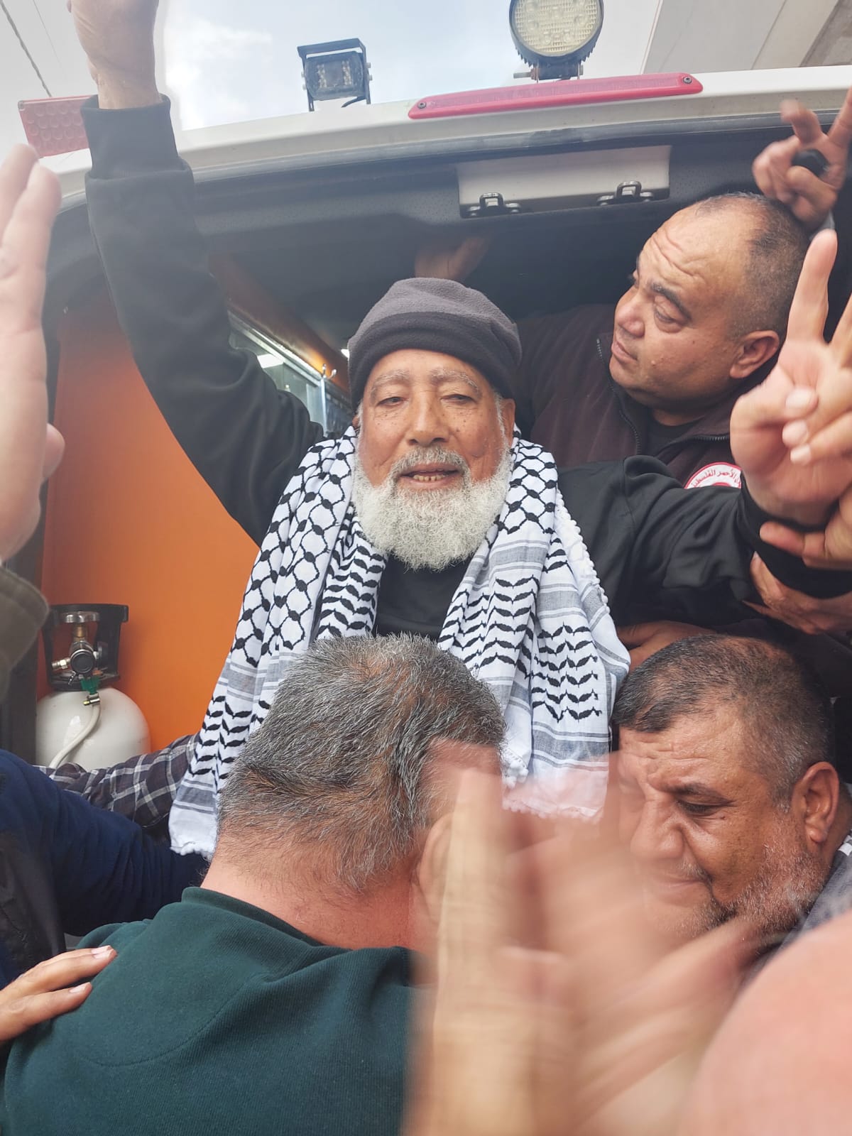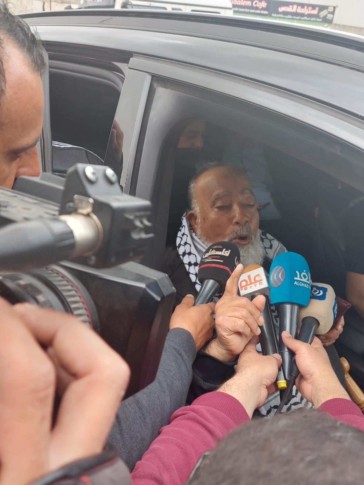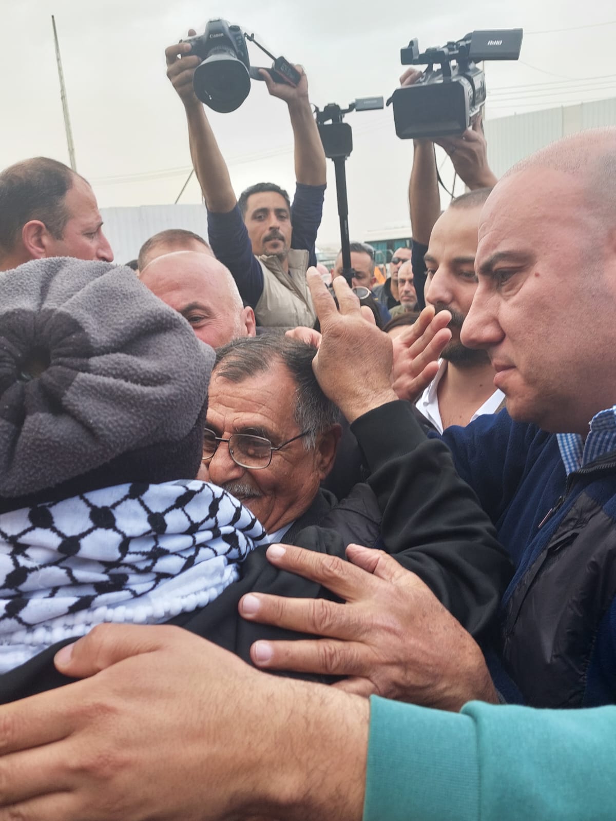 جانب من استقبال الأسير الحر اللواء فؤاد الشوبكي من قبل نادي الأسير على معبر ترقوميا