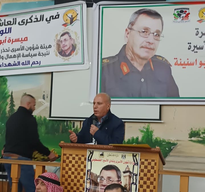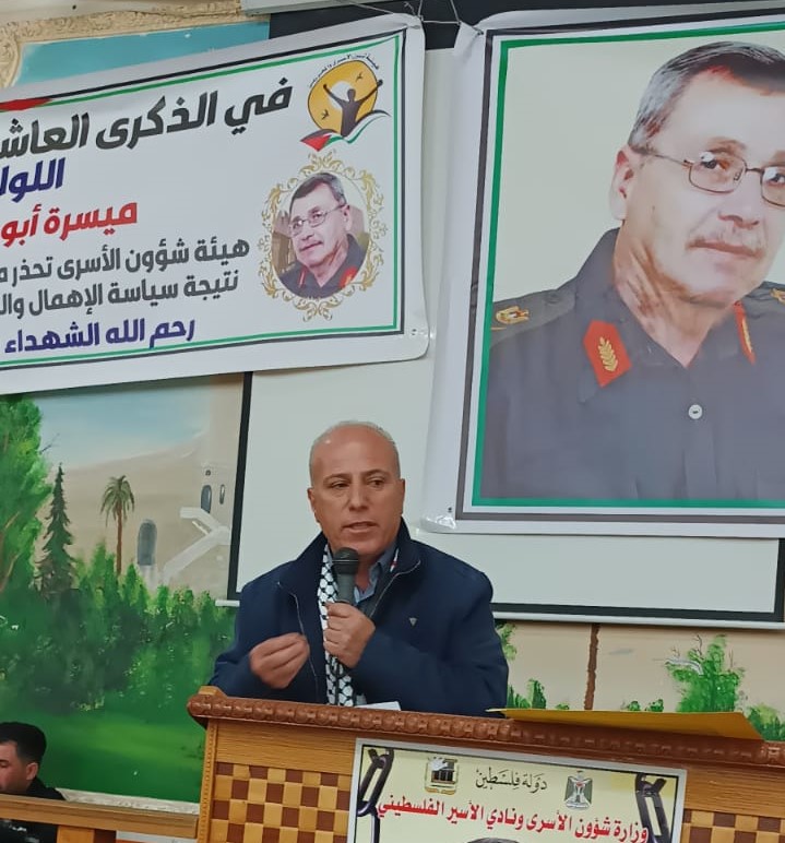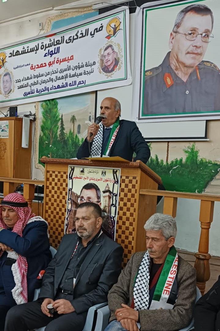 وفي كلمة ابراهيم نجاجرة مدير هيئة شؤون الاسرى مؤكدا ان ما تعرض له الشهيد ميسرة ابو حمدية من إهمال طبي متعمد وموثق بشكل كامل مدعاه للتحرك دوليا لملاحقة حكومة الاحتلال على جرائمها بحق الاسرى المرضى وان ما يحدث داخل سجون الاحتلال يأتي ضمن تعليمات المجرم ايتمار بن غفير والذي يستهدف الاسرى بشكل مباشر وهذا يتطلب توسيع دائرة العمل الشعبي والجماهيري لاظهار معاناة الاسرى المرضى داخل سجون الاحتلال ..