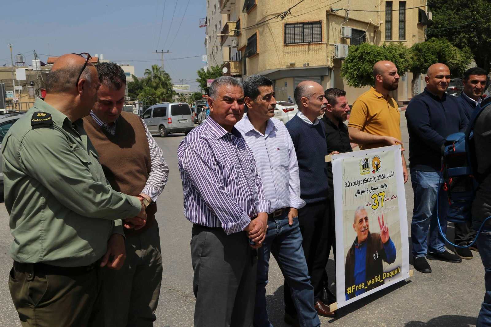وشارك في الوقفة اللواء رافع رواجبة محافظ محافظة قلقيلية، ومروان خضر عضو اقليم حركة فتح واياد قواس وممثلي القوى الوطنية، واعضاء وممثلي بلدية قلقيلية، ومدير نادي الاسير لافي نصورة، ومدير هيئة الاسرى والمحررين نائل غنام، وممثلو المؤسسات المدنية والعسكرية وفعاليات رسمية وشعبية من المحافظة وأسرى محررون وعائلات الاسرى.
