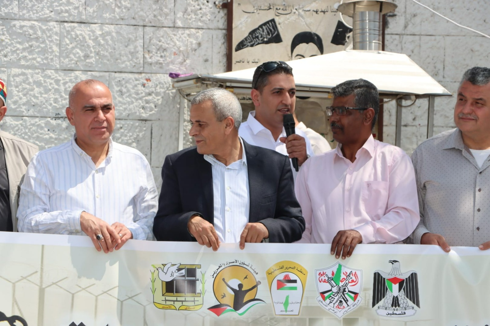 وخلال الوقفة القيت عدة كلمات " المحافظ، مروان خضر ممثل القوى الوطنية، ولافي نصورة " مشيرين الى ان يوم الاسير الفلسطيني يأتي هذا العام ولا زال أسرانا الابطال يسطرون نماذجاً وطنية في التحدي والصبر والنضال والاصرار على الحياة وقهرهم الاحتلال.
