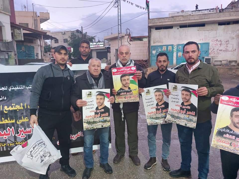 بدعوه من نادي الاسير الفلسطيني في محافظة اريحا والمكتب التنفيذي لدائرة اللاجئين في المخيمات الفلسطينية ( دائرة الأسرى والشهداء والجرحى) تنفذ فعالية شعبية في مخيم عقبة جبر دوار الشهداء اسنادا للأسير ناصر ابو حميد واسرانا البواسل.