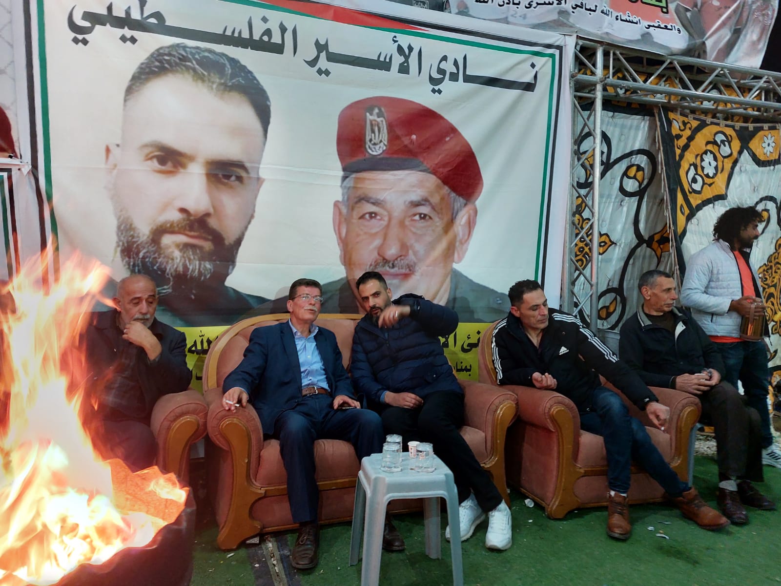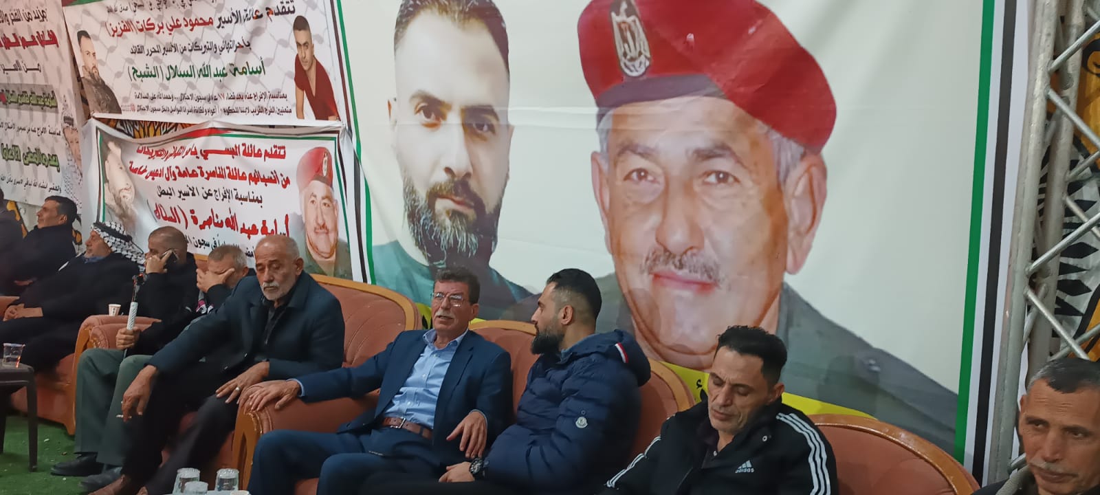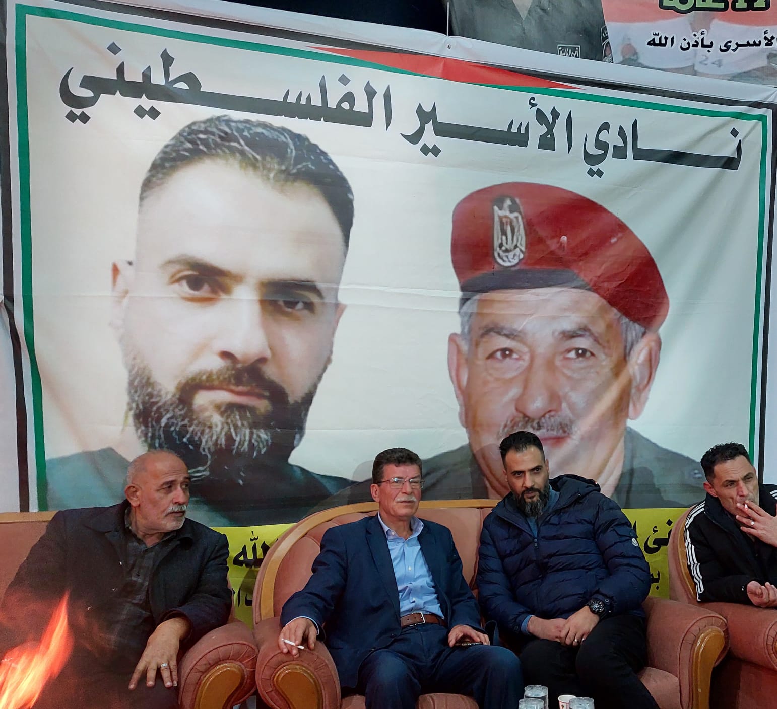 قدورة فارس رئيس نادي الاسير الفلسطيني على رأس وفد من نادي الأسير الفلسطيني في محافظة الخليل يقدمان التهاني والتبريكات للأسير المحرر أسامة عبد الله مناصرة السلال بمناسبة تحرره من سجون الاحتلال بعد اعتقال استمر 17 عام قضاها في سجون الاحتلال