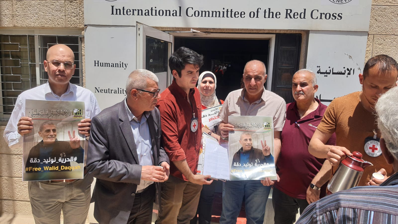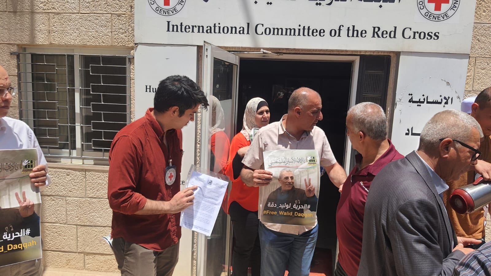 تنظيم فعالية دعم واسناد للمطالبة بإطلاق سراح الاسيرين وليد دقة وعارصف الرفاعي والمرضى جميعا امام مقر الصليب الاحمر في بيت لحم وتسليم مذكرة للصليب الاحمر حول وضعهم الصحي الخطير