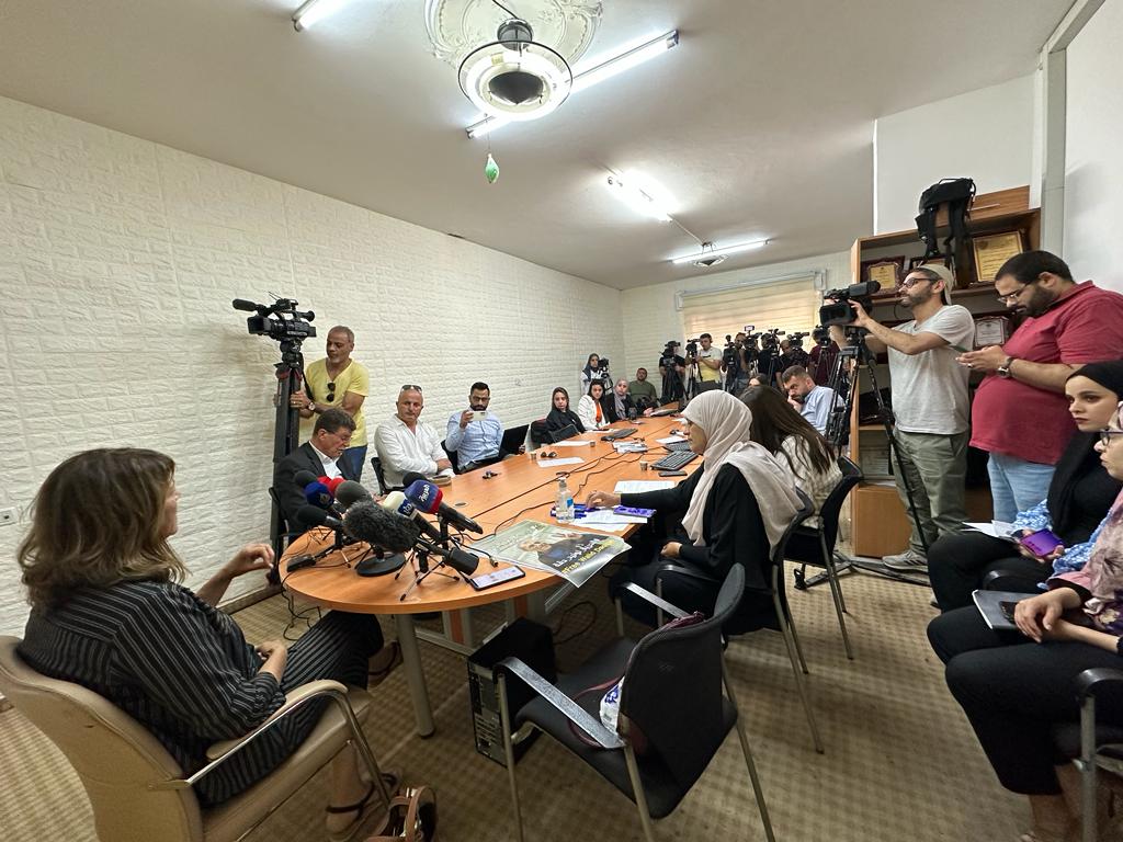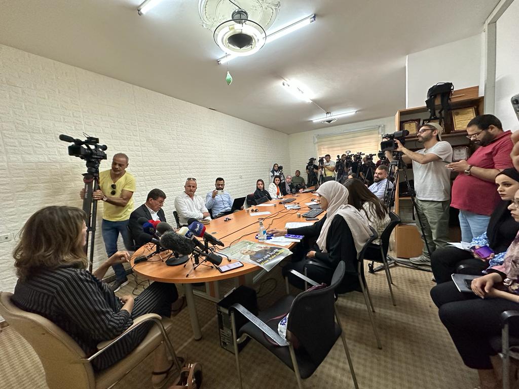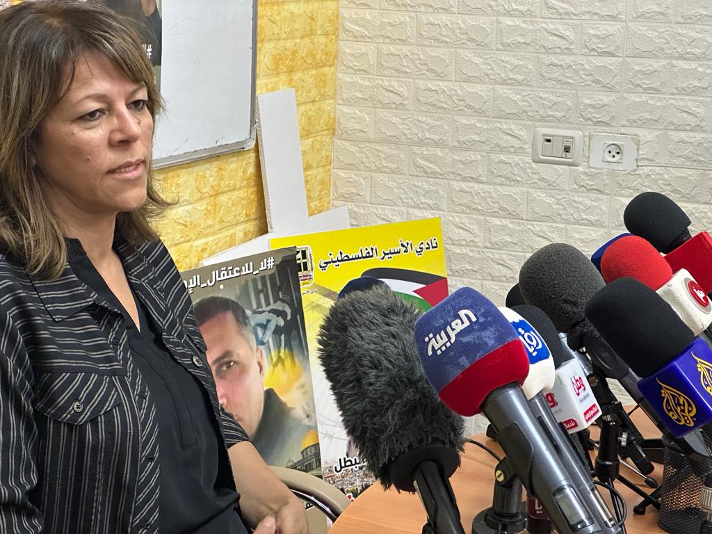 من اللقاء الصحفي الذي نظمه نادي الأسير، بحضور زوجة الأسير القائد وليد دقة، وذلك حول مستجدات الوضع الصحي له والمسار القانوني الذي بدأت به عائلته