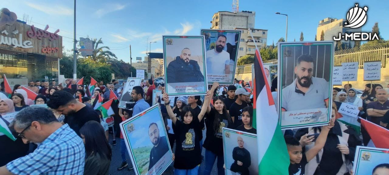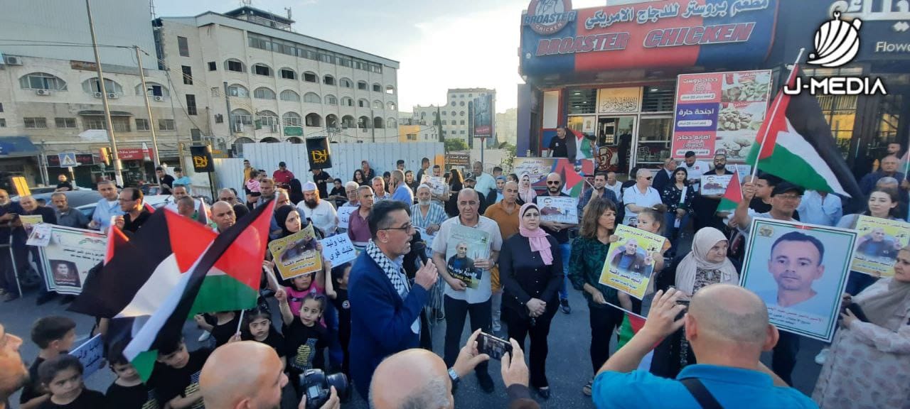 مؤسسات الأسرى تنظم وقفة دعم وإسناد للأسير وليد دقة وكافة الأسرى المرضى في سجون الاحتلال في بيت لحم بمشاركة زوجته وابنته.