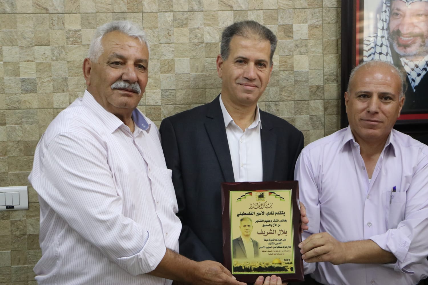 وفي بدابة حفل التكريم وجه امجد النجار مدير عام العلاقات العامة والاعلام في نادي الأسير الفلسطيني الشكر الجزيل لعطوفة المحافظ على إقامة هذا الحفل المتواضع وكافة الاخوة الذين حضروا جميعا من كافة المؤسسات والقوى الوطنية والذين ربطتهم علاقة عمل ووفاء وانتماء على مدار ثلاثون عام مع الأخ بلال الشريف وتواصلوا معه ليل نهار وعلى مدار الساعة من متابعات يومية نتيجة إجراءات الاحتلال من اقتحامات ونقل الجرحى وتوثيق ما يحدث من عمليات قمع وتنكيل سواء في وسط المدينة او في مسافر يطا او في المخيمات ....