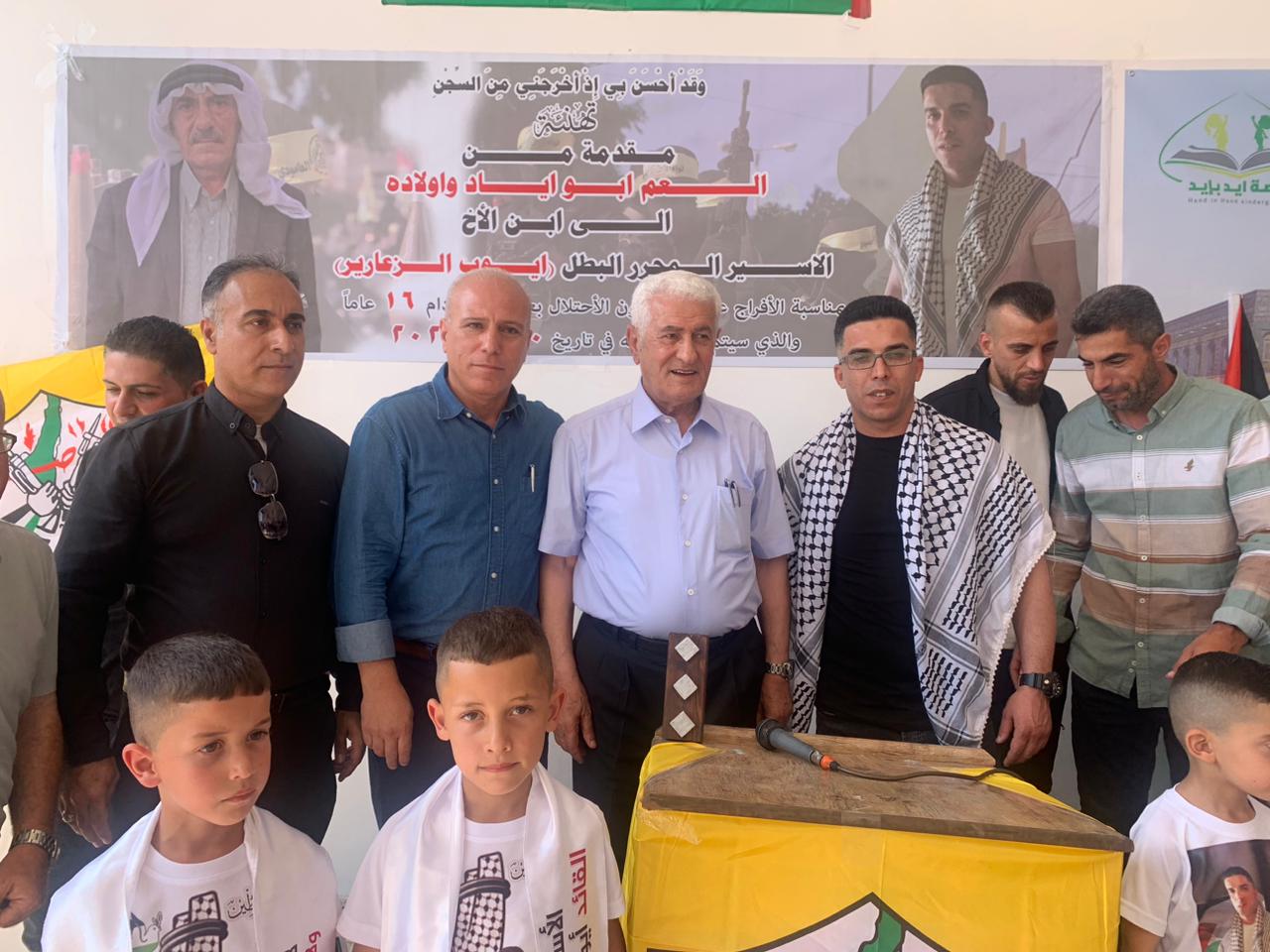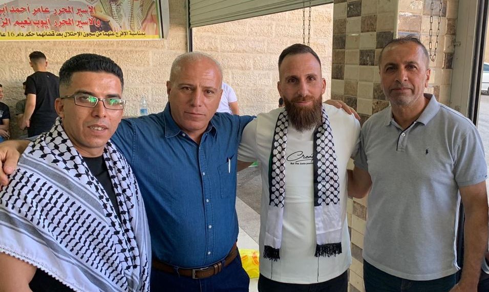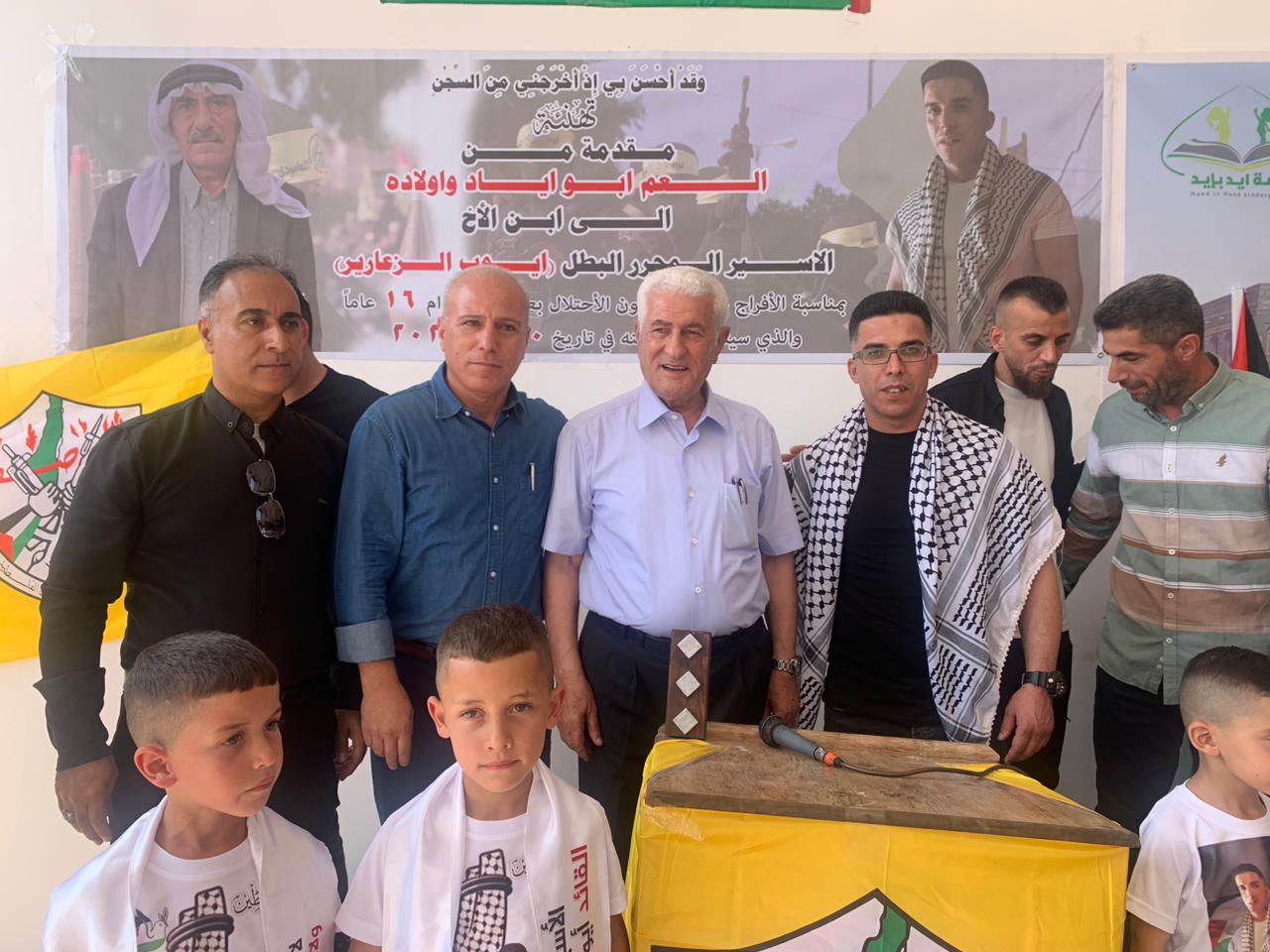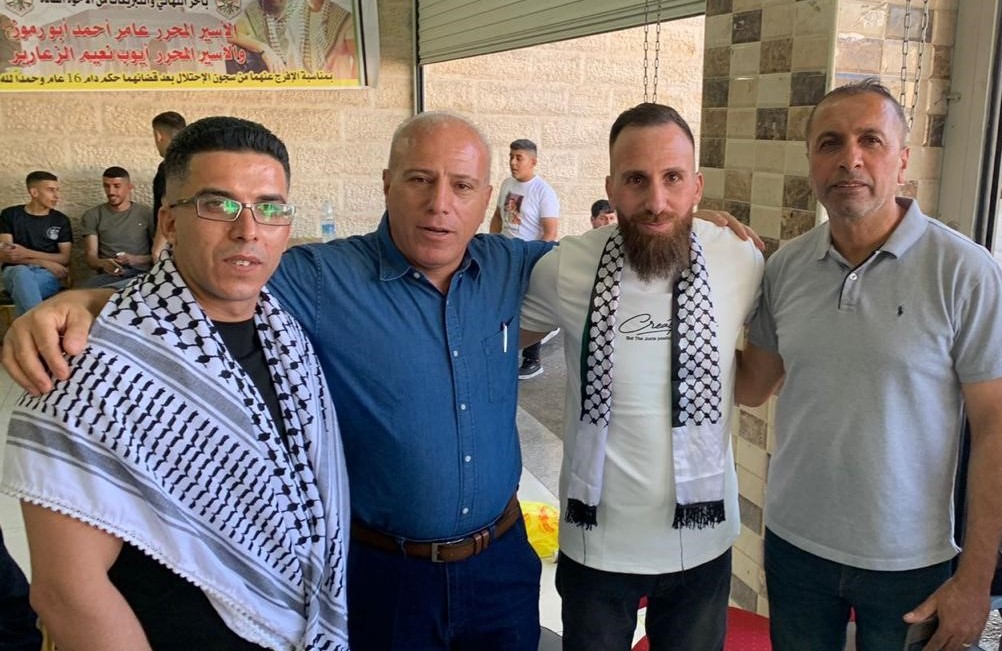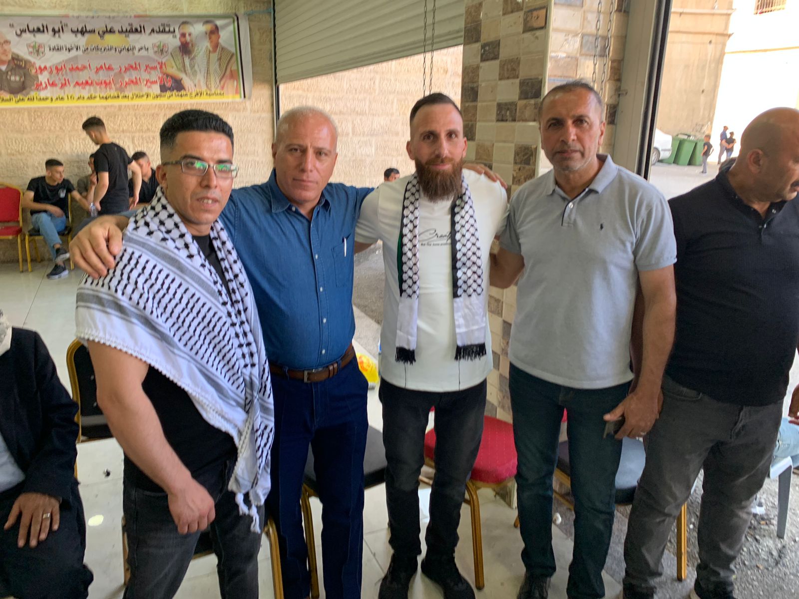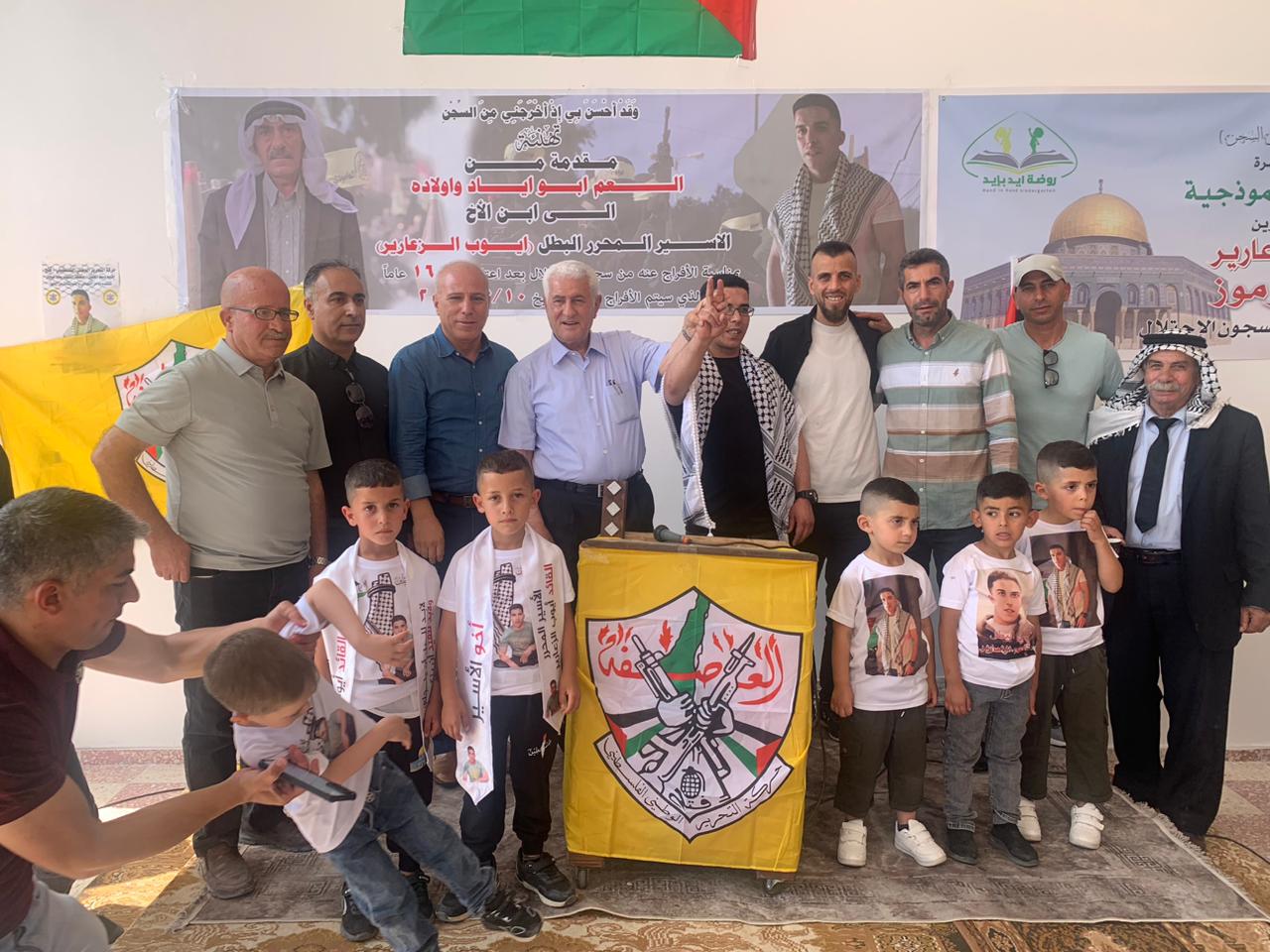 جانب من استقبال نادي الأسير الفلسطيني في الخليل للأسيرين المحررين عامر ابو رموز وأيوب الزعارير بعد اعتقال دام 16 عام في سجون الاحتلال