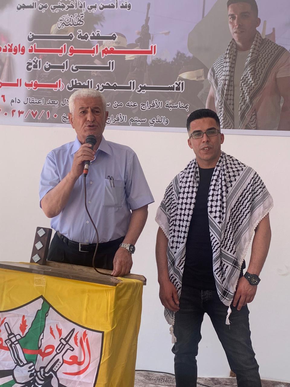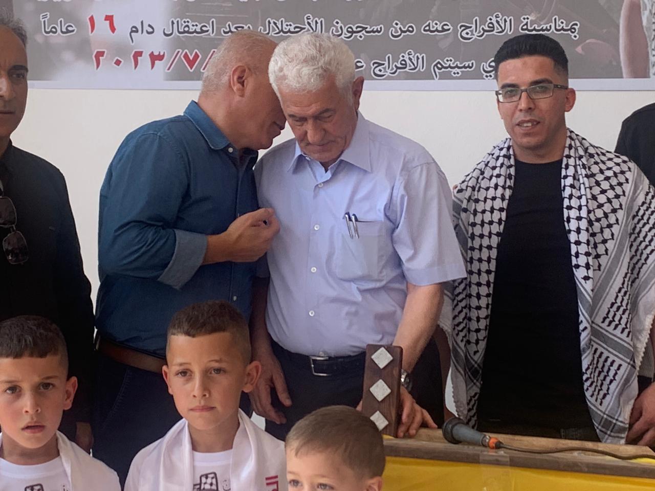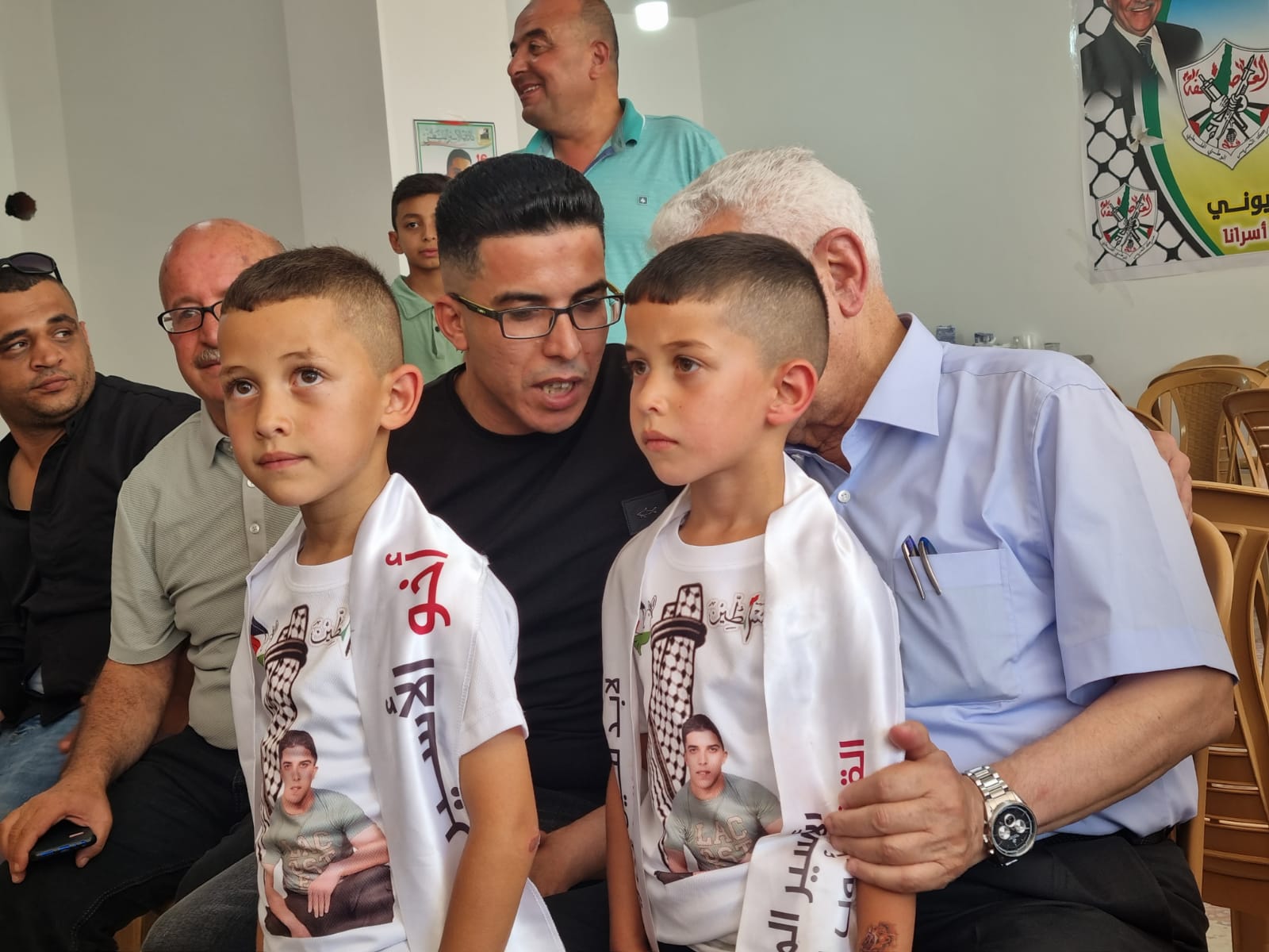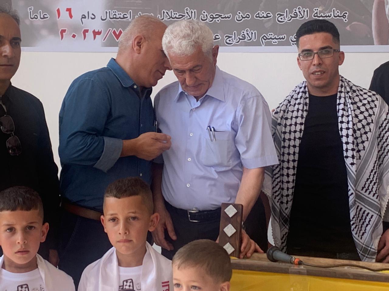 جانب من استقبال نادي الأسير الفلسطيني في الخليل للأسيرين المحررين عامر ابو رموز وأيوب الزعارير بعد اعتقال دام 16 عام في سجون الاحتلال