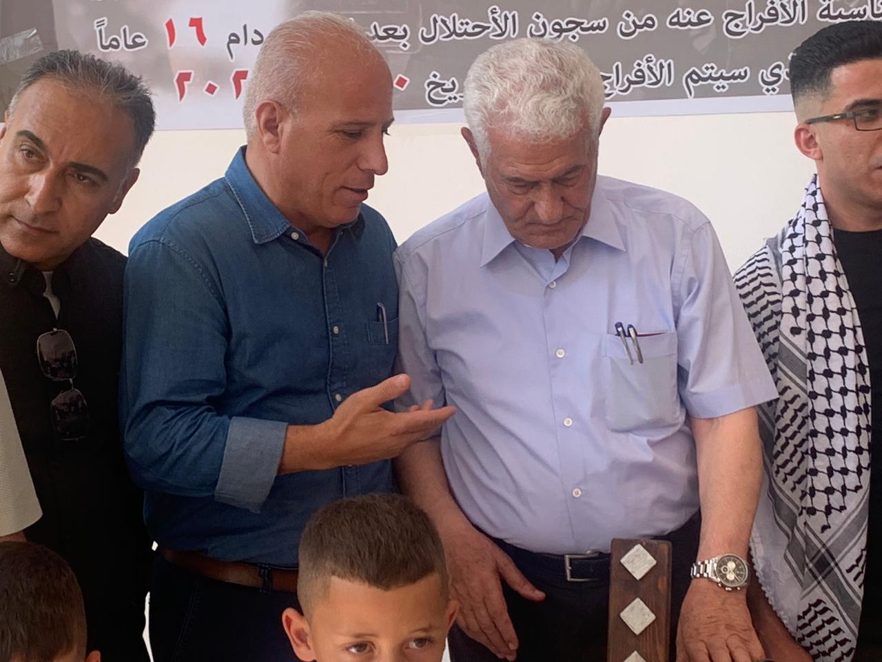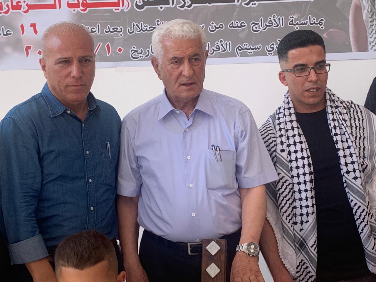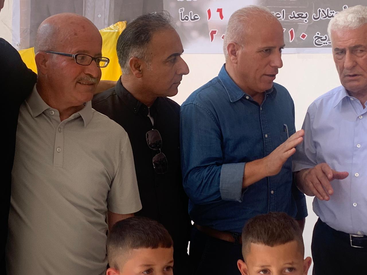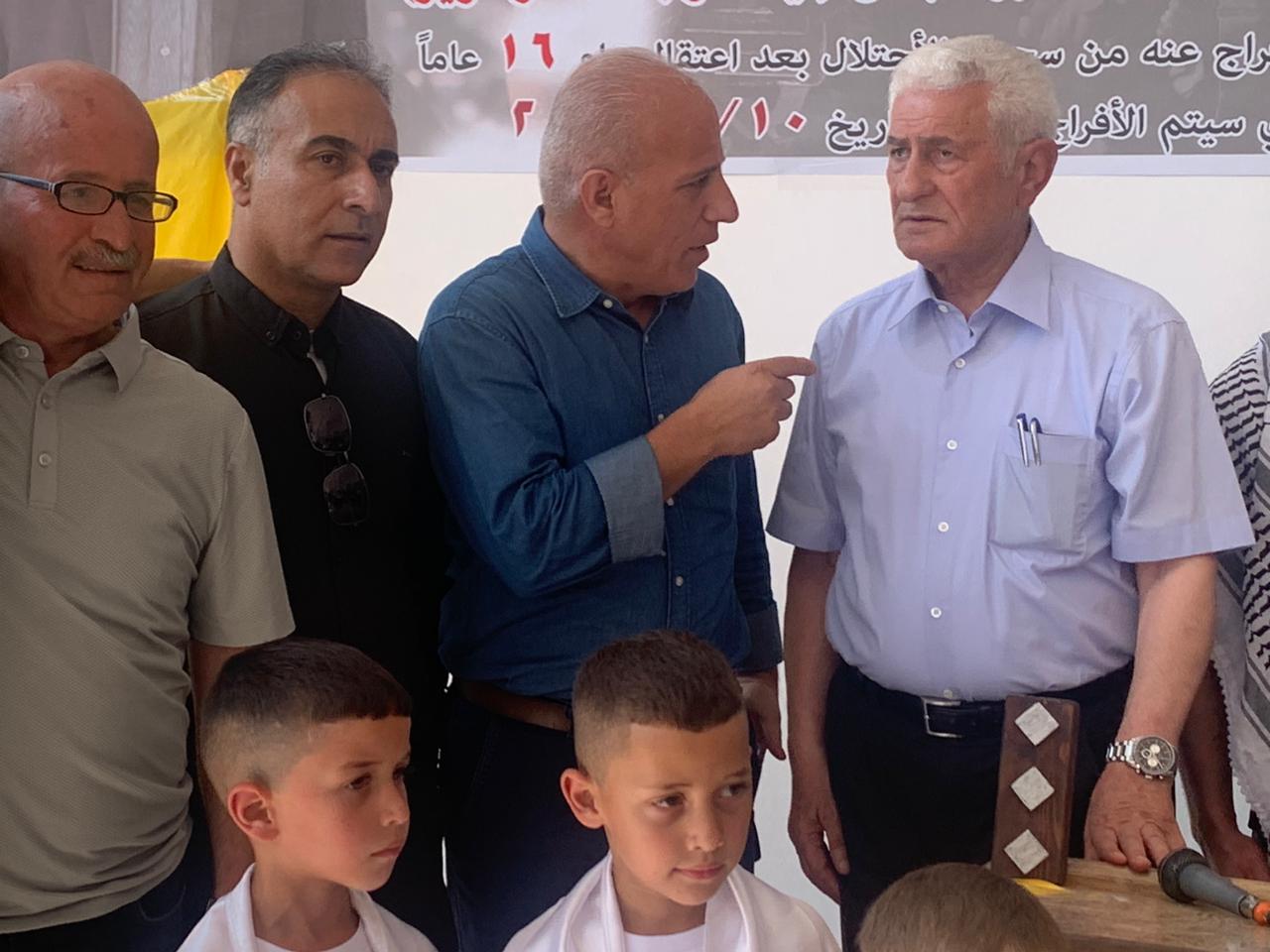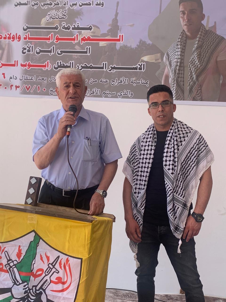 جانب من استقبال نادي الأسير الفلسطيني في الخليل للأسيرين المحررين عامر ابو رموز وأيوب الزعارير بعد اعتقال دام 16 عام في سجون الاحتلال