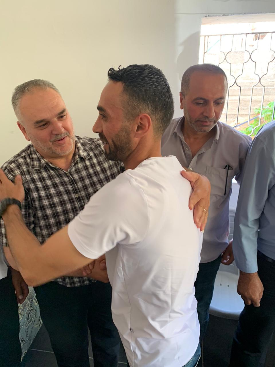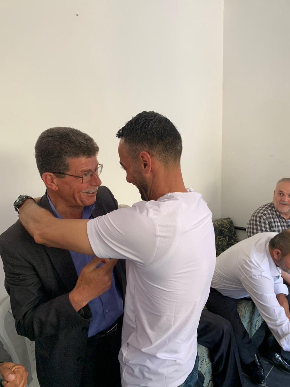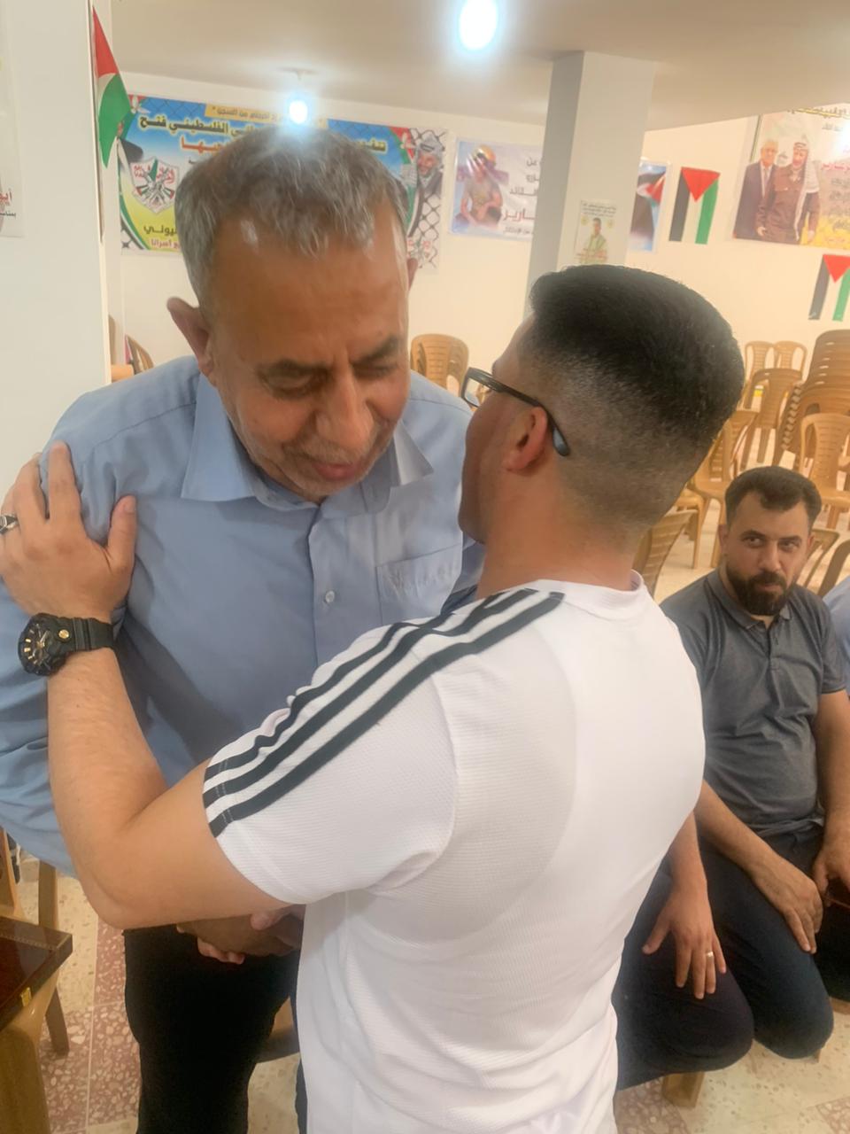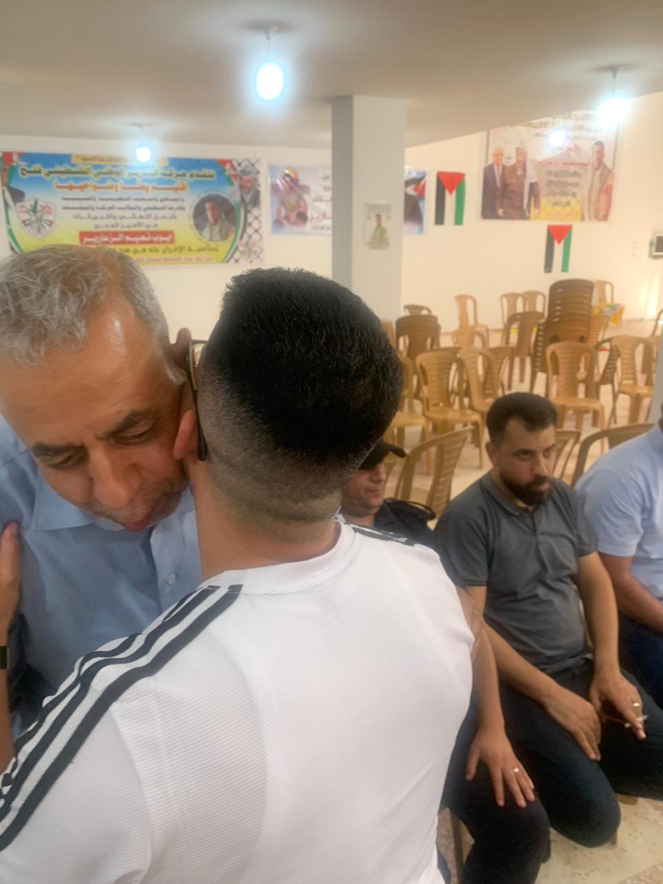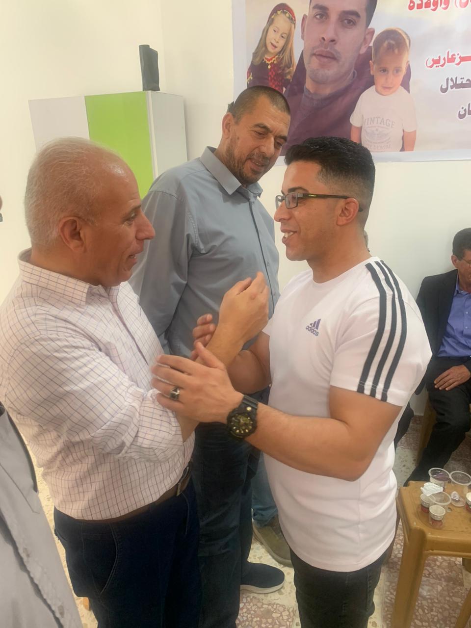قدورة فارس رئيس نادي الأسير الفلسطيني على رأس وفد من نادي الأسير الفلسطيني وكادر من الاسرى المحررين وبمشاركة وفد من هيئة التوجيه السياسي والوطني يقدمان التهاني للأسرى المحررين ( رامي حسان وعامر أبو رموز وايوب الزعارير ) بمناسبة تحررهم من سجون الاحتلال ...