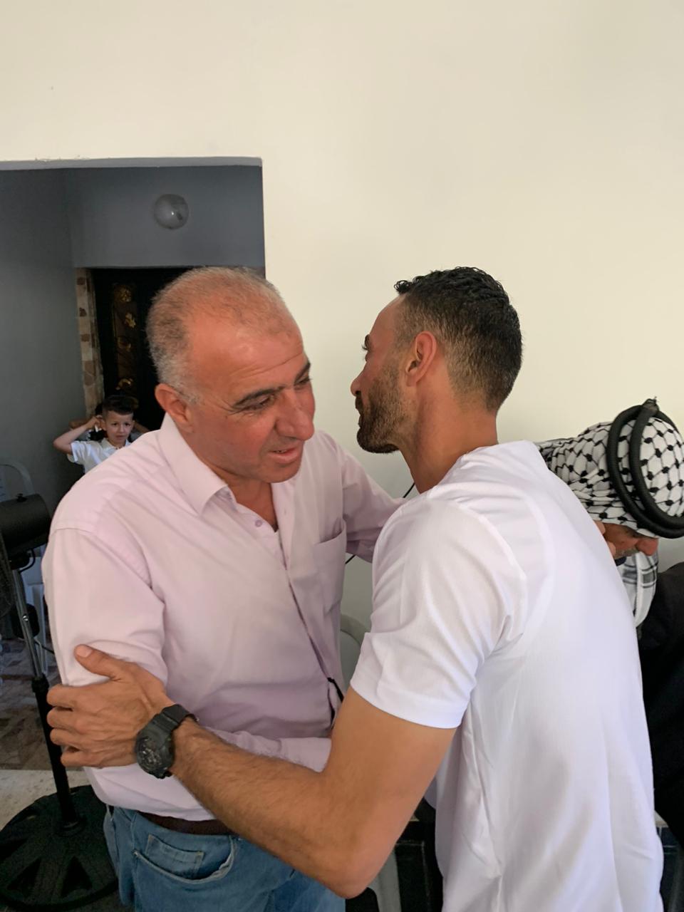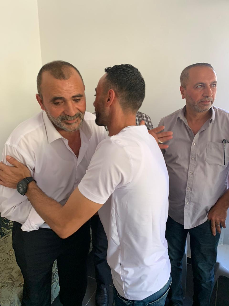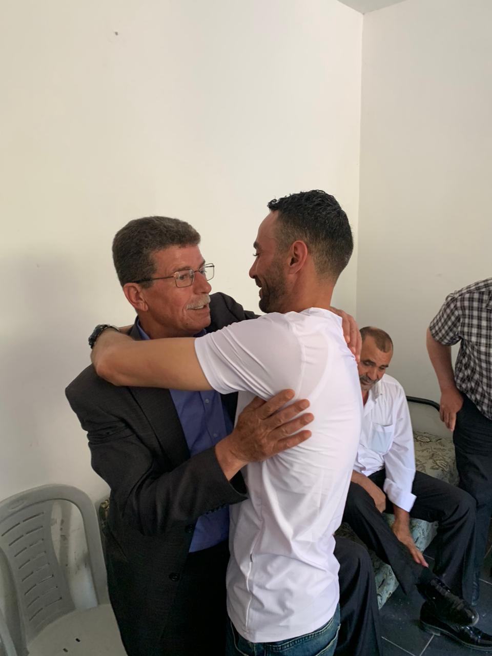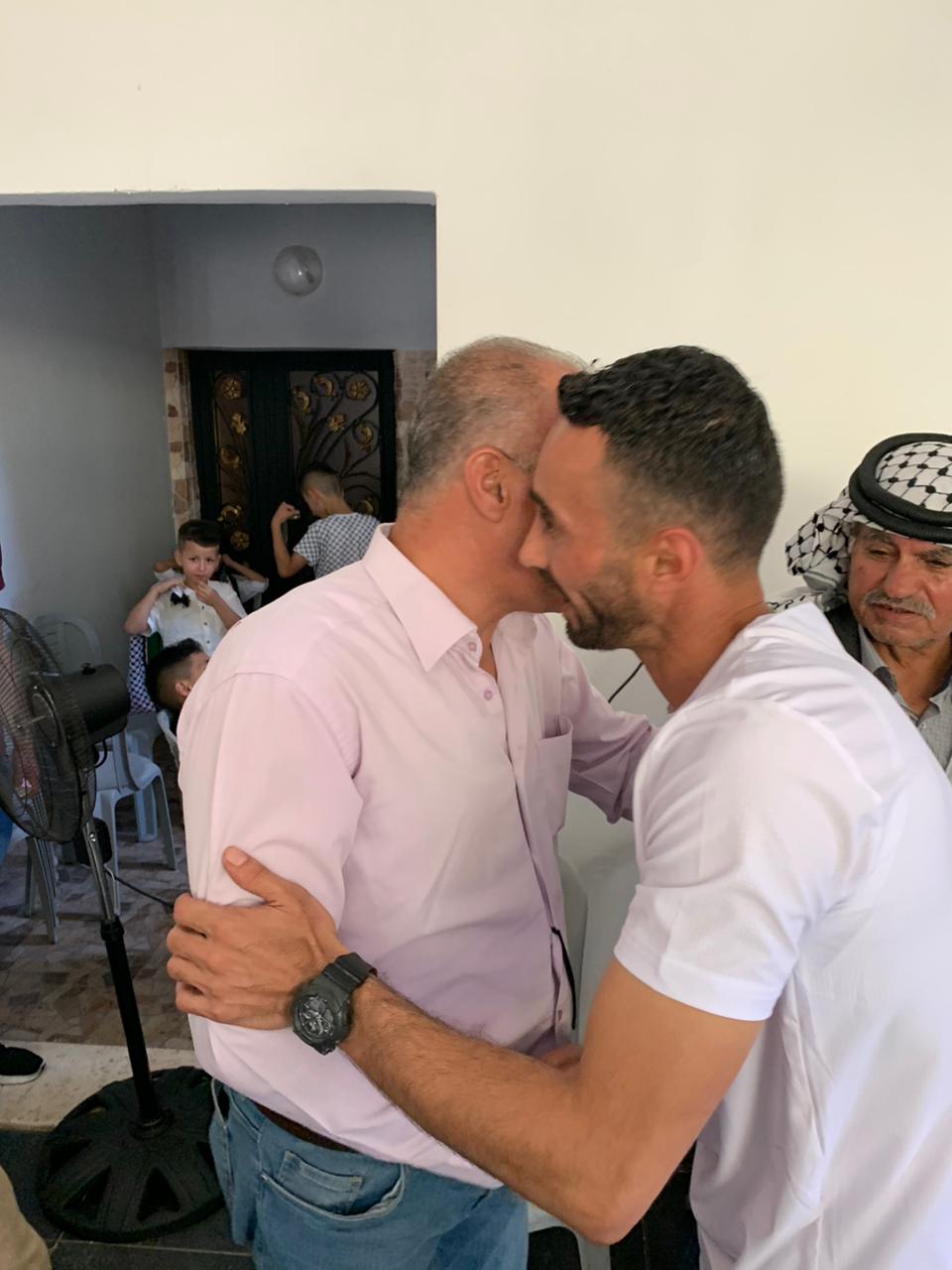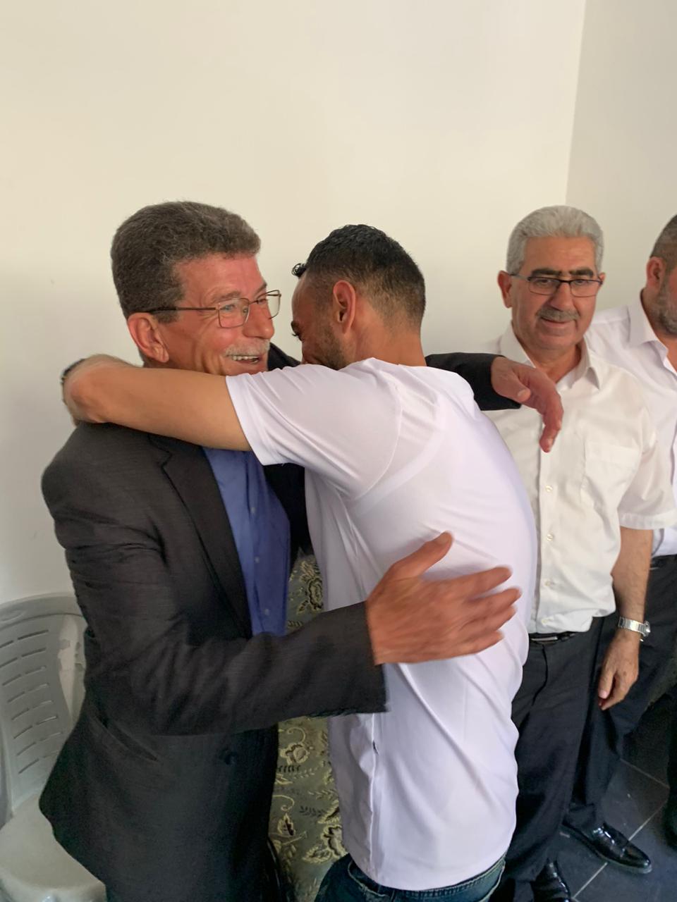 قدورة فارس رئيس نادي الأسير الفلسطيني على رأس وفد من نادي الأسير الفلسطيني وكادر من الاسرى المحررين وبمشاركة وفد من هيئة التوجيه السياسي والوطني يقدمان التهاني للأسرى المحررين ( رامي حسان وعامر أبو رموز وايوب الزعارير ) بمناسبة تحررهم من سجون الاحتلال ...