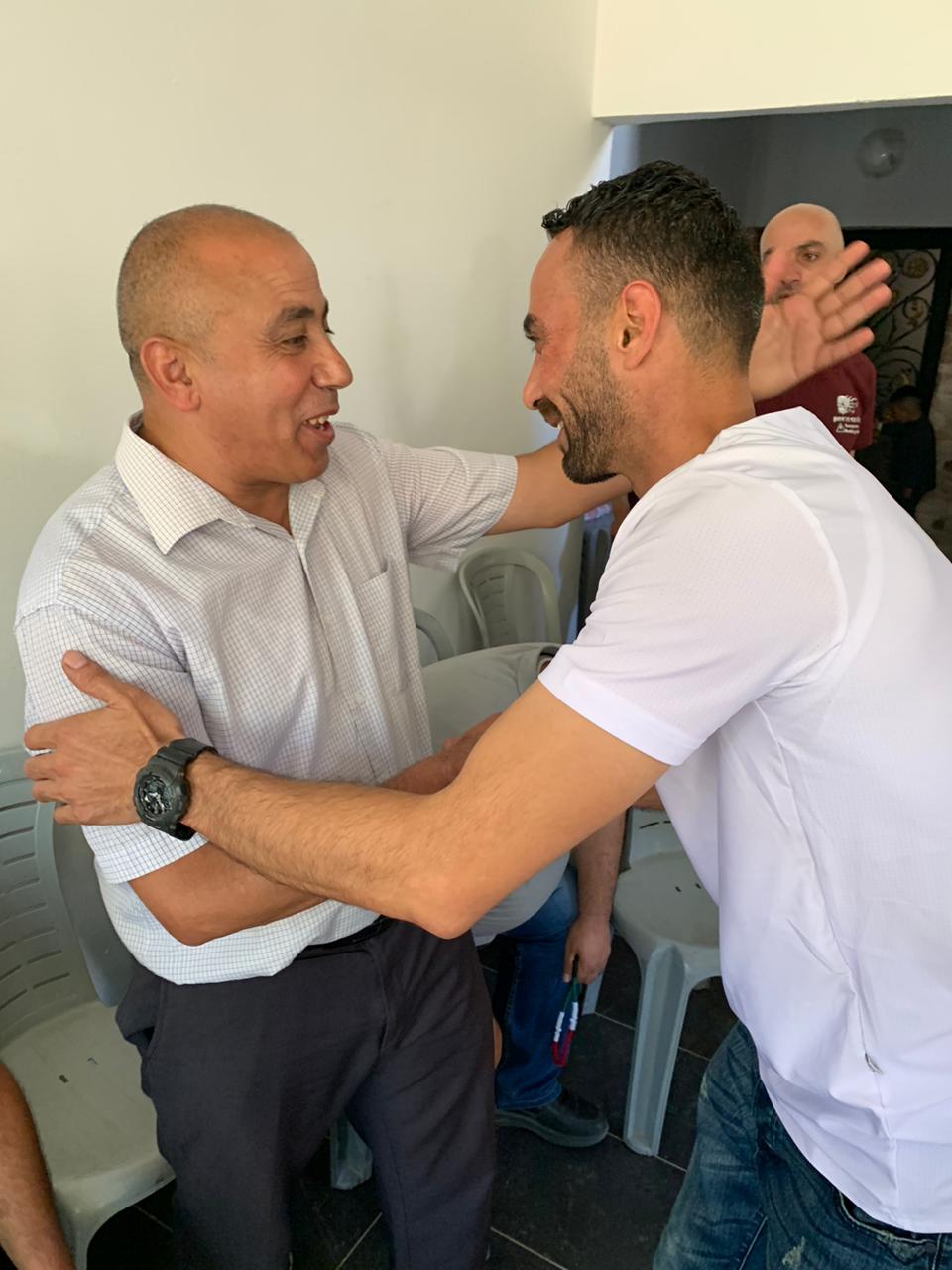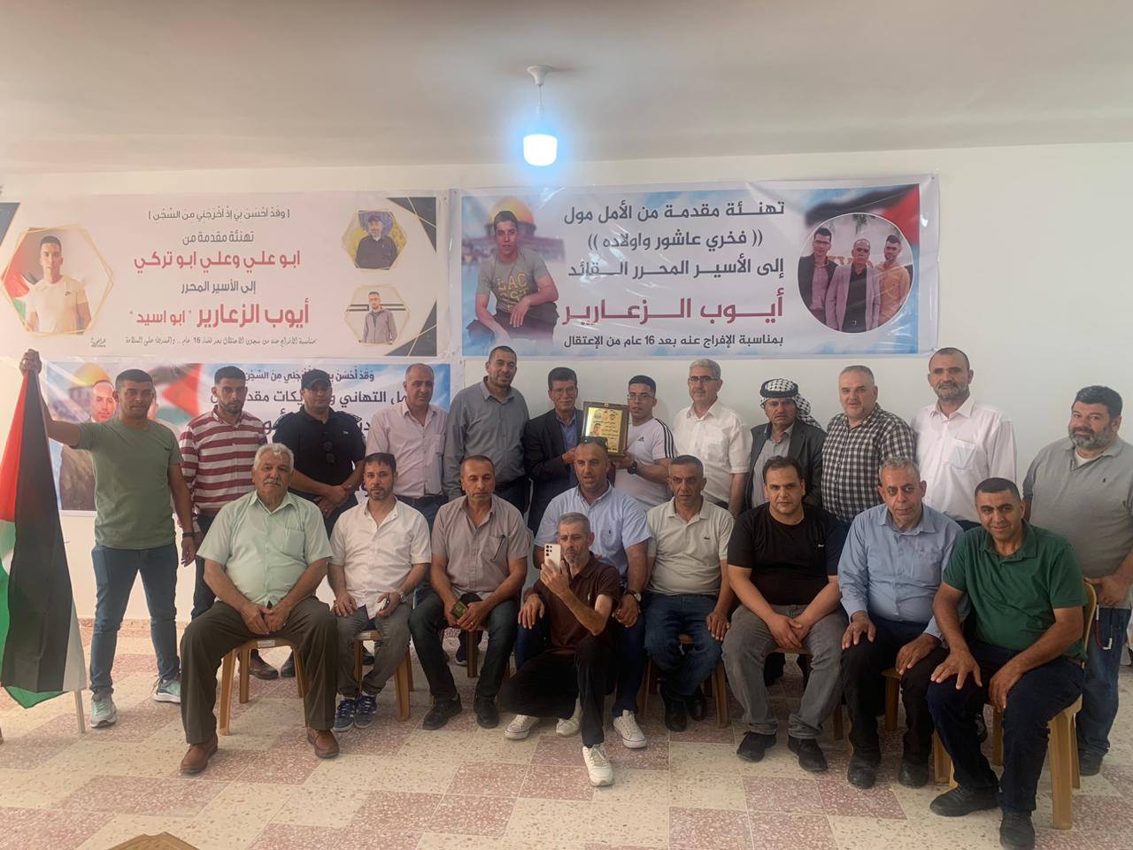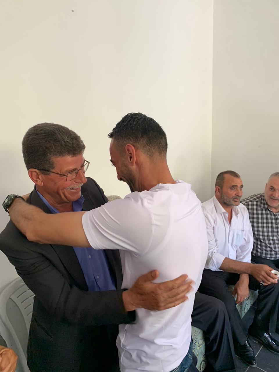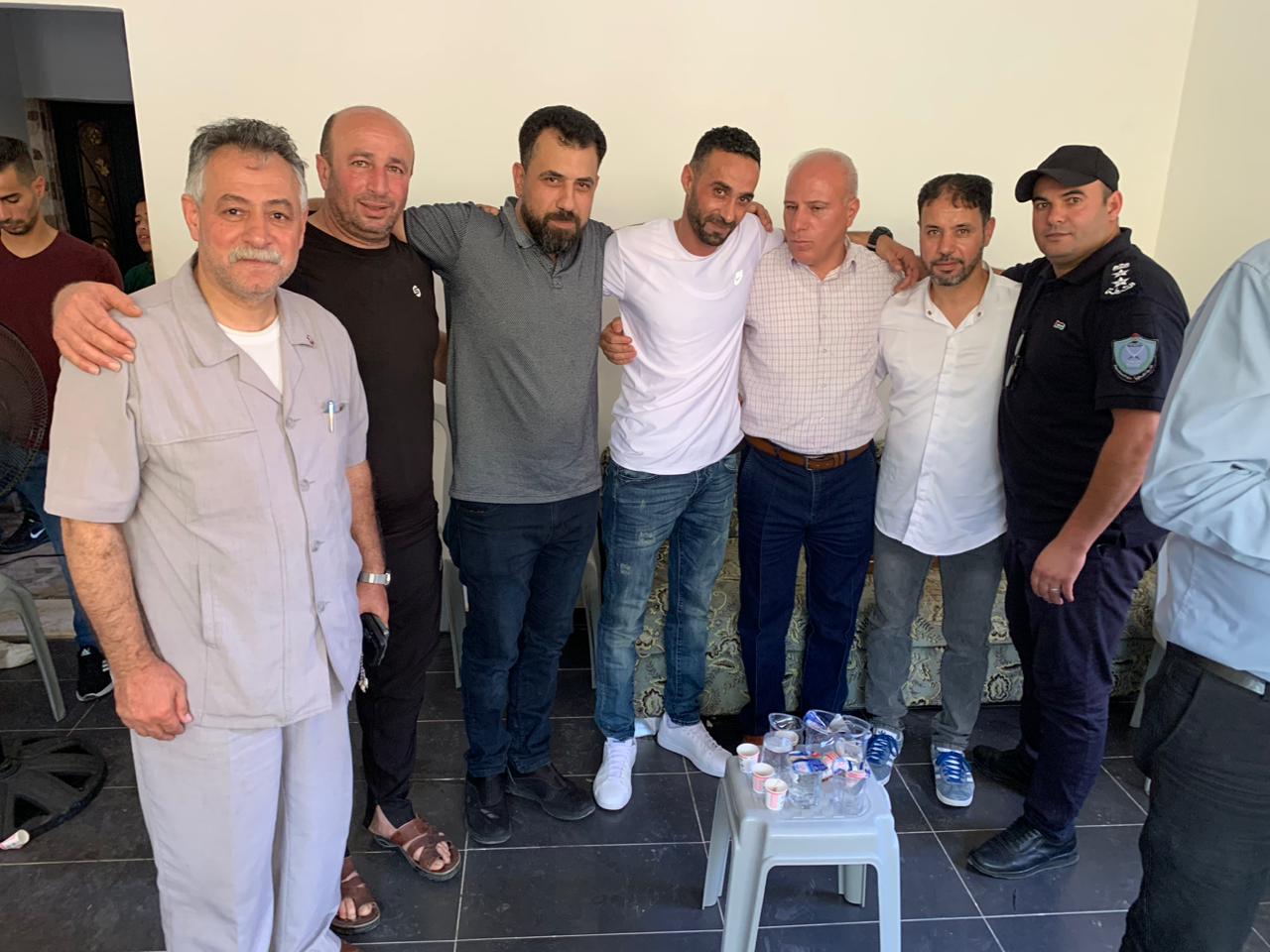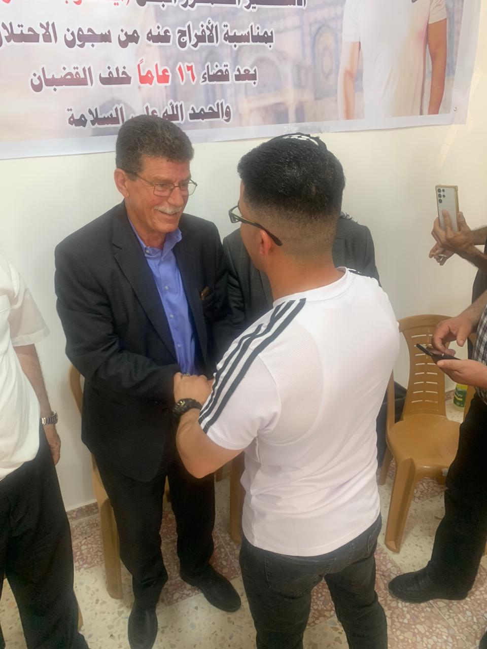 قدورة فارس رئيس نادي الأسير الفلسطيني على رأس وفد من نادي الأسير الفلسطيني وكادر من الاسرى المحررين وبمشاركة وفد من هيئة التوجيه السياسي والوطني يقدمان التهاني للأسرى المحررين ( رامي حسان وعامر أبو رموز وايوب الزعارير ) بمناسبة تحررهم من سجون الاحتلال ...