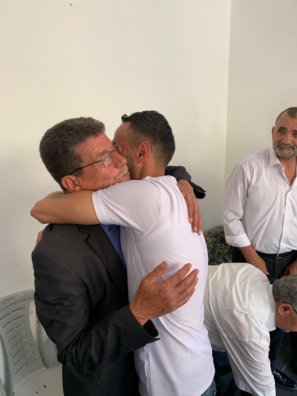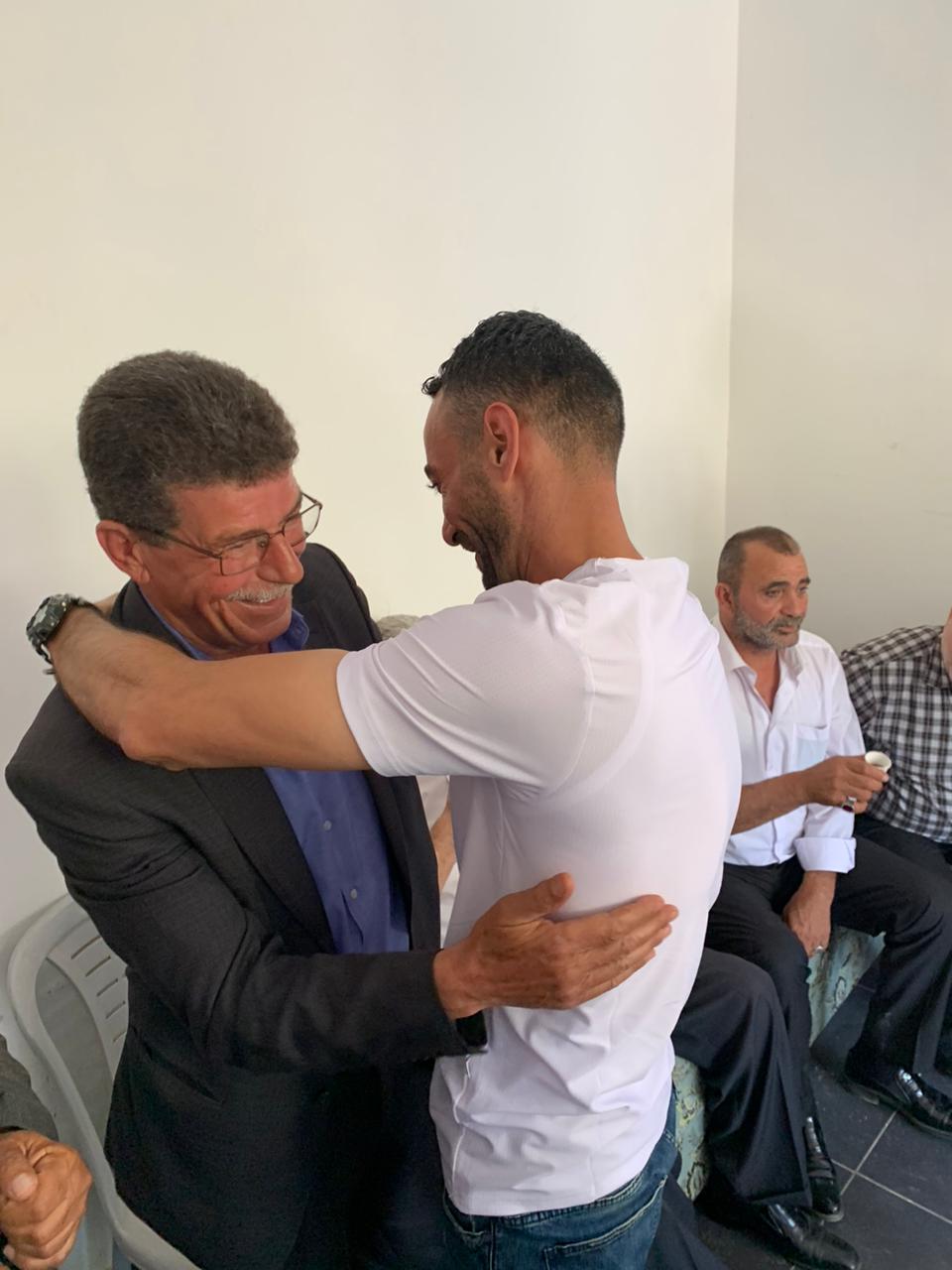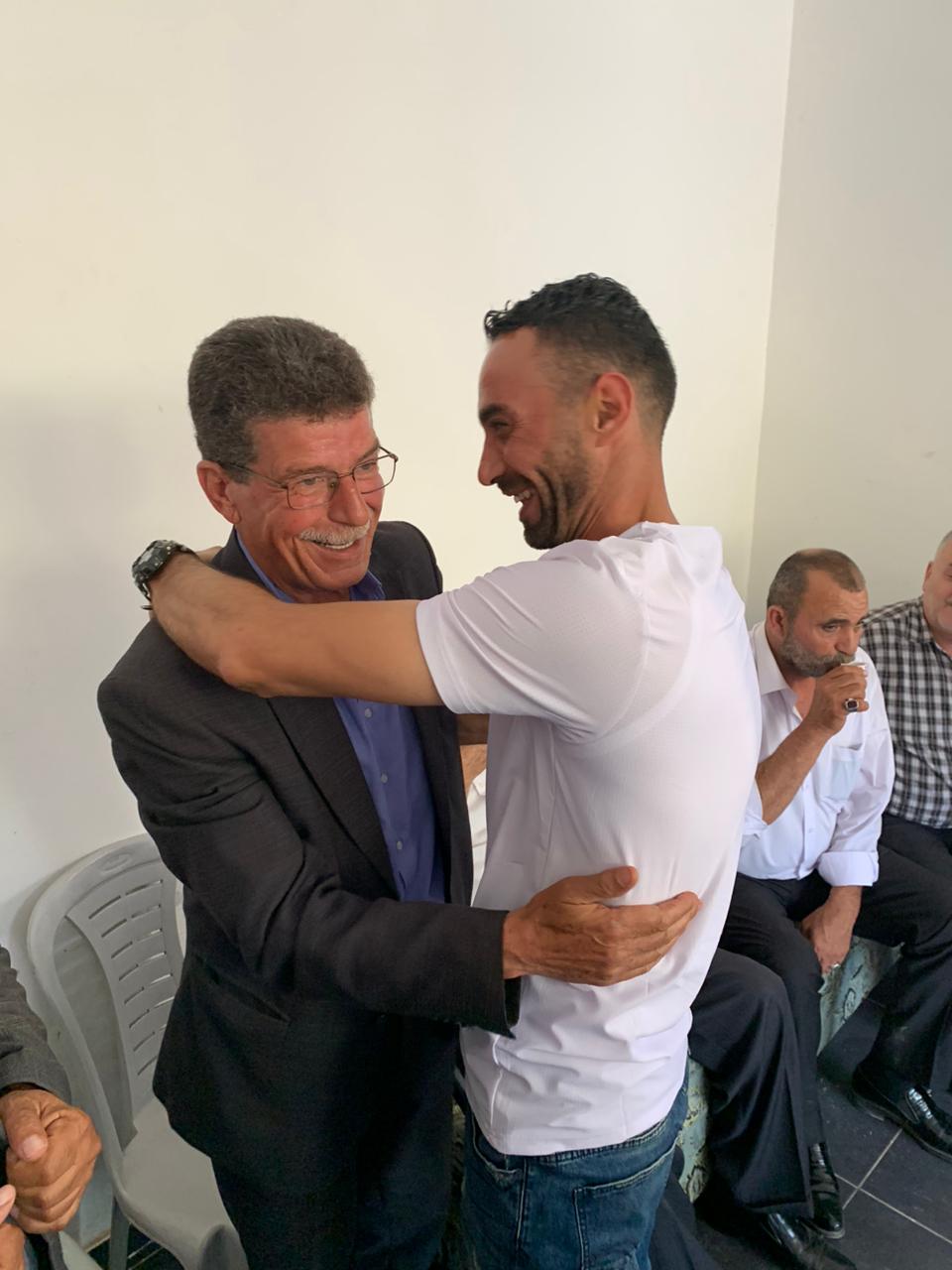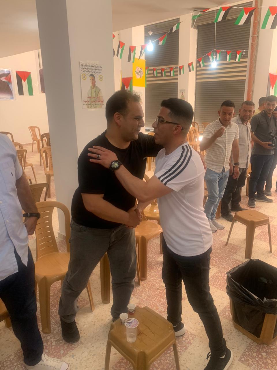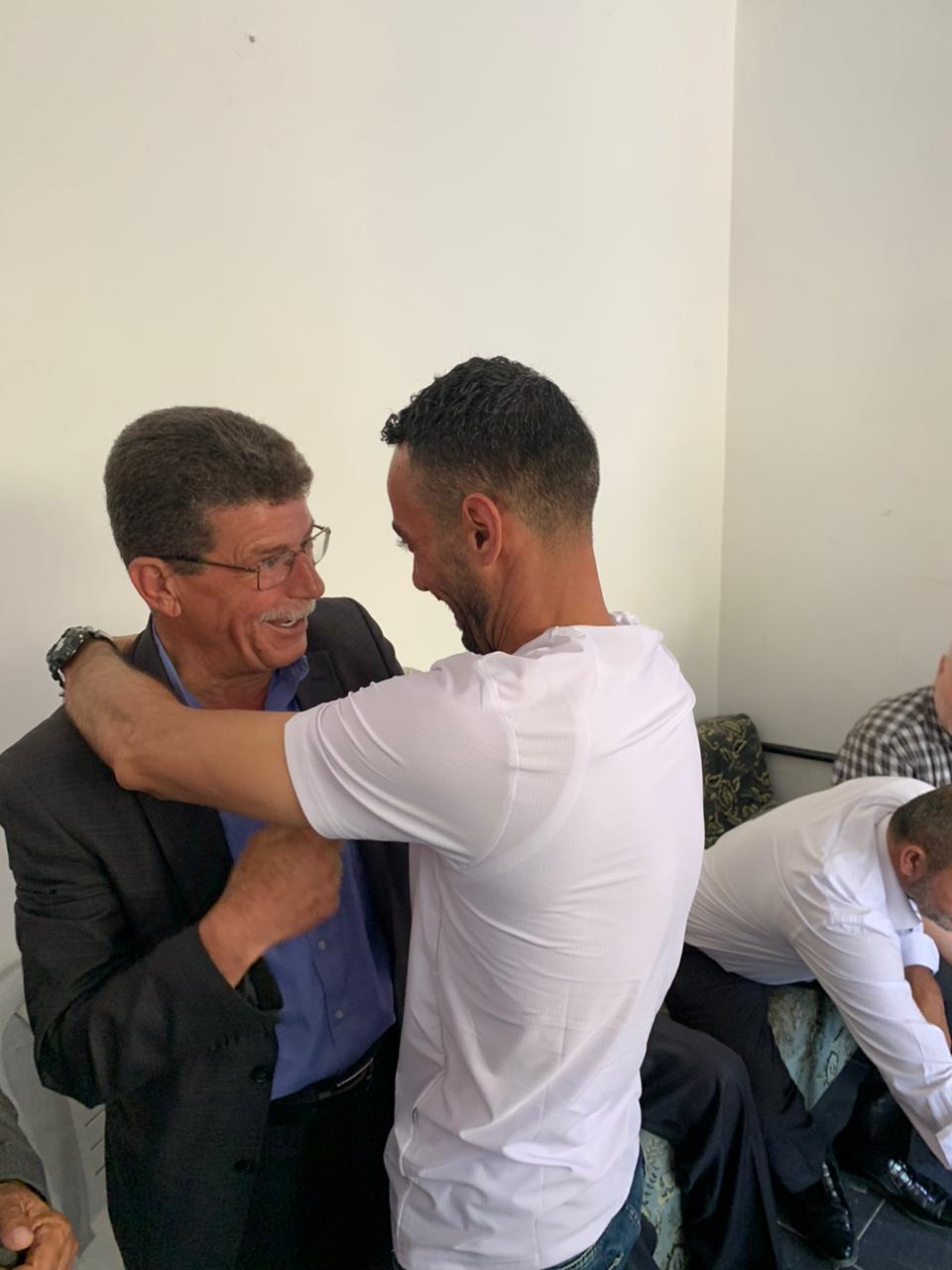 قدورة فارس رئيس نادي الأسير الفلسطيني على رأس وفد من نادي الأسير الفلسطيني وكادر من الاسرى المحررين وبمشاركة وفد من هيئة التوجيه السياسي والوطني يقدمان التهاني للأسرى المحررين ( رامي حسان وعامر أبو رموز وايوب الزعارير ) بمناسبة تحررهم من سجون الاحتلال ...