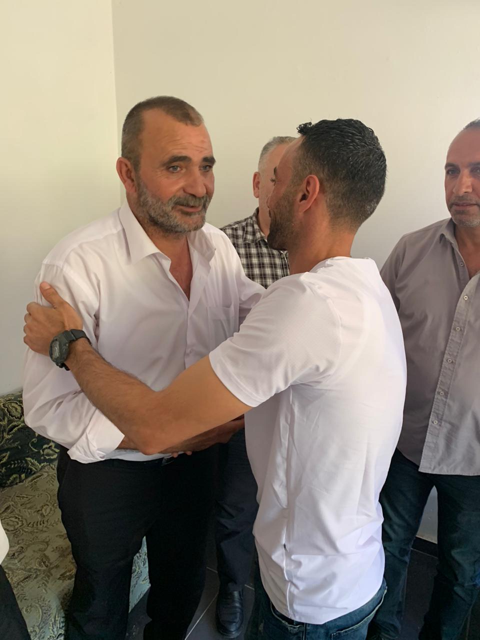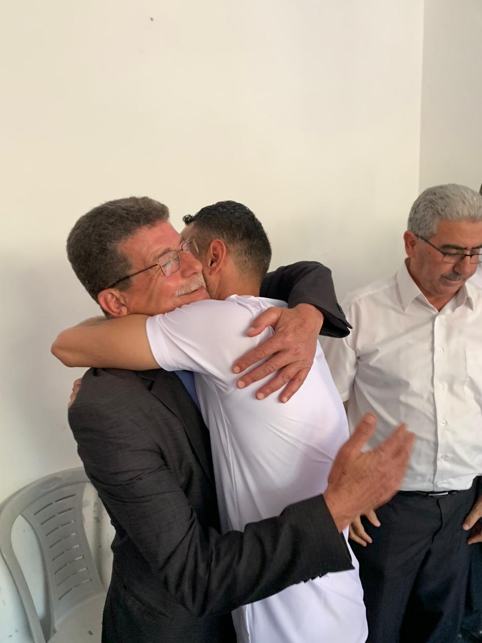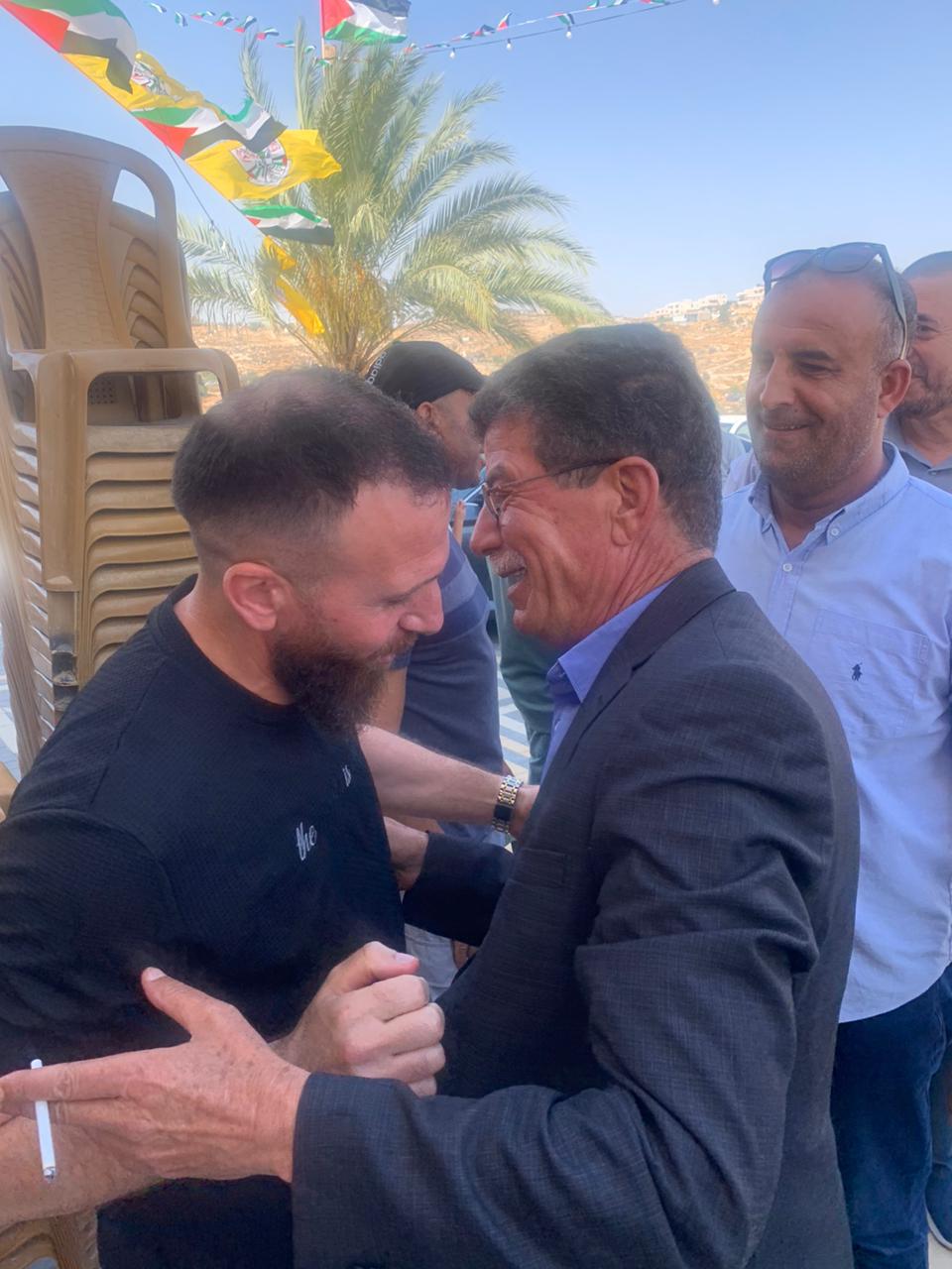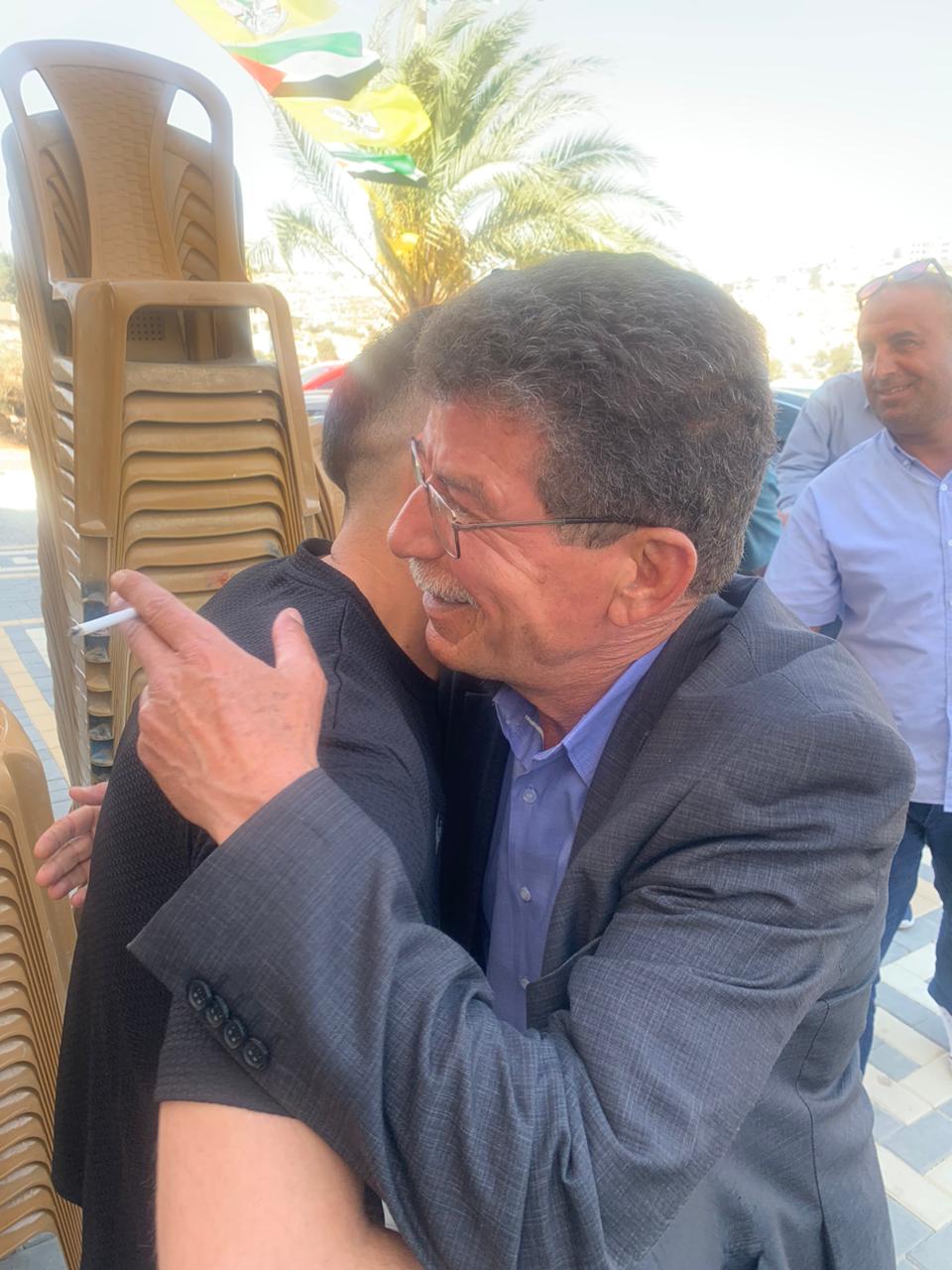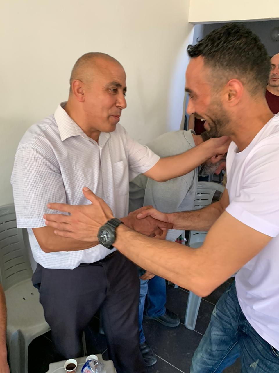 قدورة فارس رئيس نادي الأسير الفلسطيني على رأس وفد من نادي الأسير الفلسطيني وكادر من الاسرى المحررين وبمشاركة وفد من هيئة التوجيه السياسي والوطني يقدمان التهاني للأسرى المحررين ( رامي حسان وعامر أبو رموز وايوب الزعارير ) بمناسبة تحررهم من سجون الاحتلال ...