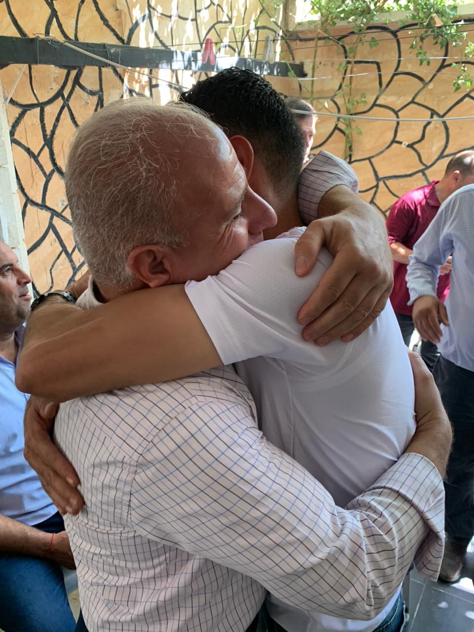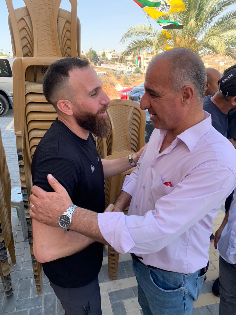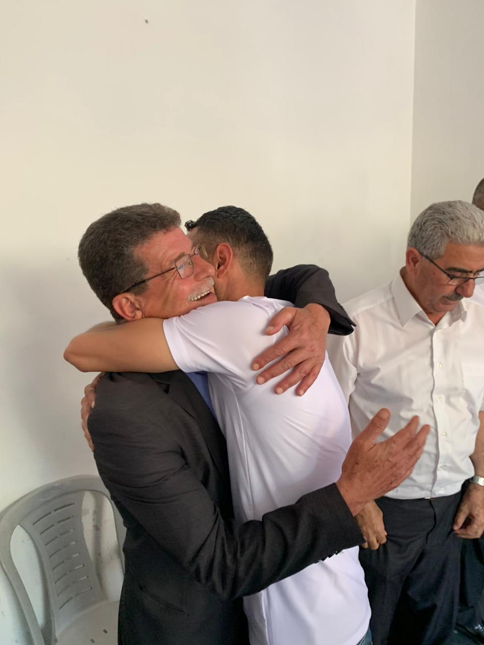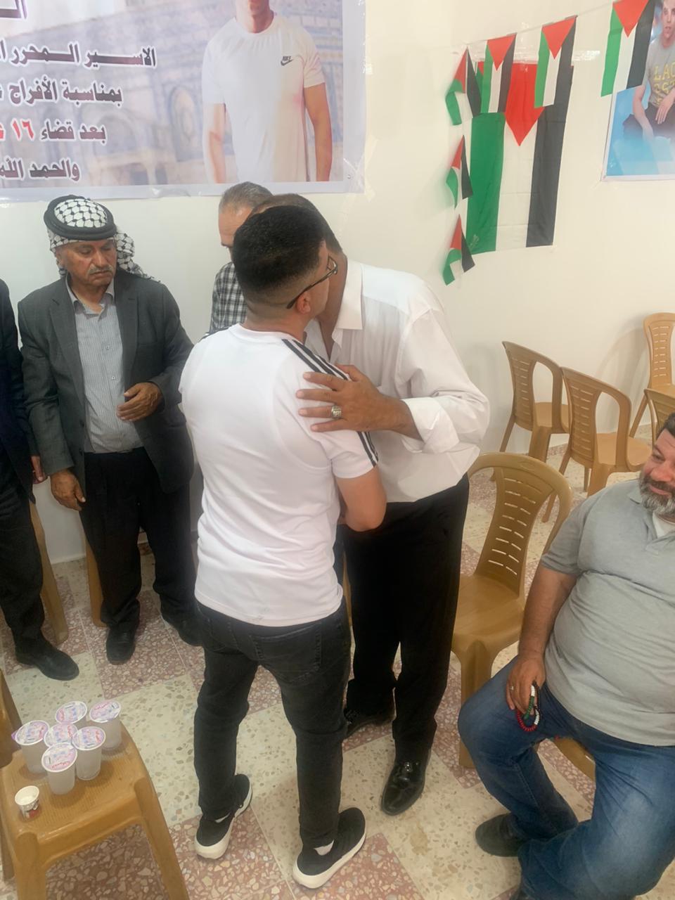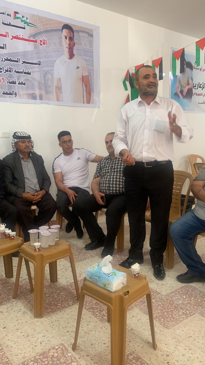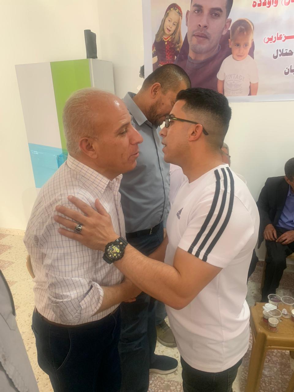 قدورة فارس رئيس نادي الأسير الفلسطيني على رأس وفد من نادي الأسير الفلسطيني وكادر من الاسرى المحررين وبمشاركة وفد من هيئة التوجيه السياسي والوطني يقدمان التهاني للأسرى المحررين ( رامي حسان وعامر أبو رموز وايوب الزعارير ) بمناسبة تحررهم من سجون الاحتلال ...