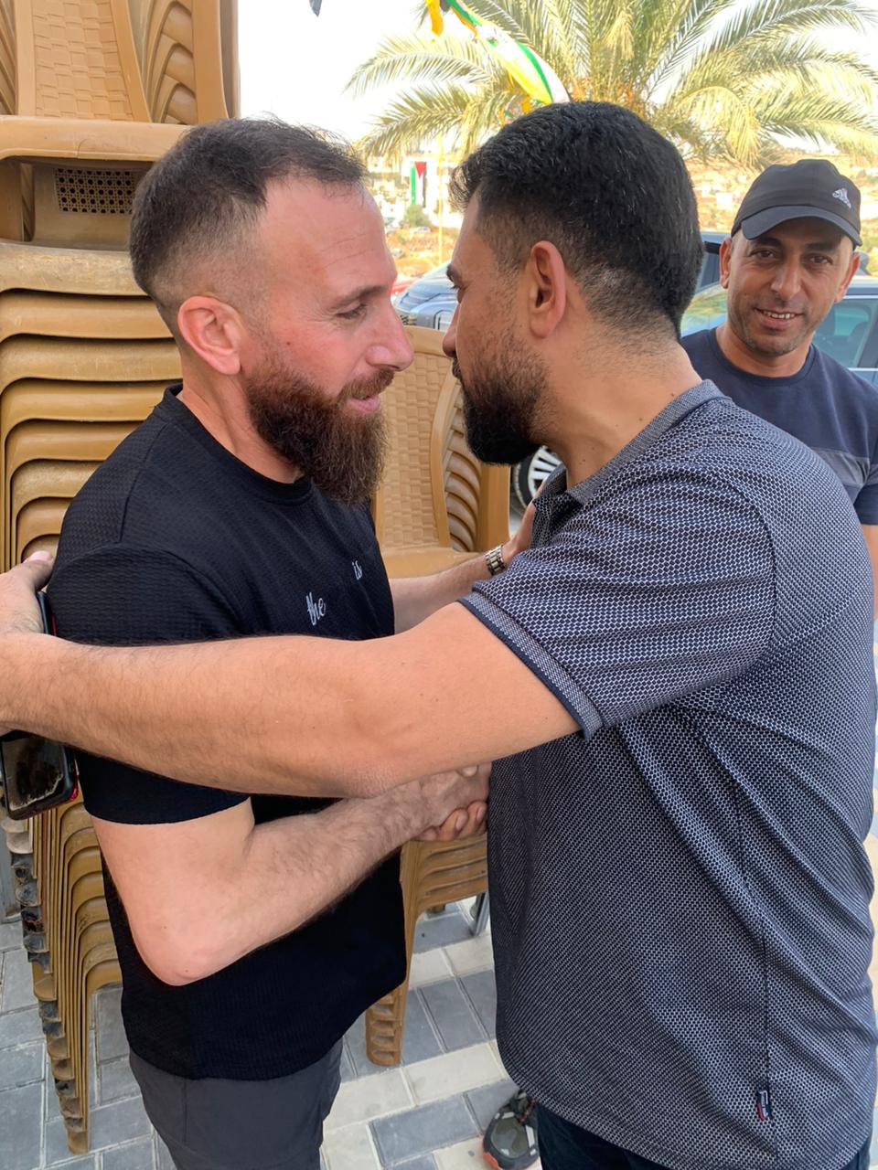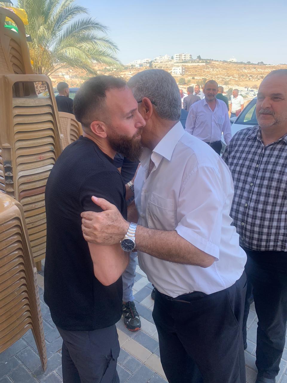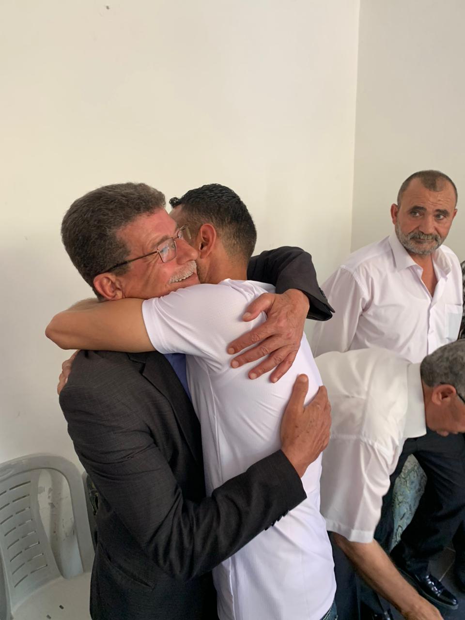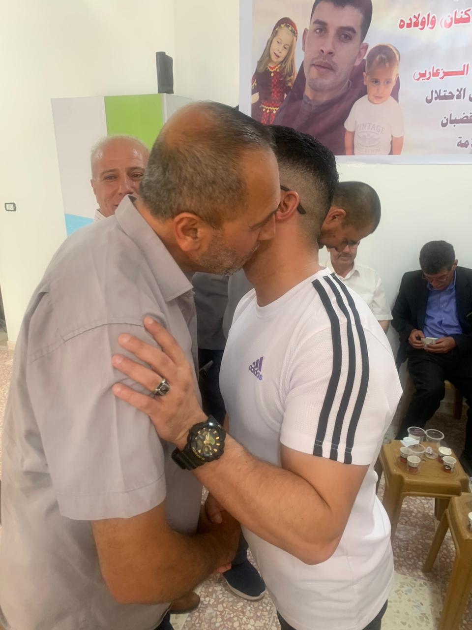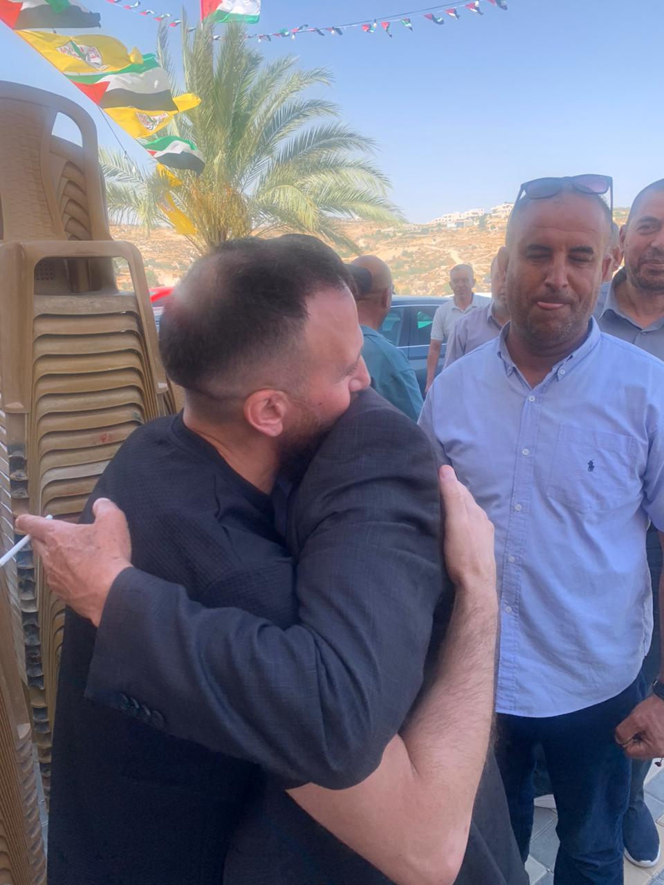 قدورة فارس رئيس نادي الأسير الفلسطيني على رأس وفد من نادي الأسير الفلسطيني وكادر من الاسرى المحررين وبمشاركة وفد من هيئة التوجيه السياسي والوطني يقدمان التهاني للأسرى المحررين ( رامي حسان وعامر أبو رموز وايوب الزعارير ) بمناسبة تحررهم من سجون الاحتلال ...
