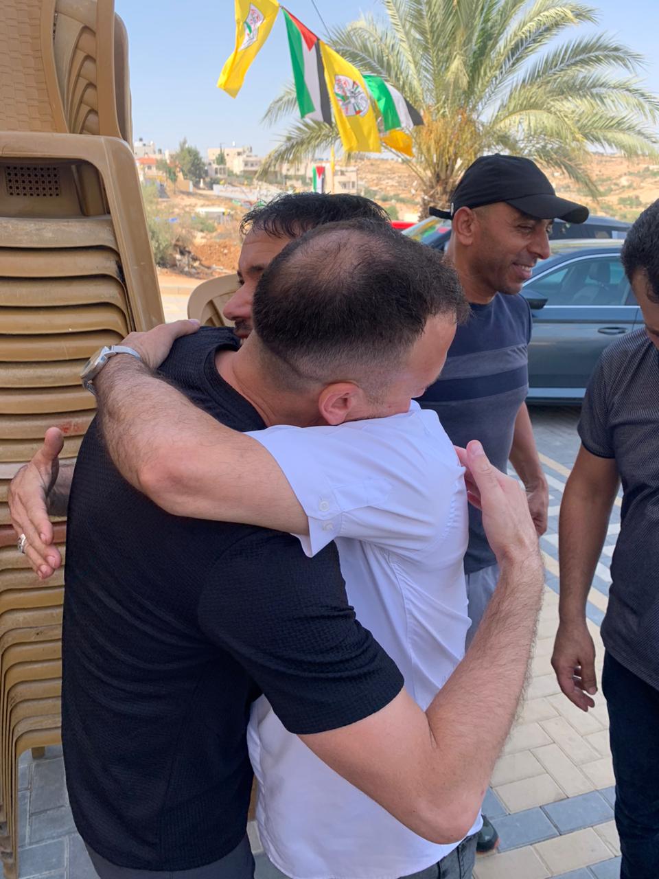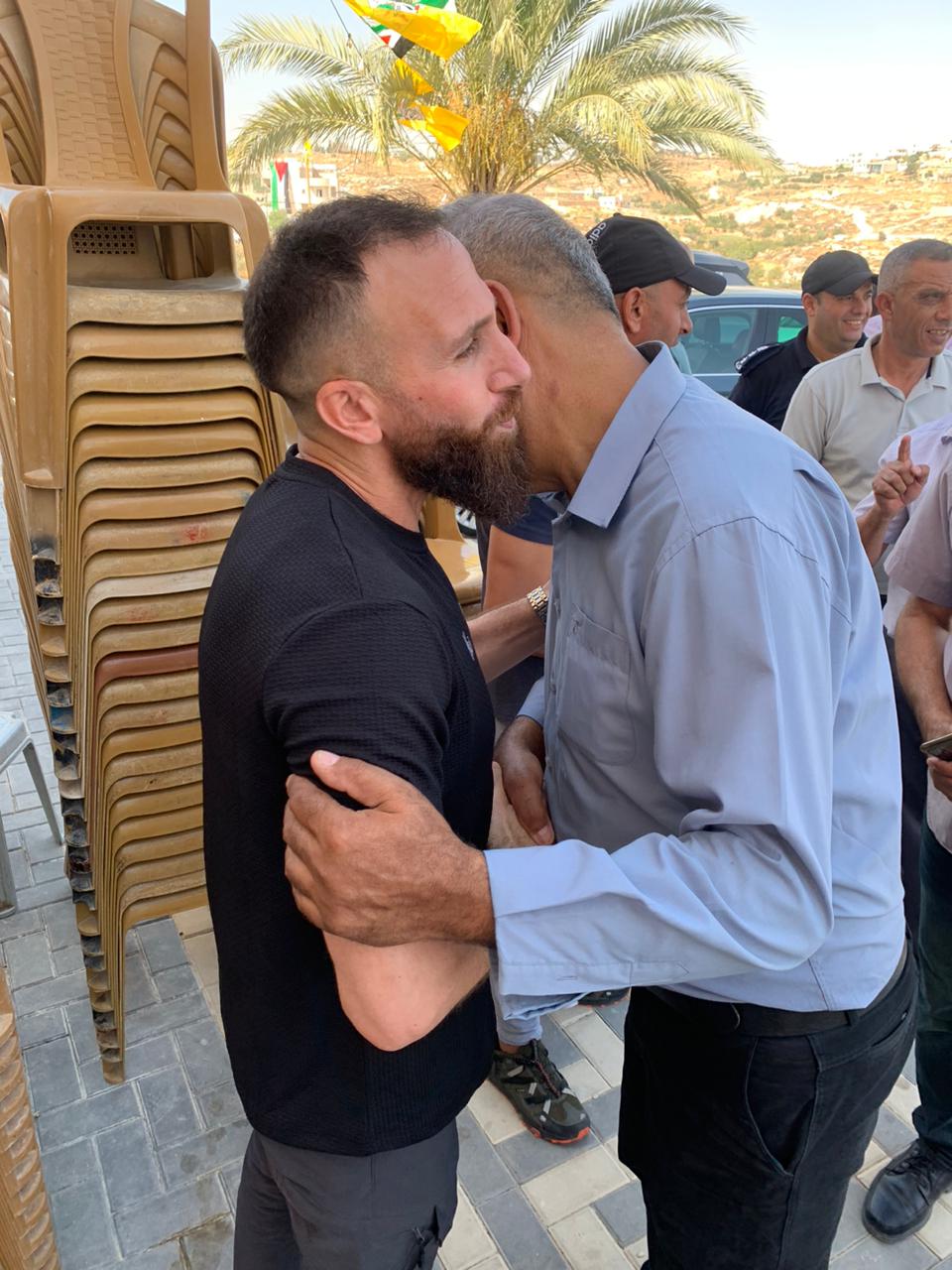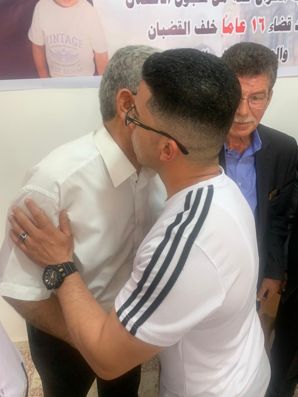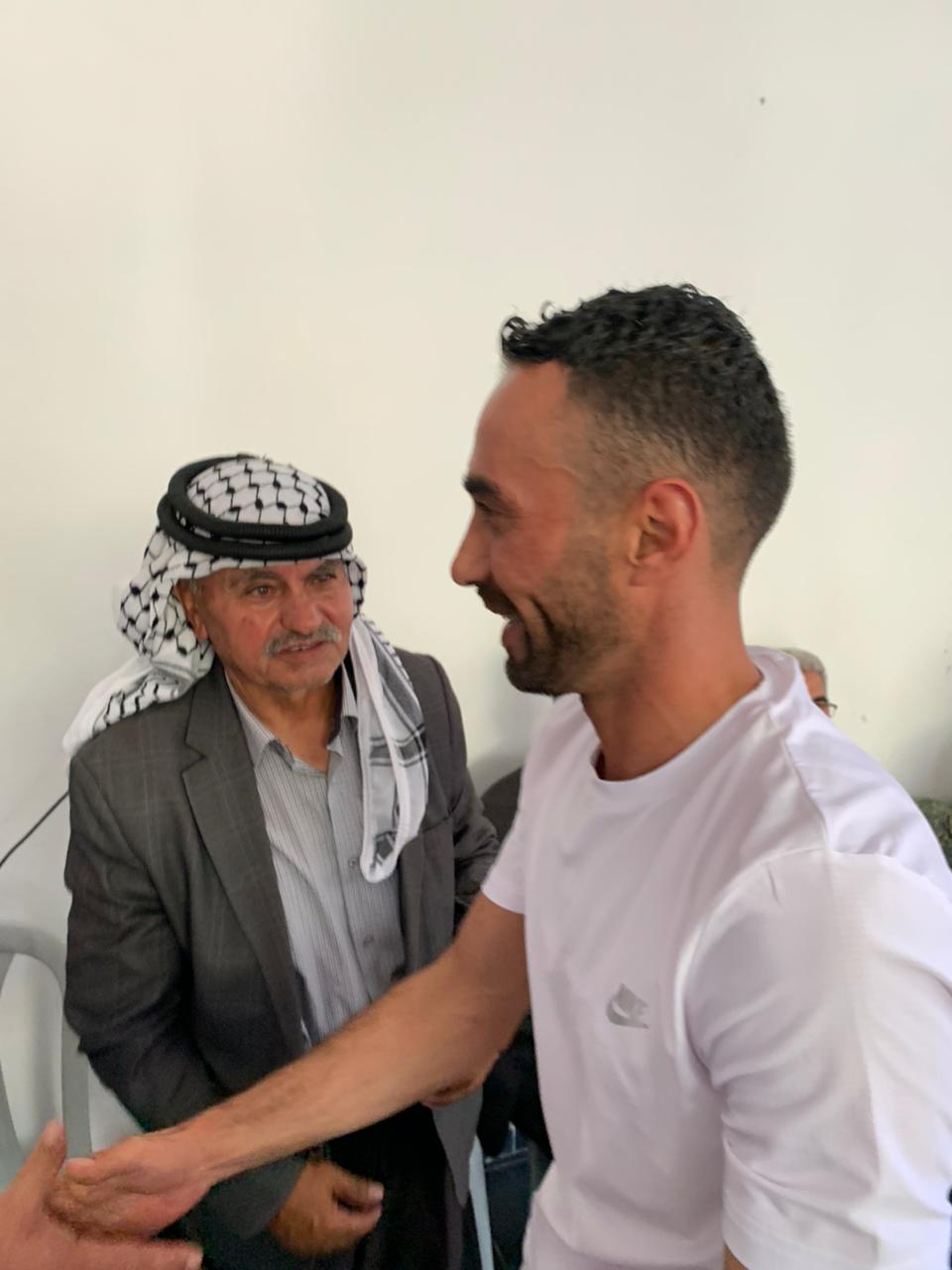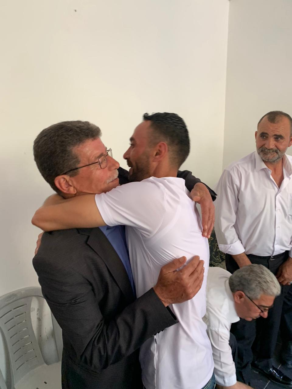 قدورة فارس رئيس نادي الأسير الفلسطيني على رأس وفد من نادي الأسير الفلسطيني وكادر من الاسرى المحررين وبمشاركة وفد من هيئة التوجيه السياسي والوطني يقدمان التهاني للأسرى المحررين ( رامي حسان وعامر أبو رموز وايوب الزعارير ) بمناسبة تحررهم من سجون الاحتلال ...
