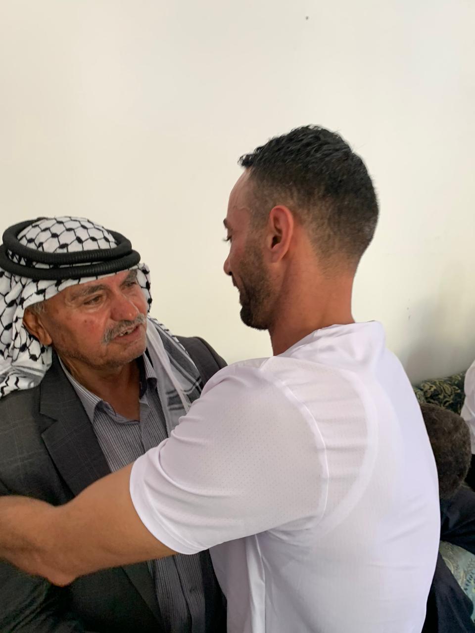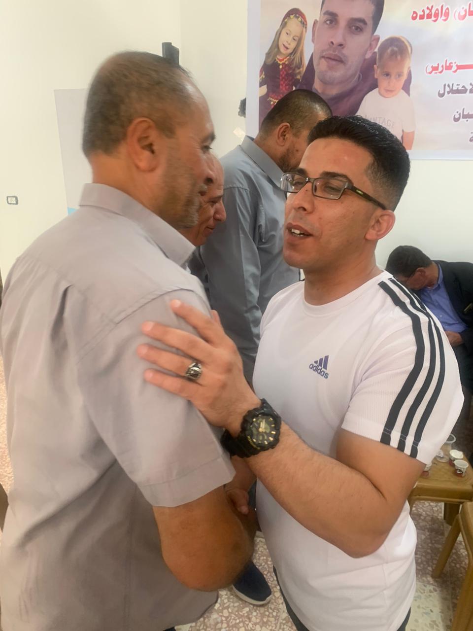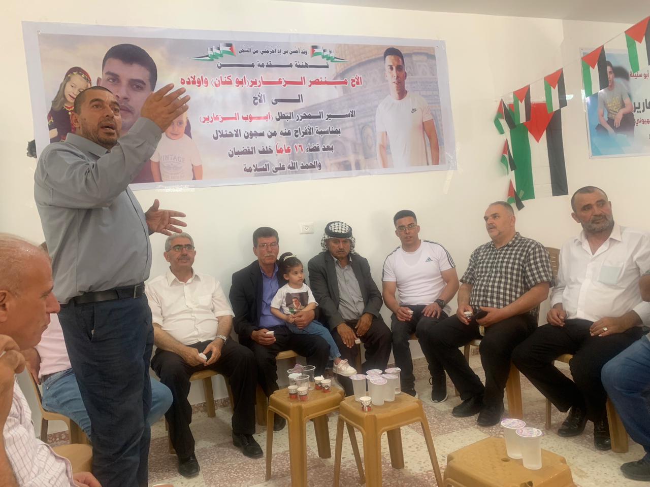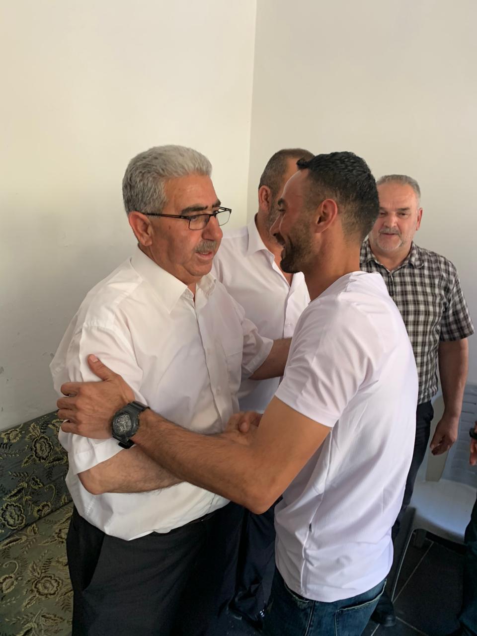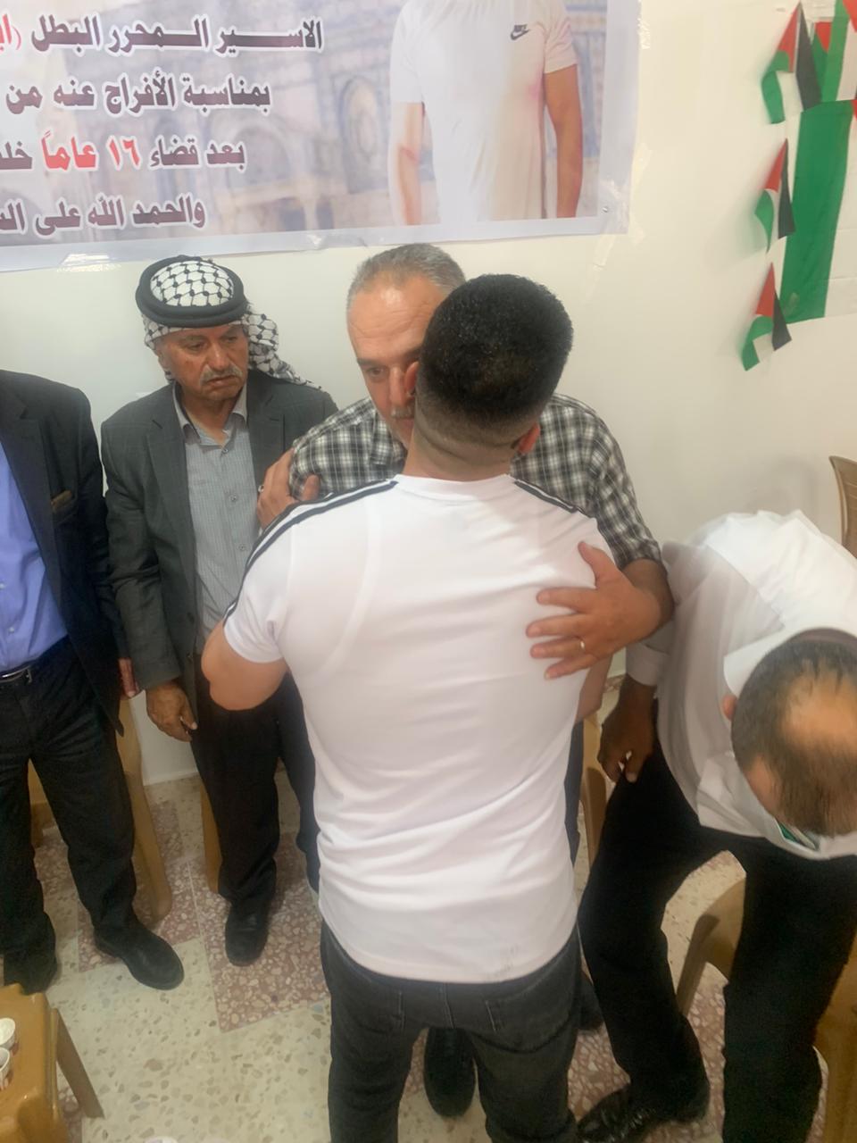 قدورة فارس رئيس نادي الأسير الفلسطيني على رأس وفد من نادي الأسير الفلسطيني وكادر من الاسرى المحررين وبمشاركة وفد من هيئة التوجيه السياسي والوطني يقدمان التهاني للأسرى المحررين ( رامي حسان وعامر أبو رموز وايوب الزعارير ) بمناسبة تحررهم من سجون الاحتلال ...