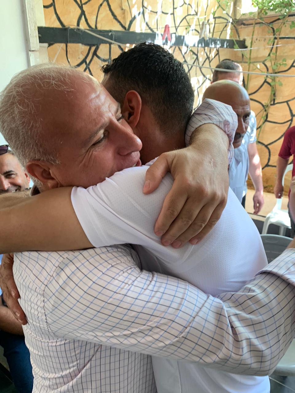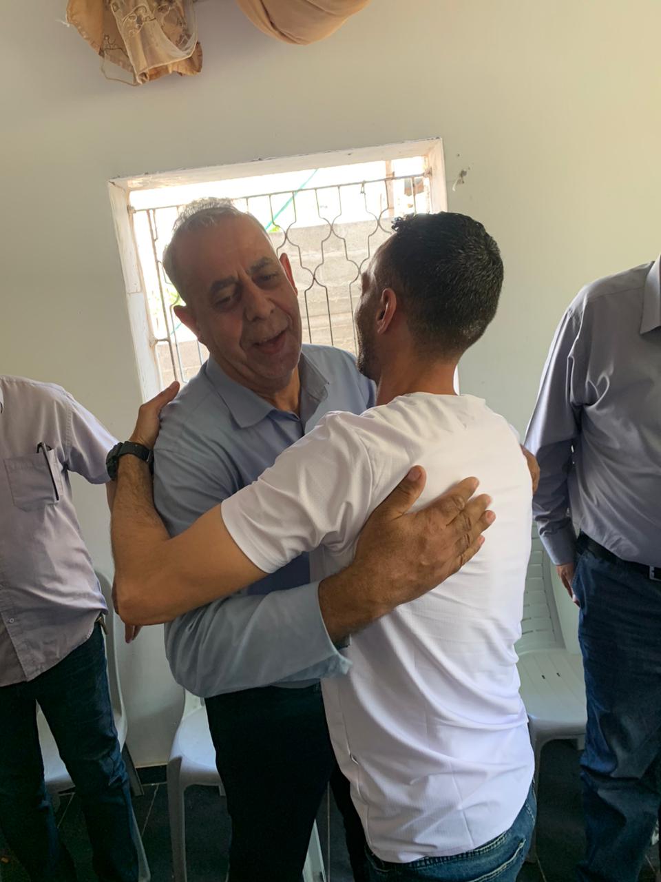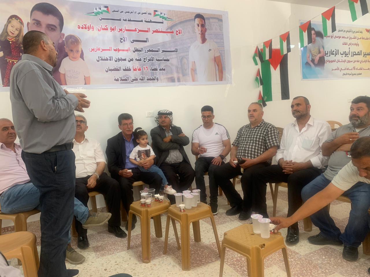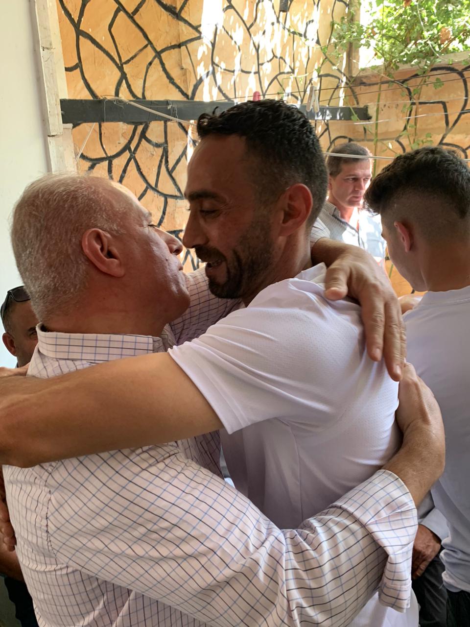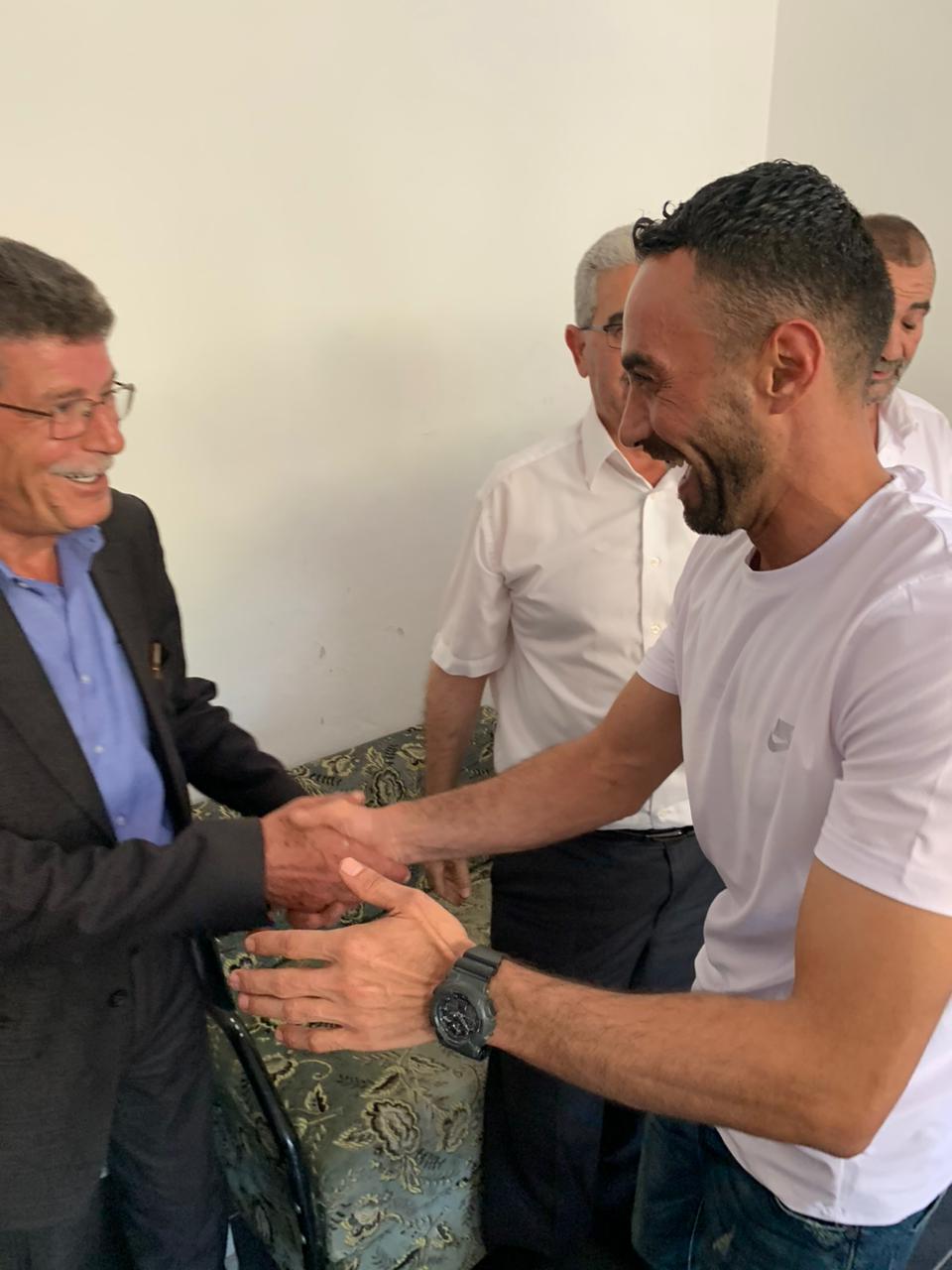 قدورة فارس رئيس نادي الأسير الفلسطيني على رأس وفد من نادي الأسير الفلسطيني وكادر من الاسرى المحررين وبمشاركة وفد من هيئة التوجيه السياسي والوطني يقدمان التهاني للأسرى المحررين ( رامي حسان وعامر أبو رموز وايوب الزعارير ) بمناسبة تحررهم من سجون الاحتلال ...
