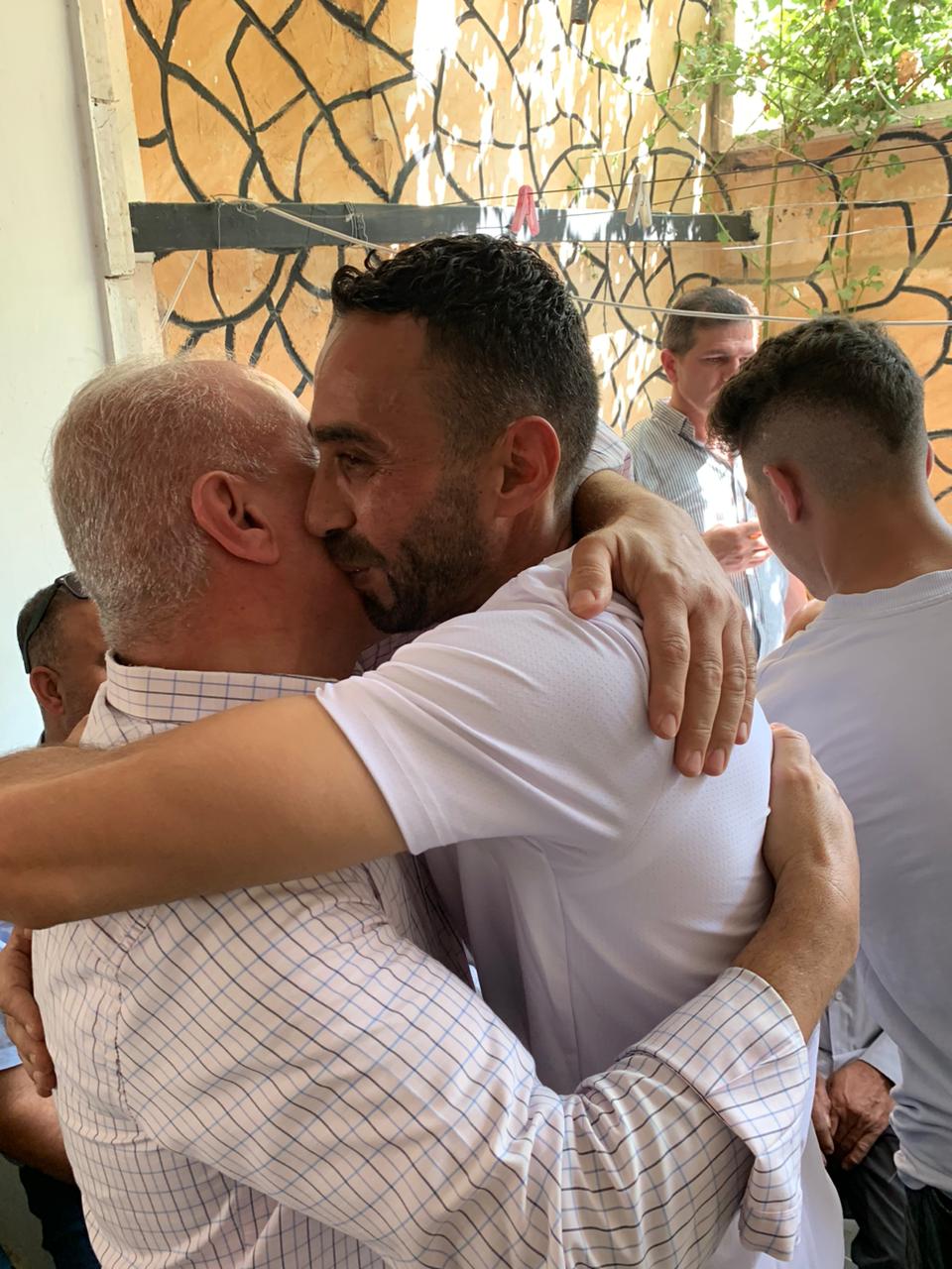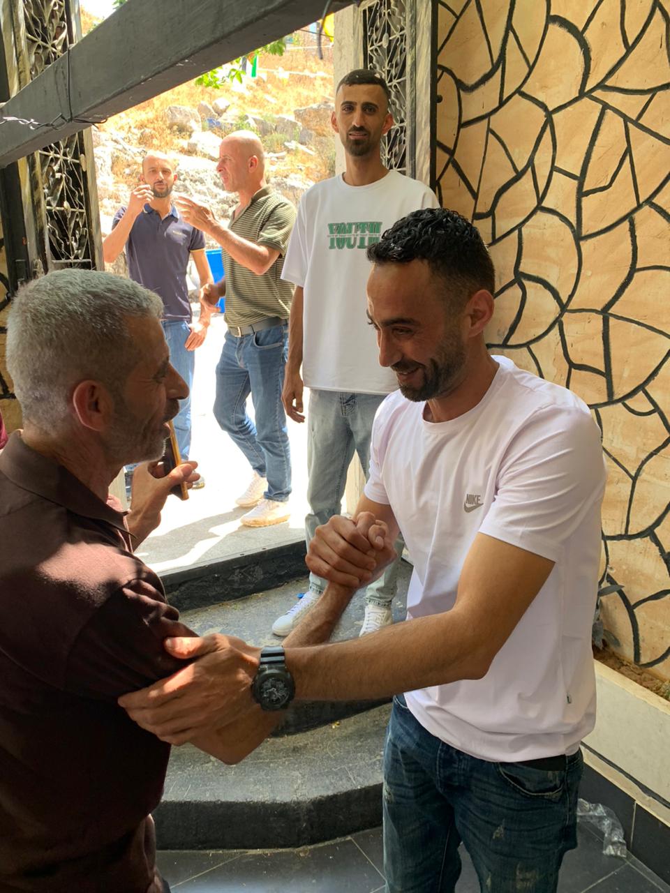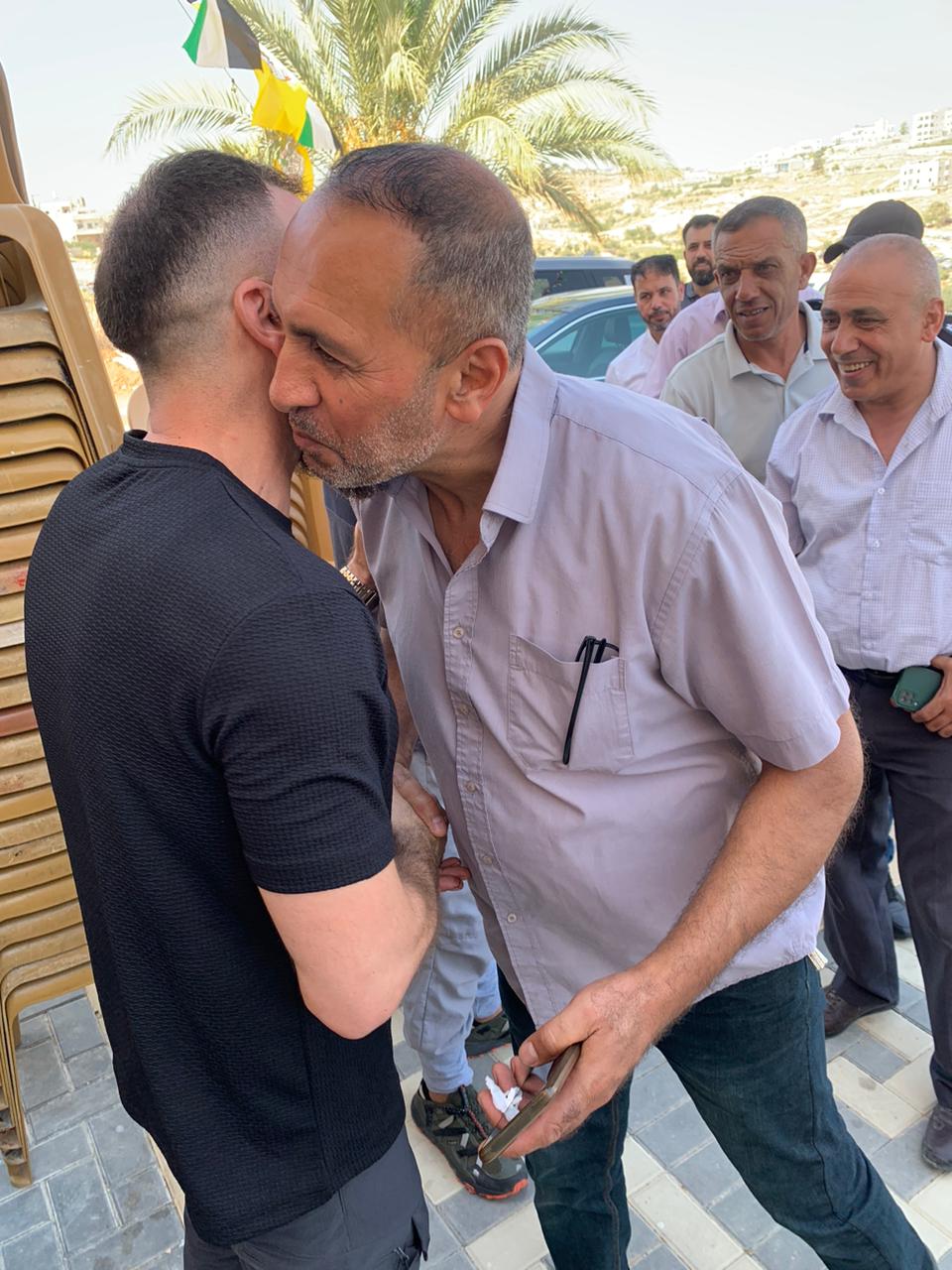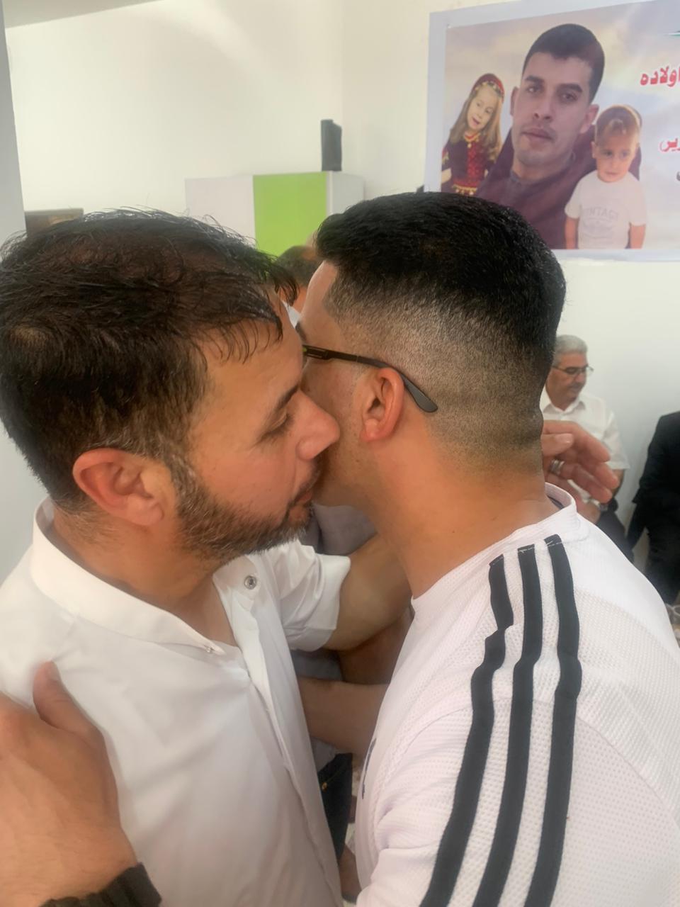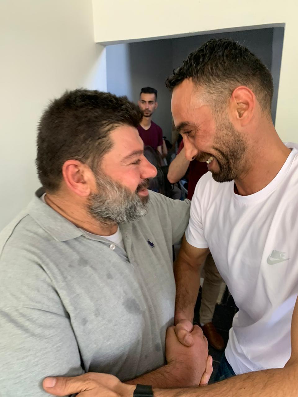 قدورة فارس رئيس نادي الأسير الفلسطيني على رأس وفد من نادي الأسير الفلسطيني وكادر من الاسرى المحررين وبمشاركة وفد من هيئة التوجيه السياسي والوطني يقدمان التهاني للأسرى المحررين ( رامي حسان وعامر أبو رموز وايوب الزعارير ) بمناسبة تحررهم من سجون الاحتلال ...