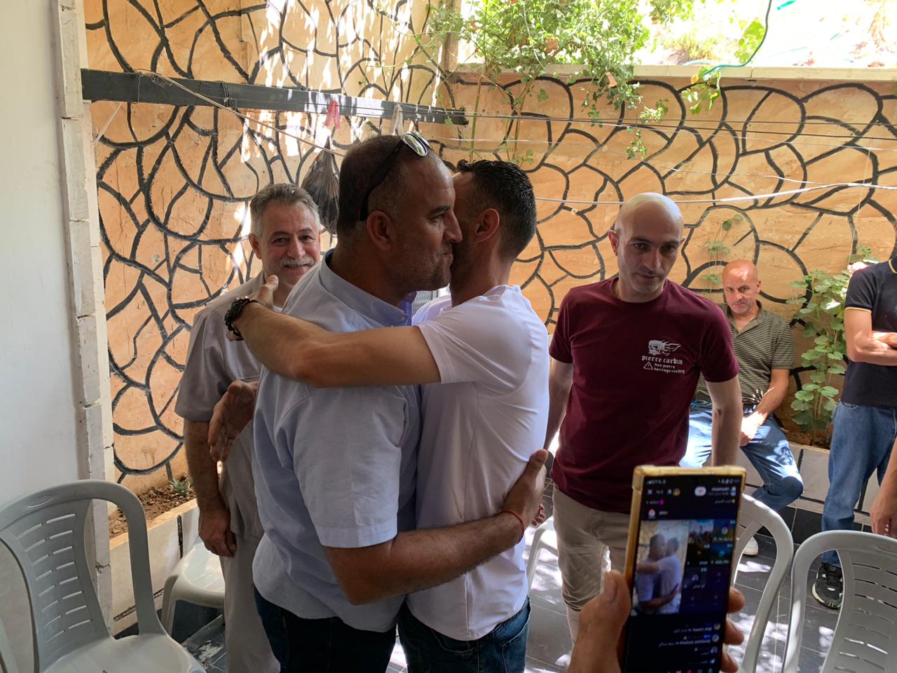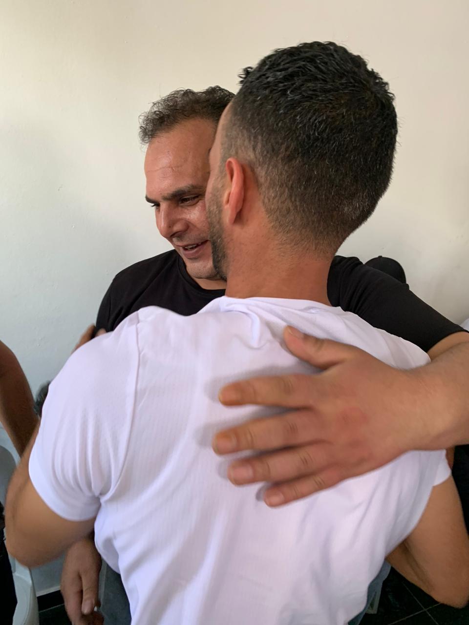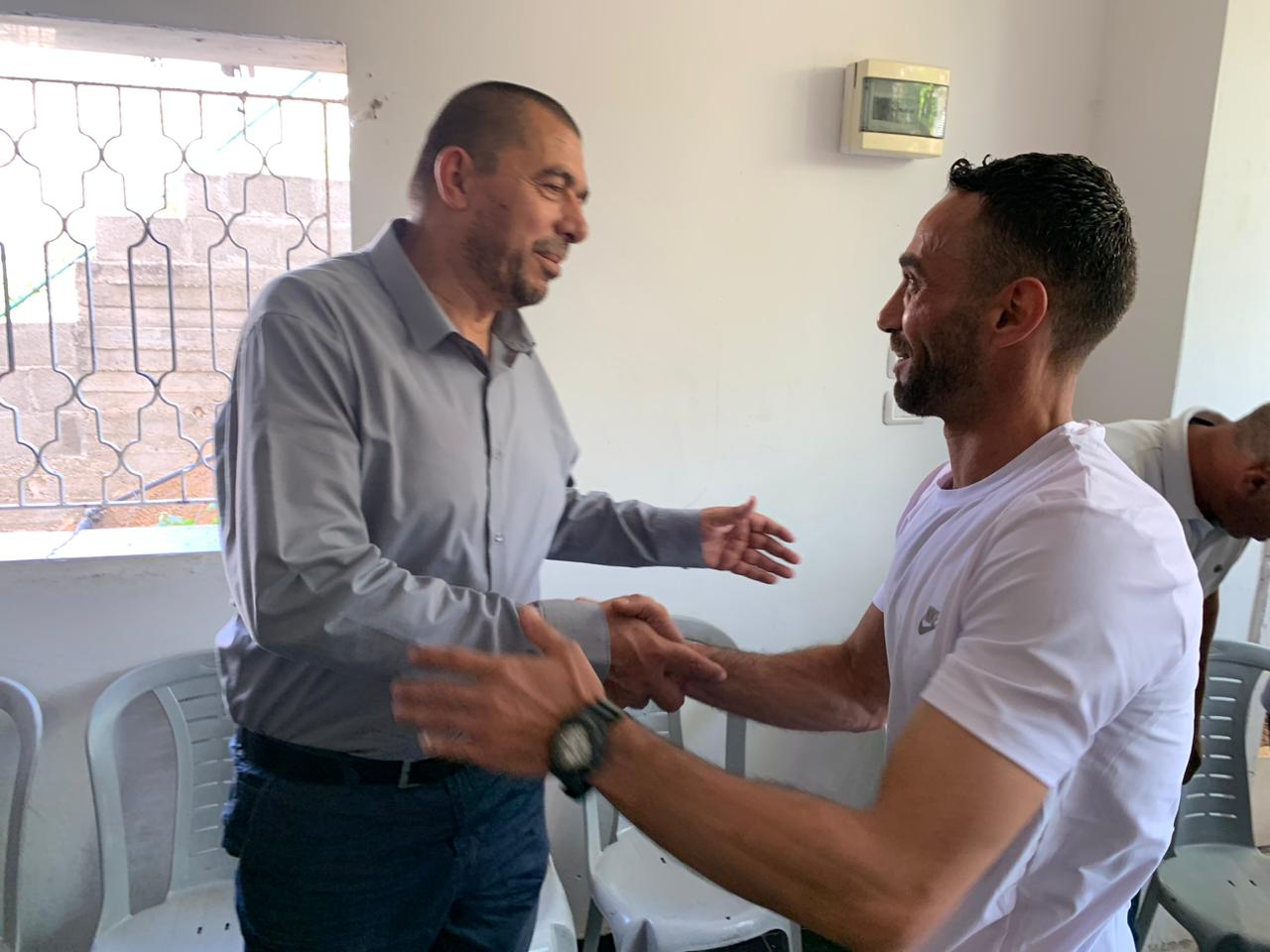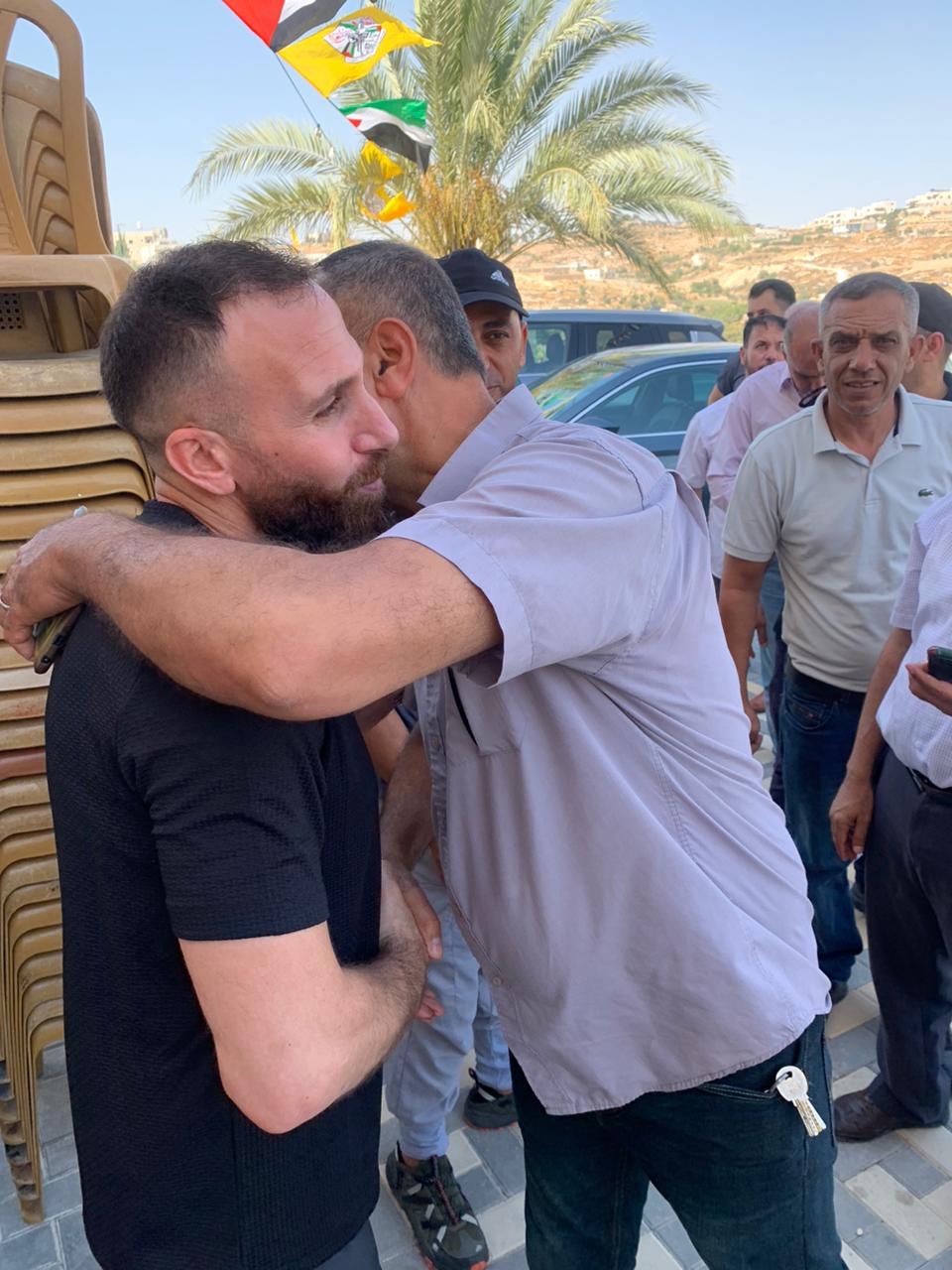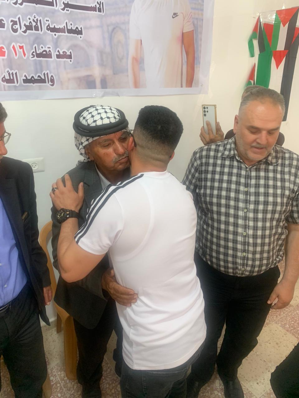 قدورة فارس رئيس نادي الأسير الفلسطيني على رأس وفد من نادي الأسير الفلسطيني وكادر من الاسرى المحررين وبمشاركة وفد من هيئة التوجيه السياسي والوطني يقدمان التهاني للأسرى المحررين ( رامي حسان وعامر أبو رموز وايوب الزعارير ) بمناسبة تحررهم من سجون الاحتلال ...