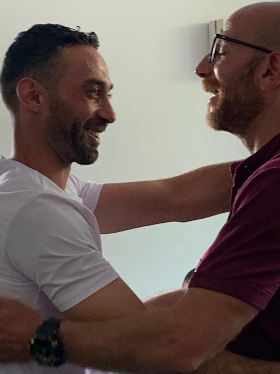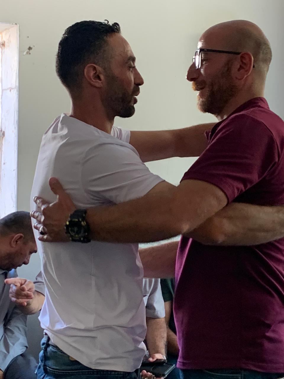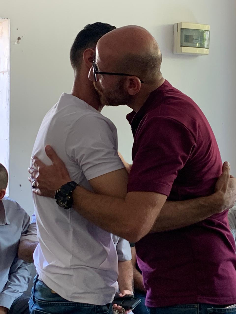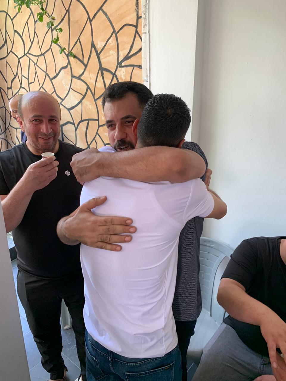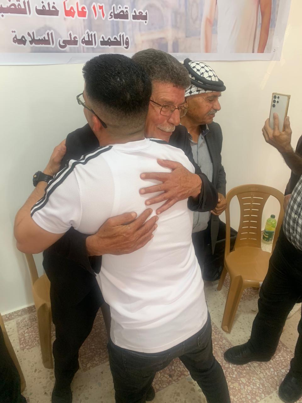 قدورة فارس رئيس نادي الأسير الفلسطيني على رأس وفد من نادي الأسير الفلسطيني وكادر من الاسرى المحررين وبمشاركة وفد من هيئة التوجيه السياسي والوطني يقدمان التهاني للأسرى المحررين ( رامي حسان وعامر أبو رموز وايوب الزعارير ) بمناسبة تحررهم من سجون الاحتلال ...