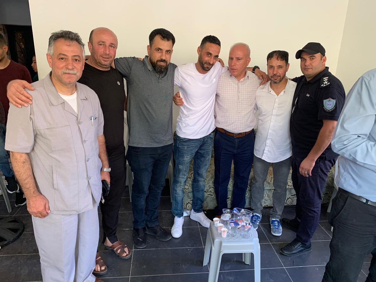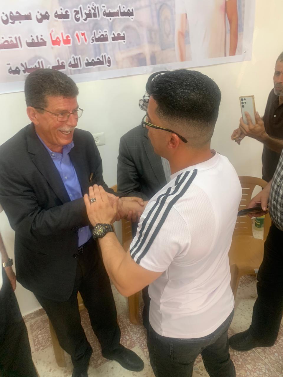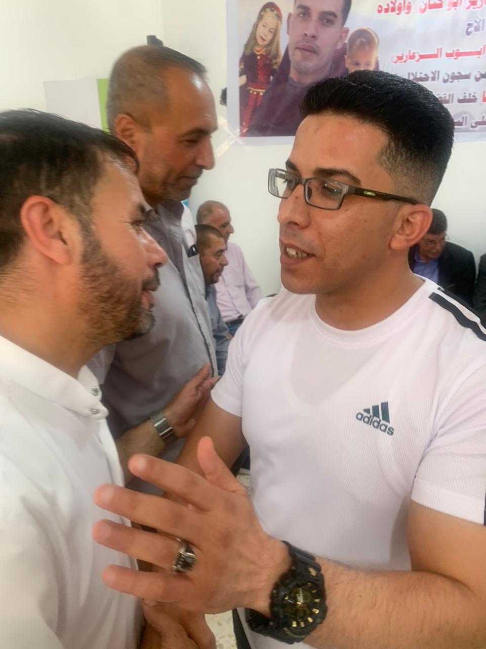 وشارك في تقديم التهاني عبد الله الزغاري مدير عام نادي الأسير وامجد النجار مدير عام العلاقات العامة والاعلام وحسام أبو علان مدير مكتب نادي الأسير وجهاد الشحاتيت رئيس دائرة الاسرى المحررين وكوكبه من الاسرى المحررين وهم ( جواد حوشية ، عمار البدوي ، بهاء القاضي ، عواد السعدة ، عبد الوهاب الأطرش ، إبراهيم عطية ، حمادة القواسمة ، محمد مخامرة ، نجيب الشوامرة ، فراس مريش..