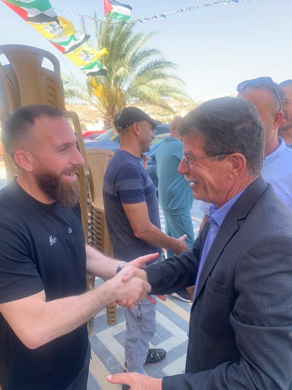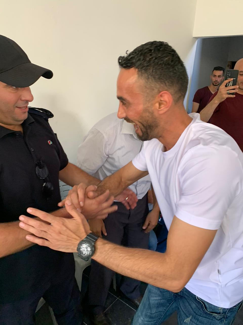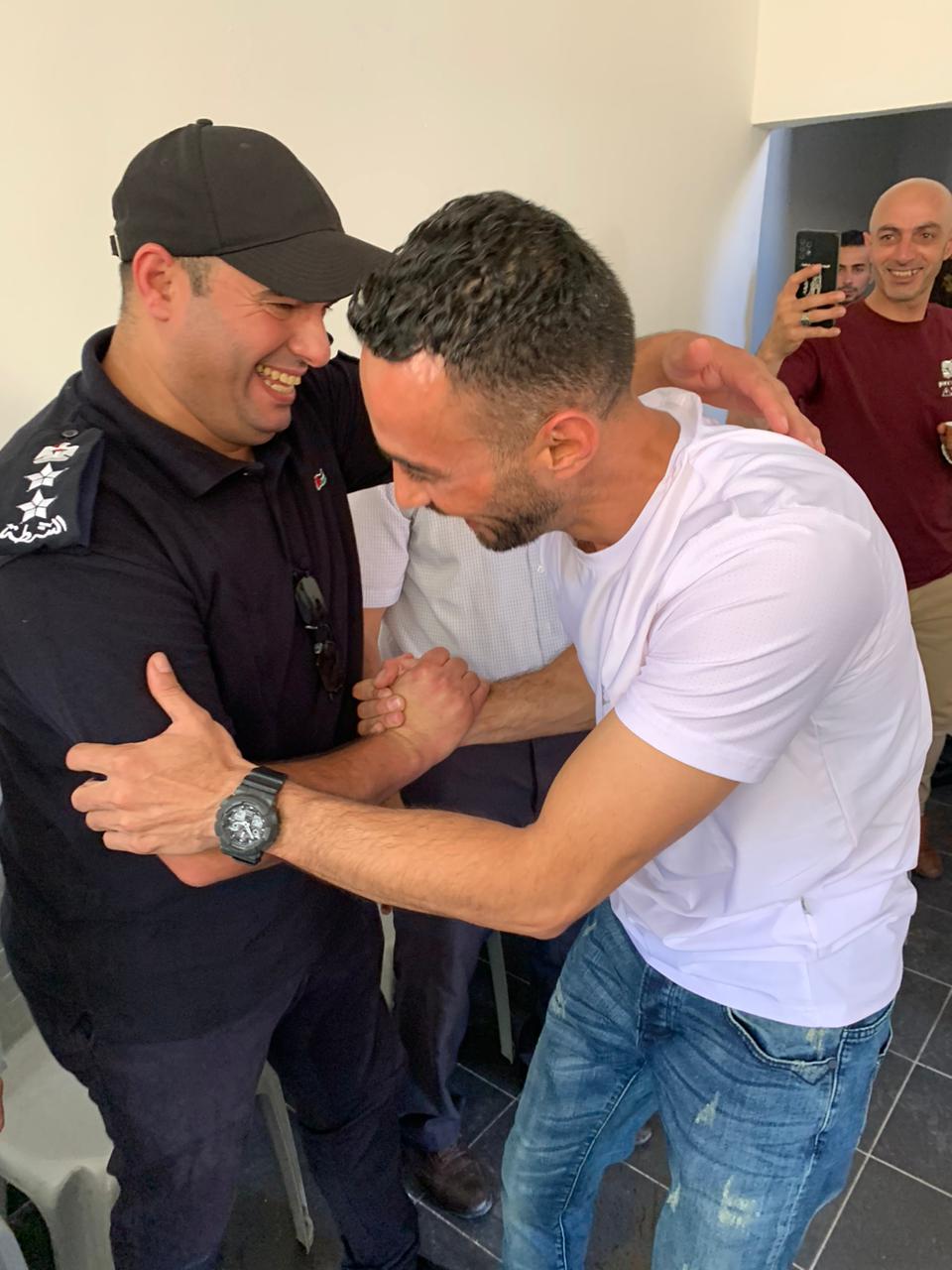 وشارك في تقديم التهاني عبد الله الزغاري مدير عام نادي الأسير وامجد النجار مدير عام العلاقات العامة والاعلام وحسام أبو علان مدير مكتب نادي الأسير وجهاد الشحاتيت رئيس دائرة الاسرى المحررين وكوكبه من الاسرى المحررين وهم ( جواد حوشية ، عمار البدوي ، بهاء القاضي ، عواد السعدة ، عبد الوهاب الأطرش ، إبراهيم عطية ، حمادة القواسمة ، محمد مخامرة ، نجيب الشوامرة ، فراس مريش..