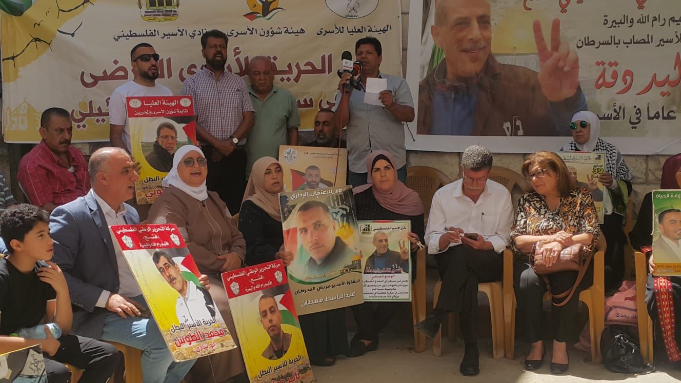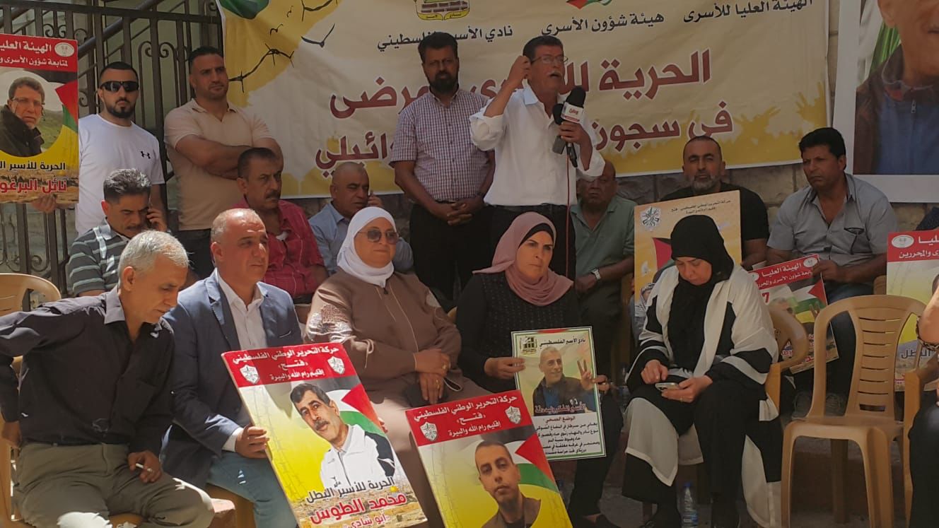 البيرة اليوم: من الوقفة الإسنادية، للأسرى في سجون الاحتلال ومنهم المرضى وعلى رأسهم القائد وليد دقة، والأسير عاصف الرفاعي وكذلك الأسرى المضربين عن الطعام، أمام الصليب الأحمر
