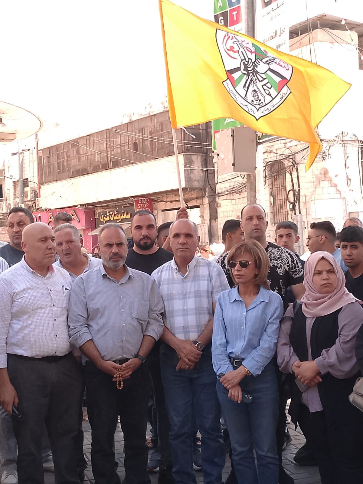 جانب من مشاركة نادي الأسير الفلسطيني في محافظة نابلس بالوقفة الاحتجاجية للتنديد بالمجازر الصهيونية في قطاع غزة