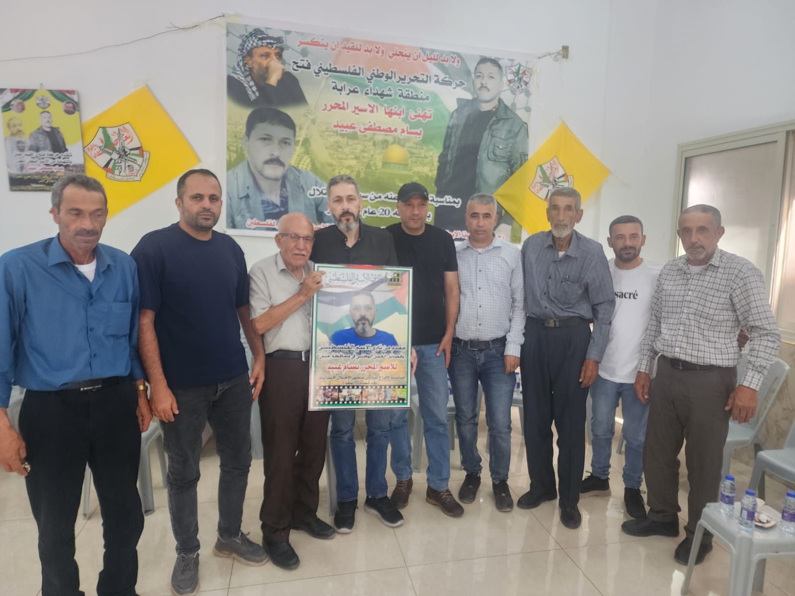 نادي الأسير في جنين في زيارة تهنئة بالإفراج عن الأسير المحرر بسام عبيد من بلدة عرابة، بعد أن أمضى 20 عاماً في سجون الإحتلال الإسرائيلي.
