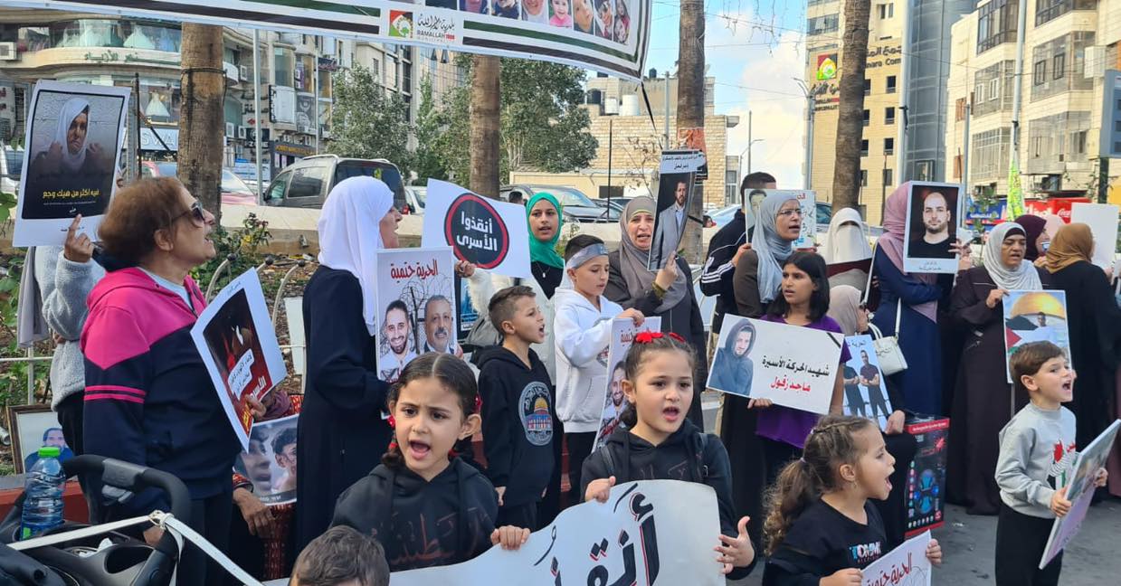 اليوم من أمام دوار المنارة في رام الله: عائلات الأسرى يواصلون تنفيذ وقفات لرفع صوت أبنائهم الأسرى الذين يواجهون عمليات تعذيب وتنكيل مضاعفة بعد السابع من أكتوبر