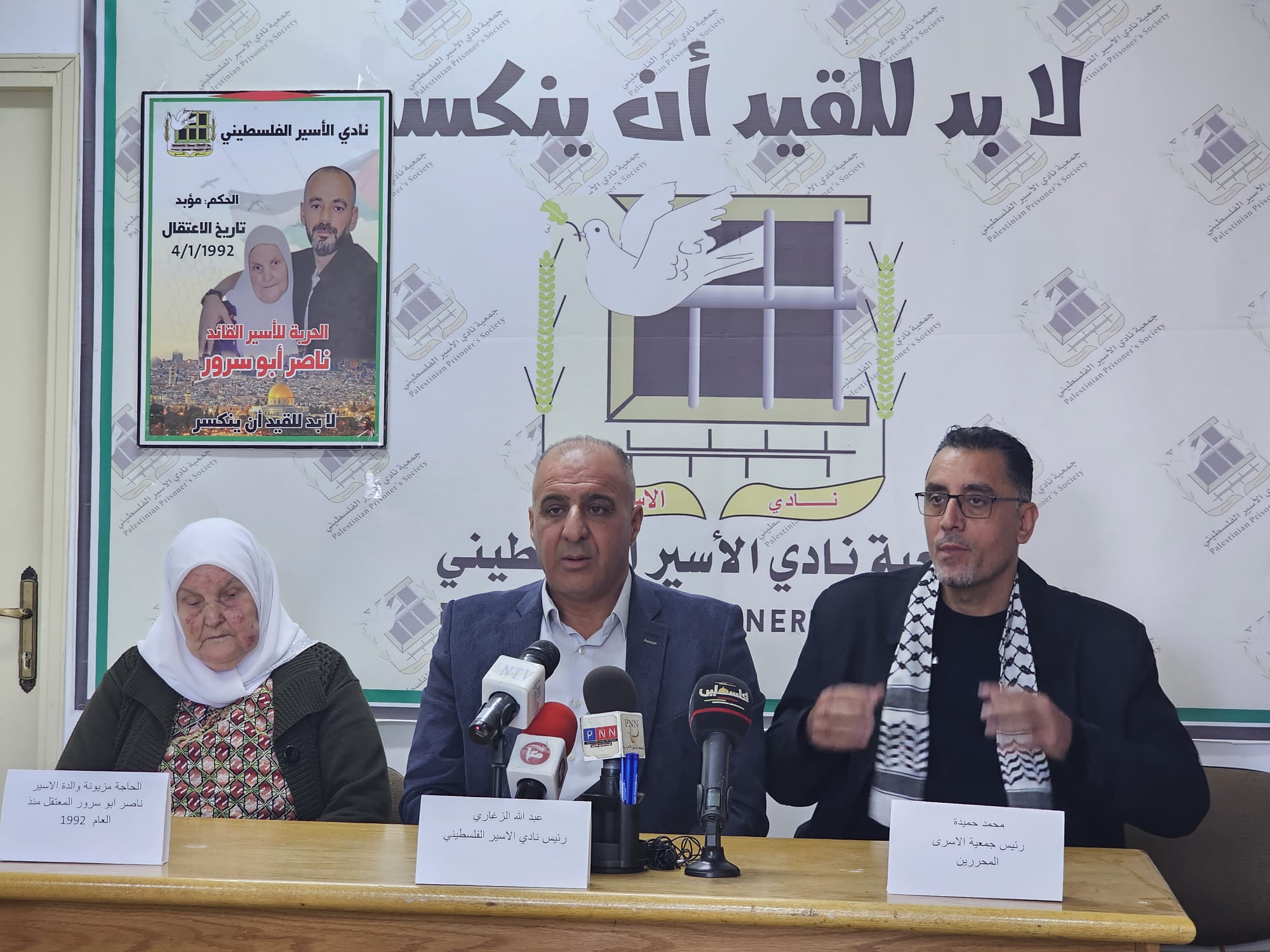 خلال المؤتمر الصحفي الذي عقد صباح اليوم في مقر نادي الاسير الفلسطيني في بيت لحم وبحضور الحاجة مزيونة والدة الاسير ناصر ابو سرور المعتقل منذ العام 1992.